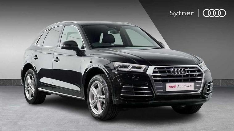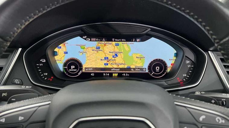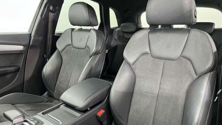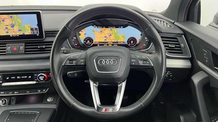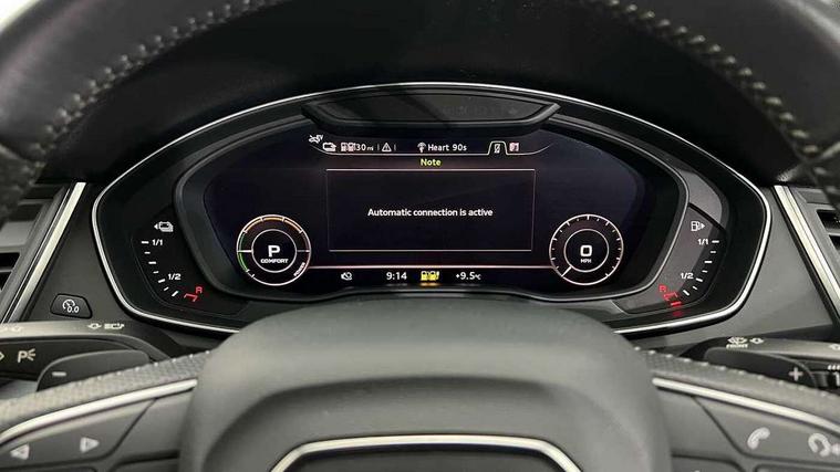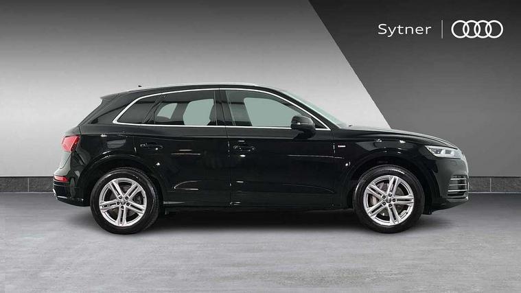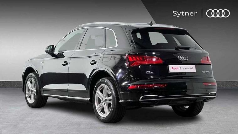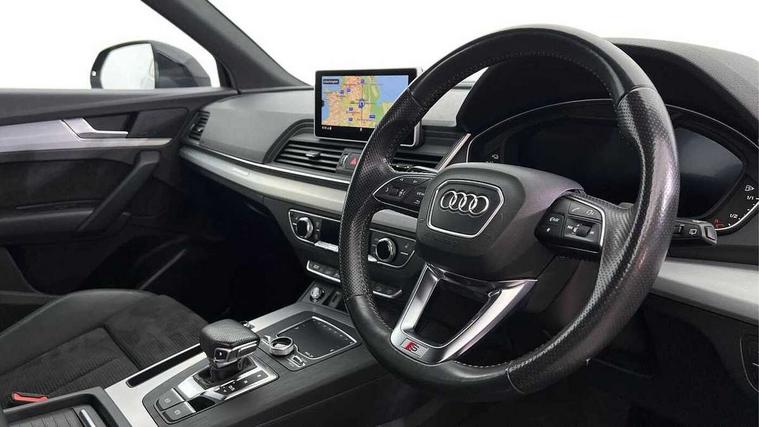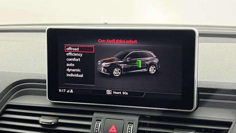 7" Colour driver information system, Audi connect safety and service (e-call), Audi drive select, Audi parking system plus with front and rear sensors, Audi Pre sense collision avoidance, Audi smartphone interface, Automatic start-stop system with coasting functionality and efficiency programme, Cruise control + speed limiter, Electro - mechanical power assisted steering, MMI Navigation, Mobile telephone preparation - bluetooth interface, Power tailgate, Service interval indicator, Voice control system, 3 pin 10 amp domestic charging cable, Dynamic suspension, Mode 3 32amp charging cable - Type 2, Quattro on demand, Type 2 socket for AC charging, 2 x USB charging port with aux input socket, 2x SD card slot, CD player, DAB Digital radio, MMI radio plus with 7" colour MMI screen and MMI controller, Acoustic windscreen, Air inlets in matt titanium black with blades in matt aluminium silver, Aluminium roof rails, Auto dimming rear view mirror, Automatic headlight levelling, Body colour bumpers, Body colour door mirrors, Body colour rear diffuser with matt aluminium silver surrounds, Body colour S Line side skirts, Body colour underbody protection, Chrome exhaust tailpipe, Electric adjustable/heated/folding door mirrors, Front and rear electric windows, High beam assistant, LED headlights with LED rear lights + dynamic rear indicators, Light and rain sensor for auto activation of lights and windscreen wipers, Loading sill protector in stainless steel, Privacy glass with front acoustic glazing, Rear wiper, S front and rear bumpers, S Line badges on the front wings, Twilight grey matt radiator grille with matt aluminium horizontal chrome struts, 3 rear headrests, 40:20:40 split folding rear seat with rear centre armrest, Black cloth headlining, Contrast stitching on seats, steering wheel and gear lever gaiter, Deluxe 3 zone electronic climate control, Front centre armrest, Front sport seats with S embossed logo, Front/rear floor mats, Heated front seats, Height adjustable front head restraints, Height/reach adjustable steering column, Illuminated door sill trims with S logo, ISOFIX child seat mounting and top tether, Luggage compartment carpet, Manual seat adjustment with 4-way electric lumbar support, Perforated leather gearknob, Rear seat bench plus, Removable luggage compartment floor, Sunvisors with vanity mirrors, Trunk roller cover, High gloss pack - Q5, Non Smokers pack, 3 point seatbelts on all seats, 6 airbags - Driver, front passenger, curtain and side airbags, Electromechanical parking brake, Electronic stabilisation control including ABS, ASR and EDL, Front passenger airbag deactivation, Hill descent control, Hill hold assist, Multi collision brake assist, Pop-up bonnet for pedestrian protection, Pre sense city, Seat belt force limiter, Seatbelt monitoring, Tyre pressure warning, Warning triangle and first aid kit, Anti theft alarm, Anti-theft wheel bolts, Keyless Go access/ignition system, Remote central locking, Matt brushed aluminium inlays, Tool kit, Tyre repair kit,