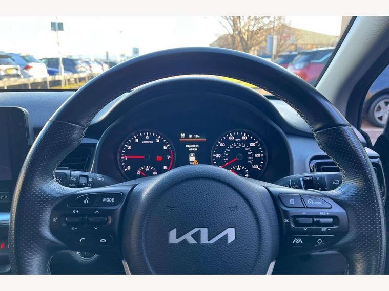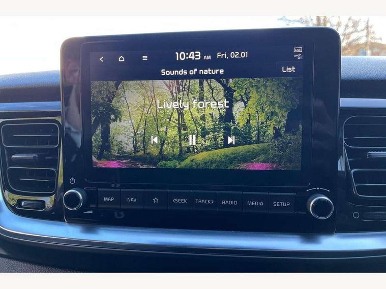 4.2" supervision colour cluster display, 8" touchscreen navigation, Apple car play/Android Auto with voice control, Cruise control + speed limiter, Drive mode selector, Electric power steering, Emergency call service, Emergency stop signalling system, External temperature display, Forward Collision-Avoidance Assist (FCA) - City/Pedestrian/Cyclist, Kia connected services featuring TomTom live, Lane keeping assist system (LKAS), Driver attention warning (DAW) and High beam assist (HBA), Rear parking sensor, Reversing camera system, Trip computer, UVO connect, Intelligent Stop and Go, Audio system with 6 speakers, Bluetooth with music streaming, Front USB port, Rear USB port, Steering wheel mounted controls, 3rd brake light, Aero blade type windshield wipers, All round electric windows with drivers auto up/down function, Auto dimming rear view mirror, Auto headlights, Automatic defog system, Automatic headlights control, Bi-function projection headlights with static bending, Black side sill, door garnish and wheel arch trims, Black/body colour bumpers, Body coloured exterior door handles, Chrome side window trim, Electrically adjustable/heated/folding door mirrors with LED indicators, Front and rear silver skid plates, Front fog lights, Halogen headlights, Headlight levelling device, Heated rear window, High gloss black and satin radiator grille, LED daytime running lights, LED position light, LED rear combination lights, Privacy glass - Rear windows and tailgate, Rain sensing front wipers, Rear fog lights, Rear side wing doors, Rear wash/wipe, Roof coloured door mirrors with matt black lower housing, Roof coloured rear spoiler with high mounted braking light, Roof rails, Shark fin antenna, Speed variable front wipers, Tinted glass, Welcome and follow-me home light functionality, Windscreen Washer Level Warning, 12V power point front, 3 seat bench in 2nd row, 60/40 split folding rear seat, Air filter, All-round height adjustable headrests, Automatic air conditioning, Centre armrest storage box, Centre console with cupholders, Cloth/faux leather upholstery with grey accents, D-Cut perforated leather trimmed steering wheel, Dash illumination dimmer switch, Driver's seat height adjuster, Dual Height Luggage Area Floor, Front and centre cabin lights, Front and rear door map pockets with bottle holder, Gear shift indicator, Glovebox illumination, ISOFIX Child seat top tethers and anchor fixings outer rear seats, Leather trimmed gearshift, Luggage area light, Luggage area parcel shelf, Luggage net hooks, Overhead console lamp, Overhead console with sunglasses cases, Passenger front seatback pockets, Satin chrome interior door handles, Single front passenger seat, Sunvisors with vanity mirror illumination (Driver and front passenger), Tilt/telescopic adjustable steering wheel, ABS with Electronic Brakeforce Distribution (EBD) and Brake Assist System (BAS), All round 3-point seatbelts, Electronic stability control (ESC) and vehicle stability management (VSM), Front passenger airbag cut-off switch, Front seatbelt pretensioners + load limiters, Height adjustable front seatbelts, Hill start assist control (HAC), Impact sensing auto door unlocking, Manual child lock in rear doors, Rear seat Occupancy alert, Seatbelt reminder warning, Twin curtain airbags, Twin front airbags, Twin front side airbags, Tyre pressure monitoring system, Alarm system, Door deadlocks, Engine immobiliser, Locking wheel nuts, Smart key with engine start/stop button, Speed sensitive auto door locking, Visible vehicle identification number, High gloss black centre fascia, 17" alloy wheels, Tyre mobility kit,