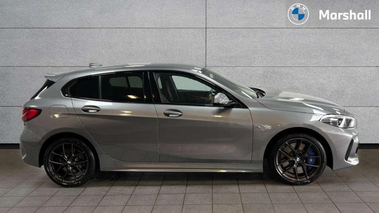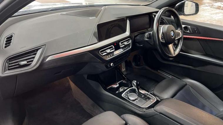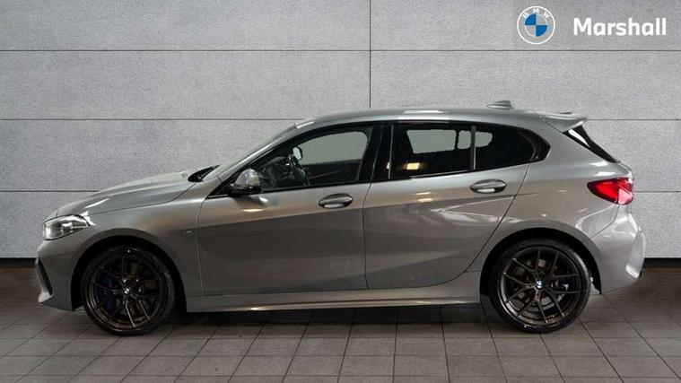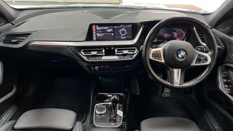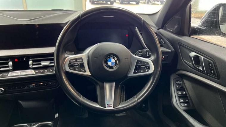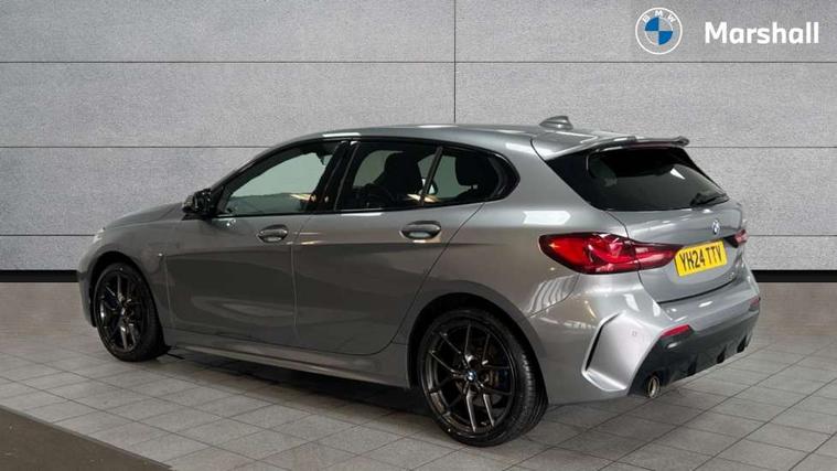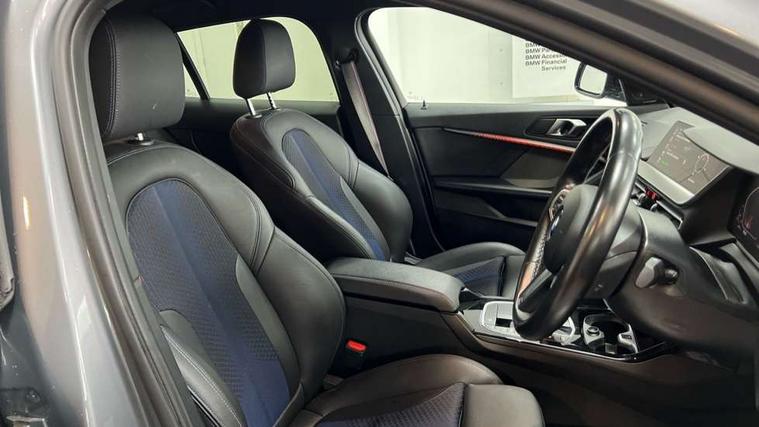 Active guard plus, Attentiveness assist, BMW ConnectedDrive online services, BMW Teleservices, Check Control warning system for monitoring of lights and door/luggage compartment open warning, Cruise control with speed limiter, Eco pro mode, Front axle single joint with specific axle kinematics to minimise drive influences on steering + provide increased rigidity agile driving behaviour, Integrated owners handbook, Lane departure warning system, Oil sensor for level and grade, On board computer, Optimum shift indicator, Personal Profile, Pull away assistant, Rigidly mounted rear subframe - Multi link construction with separate spring / damper configuration and excellent driving characteristics, Speed limit Info including no-overtaking indicator, Aluminium lightweight construction, Anti roll bar front and rear, Balancer shaft, Double VANOS twin scroll turbocharging system, Drive Performance Control, Electronic differential lock, High precision injection, M sport suspension, Petrol Particulate Filter, Twin tube gas filled shock absorbers with degressive characteristic curve, VALVETRONIC engine management, DAB Digital radio, Auto dimming rear view mirror, Automatic headlight beam throw control, Automatic windscreen wipers and automatic headlight, Body colour door handles, Body colour mirror caps, Body colour roof trims, Chrome 'M' logo side designation, Chrome exhaust twin tailpipes round 90mm in left, Chrome kidney grille frame with Satin Aluminium struts, Direction indicator side lights in exterior mirrors, Electrically adjustable exterior mirror with mirror adjustment switch on drivers armrest and aspheric on driver side, convex on passenger side, Fading support, Folding side mirrors with auto dimming/folding wing mirrors with auto dimming, Follow me home headlights, Front and rear bumper system with replaceable deformation elements, Front and rear electric windows with open and close fingertip control, anti trap facility and comfort closing, Front door sill finishers in black plastic with M designation in metallic look, Green tinted heat protection glazing, High gloss shadowline window frame, Recess cover mirror frames and B/C pillar embelisher trim, High level third brake light, Integrated front windscreen with washer jets, LED daytime running lights, LED eyebrow turn indicators, LED front fog lights, Lightweight engineering, Matt black air guide grilles, Matt black wheel arch trim, Model designation on electric bootlid, Nearside reverse light in rear light cluster, Preparation for high beam assistant, Rear fog lights, Rear side wing doors, Rear window wiper, Shark fin antenna, Trailer stabilisation logic, Visible VIN plate, Welcome lighting, 12V power socket in front centre console with blanking plug, 3 rear seat head restraints, 3 seat bench in 2nd row, 3 spoke sports leather steering wheel with black leather and stitching, pearl chrome decorative finish, specific M Badge, Anthracite headlining, Black boot net with lashing eyes, Cargo function on 2nd seat row, Child seat ISOFIX attachment for two outer rear seats and front passenger seat with anchorage points, Conditioned based service, Driver and front passenger backrest net on rear, Driver and front passenger seat heating, Driver side folding compartment in instrument panel, Folding rear clothes hook, Four grab handles integrated in roof lining, Front and rear door pockets with bottle holders, Front and rear side armrest integrated into door trim, Front armrest, Front sports seats, Glove compartment, Height adjustable front head restraints, Luggage compartment for bag hooks on left and right, foldable luggage compartment liner and four lashing eyelets, Manual adjust steering wheel, Multi-function controls for steering wheel, Single front passenger seat, Storage compartment in centre console, Storage compartment in luggage compartment, Stowage of the parcel shelf in luggage compartment trim, Sun visors with vanity mirrors and insert tab, Two front centre console cupholders, Two zone automatic air conditioning, Type C two USB ports in rear centre console, Velour floor mats, Additional interior lighting pack - 1 Series, BMW live cockpit professional pack- 1 Series, Connected pack professional - 1 Series, Interior lights pack - 1 Series, M Sport exterior styling aerodynamics pack - 1 Series, 2 tone horn, 3 point seatbelts on all seats, front pyrotechnic belt tensioners, stopper and belt force limiters, rear coded belt buckles, Airbags - Front driver/passenger, front and rear curtain head protection, front side, manual deactivation of front passenger airbag, Anti lock braking system (ABS) with brake assist, BMW emergency call, Brake drying, Braking readiness, Child proof locking system in rear door, City braking function, Comfort modes, Cornering brake control, Crash sensor activating of airbags, Unlocking doors, hazard warning lights, fuel cut off, interior lighting+activation of safety battery terminal clamp, Driver and front passenger seat belt security check, Dynamic stability control + (DSC+), Dynamic Traction Control - DTC, Electrically operated hand brake including automatic hold function, Front and rear disc brakes, Seatbelt warning, Side impact protection, Tyre pressure monitoring system, Warning triangle and first aid kit, Central locking switch for all doors, fuel filler cap and luggage compartment, Deadlocking function system to all doors, Drive away locking system on all doors and luggage compartment with de-activated in iDrive settings, Locking wheel bolts, Remote control with integrated key with High-gloss Black inlay and M designation and 1 button for open/ close lock, window, open luggage compartment, Start/stop button illuminated in centre console with keyless engine start and auto start stop deactivation button, Thatcham Cat.1 alarm and immobiliser, Wheel slip limitation close to the actuator (ARB), Contrast stitching on instrument panel, 18" Burnished M double spoke bi-colour alloy wheels finished in orbit grey - styl