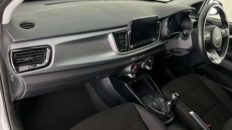 8" touch screen, Apple car play/Android Auto, Cruise control + speed limiter, Digital clock, Electric power steering, Emergency stop signalling system, Gear selection indicator, Manual speed limit assist (MLSA), Outside temperature display, Rear parking sensor, Reversing camera system with dynamic guidelines (Integrated into centre fascia screen), Tachometer, Trip computer, Voice control system, Windscreen washer level indicator, Intelligent Stop and Go, 6 speakers, Bluetooth connectivity including audio streaming, DAB Digital radio, Front USB port for media connection, Rear USB port, Steering wheel mounted audio controls, Aeroblade-type front wipers, Automatic lighting control, Bi-function projection headlights, Black grille with chrome surround, Body colour bumpers, Body colour door handles, Body coloured door mirrors, Cornering light, Electric adjustable/heated/folding door mirrors, Front electric windows with driver's auto up/down function, Headlamp levelling, Heated rear window, LED daytime running lights, LED indicators in door mirrors, Projection front fog lights, Projection headlights, Rear electric windows, Rear fog lamp, Rear wash/wipe, Speed variable front wipers, Tinted glass, Welcome home function, 3 passenger assist grips, 60/40 split/folding 2nd row of seats, Air conditioning, All round height adjustable headrests, Centre Console with Storage Box and Sliding Armrest, Dash illumination dimmer switch, Driver's seat height adjuster, Driver/passenger sunvisors and illuminated vanity mirrors, Front and rear door map pockets with bottle holder, Front passenger seatback pockets, Front USB charger port and 12V socket, ISOFIX top tethers and lower anchor points, Leather trimmed gearshift, Leather trimmed steering wheel, Load area light, Luggage area parcel shelf, Luggage hooks, Overhead console with sunglasses holder, Premium cloth upholstery, Silver interior door handles, Tilt/telescopic adjustable steering wheel, Advanced driving assistance pack - Rio, 3-point front seatbelts, 3x3 point rear seatbelts, ABS with Electronic Brakeforce Distribution (EBD) and Brake Assist System (BAS), Automatic unlocking of doors in case of impact, Cornering brake control (CBC) and Straight line stability (SLS), Electronic stability control (ESC) and vehicle stability management (VSM), Front seatbelt pretensioners + load limiters, Height adjustable front seatbelt anchors, Hill start assist control (HAC), Passenger airbag deactivate switch, Rear child proof door locks, Seatbelt warning, Traction control, Twin curtain airbags, Twin front airbags, Twin front side airbags, Tyre pressure monitoring system, Anti theft alarm, Deadlocking system, Engine immobiliser, Locking wheel nuts, Remote central door and tailgate locking with fold-away key, Speed sensitive auto door locking, Visible vehicle identification number, Silver fascia trim, 15" Alloy wheels, Tyre mobility system,