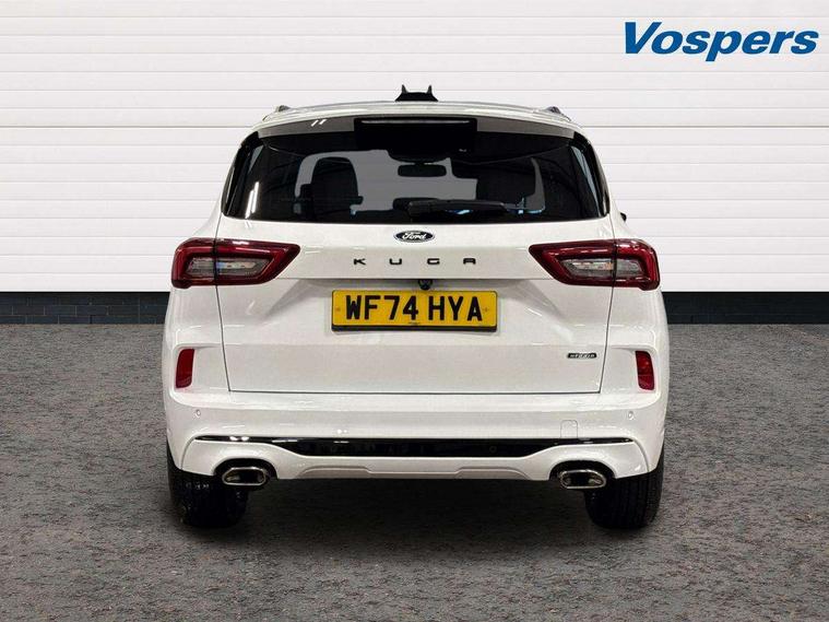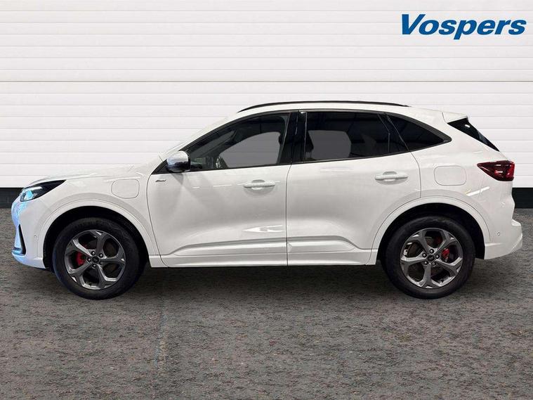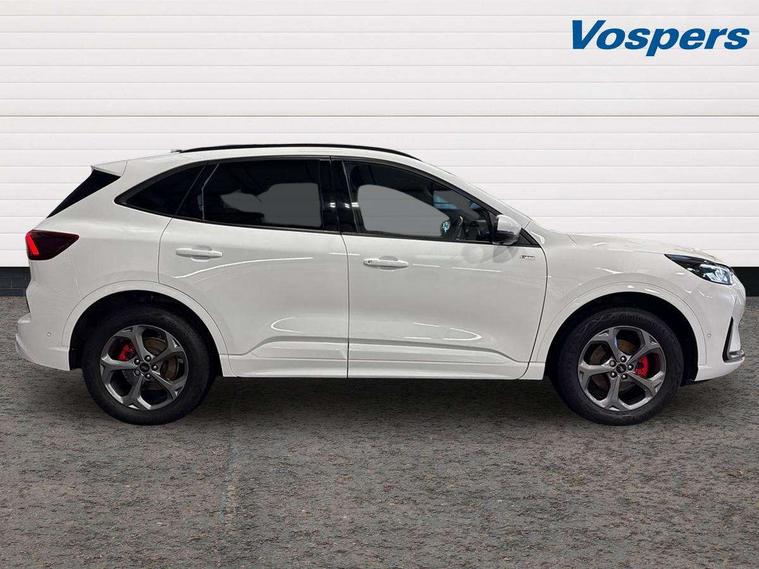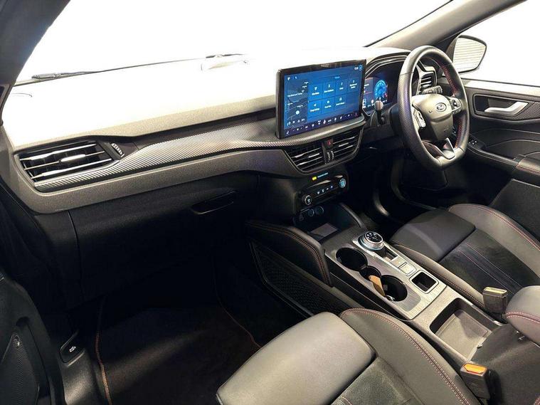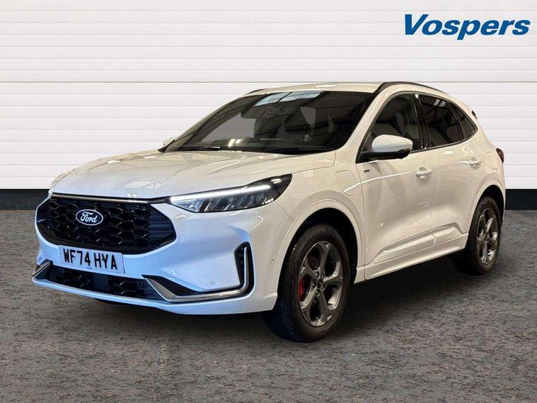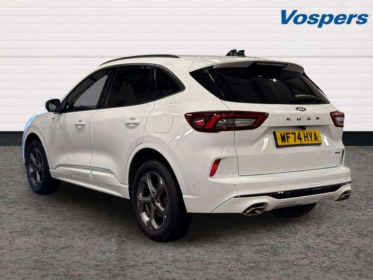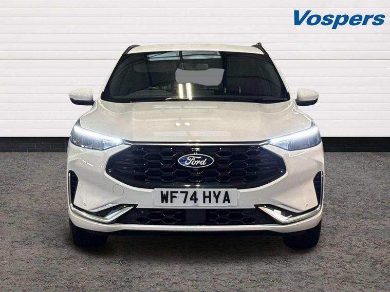 12.3" digital colour instrument cluster, 360 degree view camera, e-Call (emergency call), Ford easy fuel, Ford SYNC 4 Navigation with 13" touchscreen, DAB radio, emergency assistance, Andriod Auto/Apple CarPlay, 5G modem & Ford Pass connect, Front and rear parking sensors, Hands free power tailgate, Lane centering assist, Lane keeping aid with lane departure warning, Power assist steering, Selectable drive modes, Service interval indicator, 3-Pin Home charge cable (230V/16A Domestic socket), Sports suspension, Twist beam rear suspension, B&O premium audio system with 10 speakers, subwoofer and 2 USB ports, Auto headlamps with high and low beam, Black roof rails, Body colour bumpers, Front LED fog lamps, Large rear spoiler, LED daytime running lights, LED rear lights, Pop out door edge protectors, Power front/rear windows with global close, Power heated folding door mirrors with puddle lights, memory function and camera, Quickclear heated windscreen, Rain sensing wipers, Rear privacy glass, Rear side wing doors, Rear wiper, ST-Line body styling kit, Third brake light, 12 way ergonomic power adjust driver's seat with memory (AGR certified), 12 way ergonomic power adjust passenger seat (AGR certified), 2nd row sliding seats, Electronic automatic temperature control (EATC), Front and rear head restraints, Partial premium touch sensico upholstery, Rear centre head restraint, Single front passenger seat, Sports seats, Driver assistance pack with intelligent adaptive cruise control - Kuga FHEV/PHEV, 3x3 point rear seatbelts, Airbags - front driver/passenger, front and rear curtain, Drivers knee airbag, Dynamic brake support, Electronic stability control (ESC) and ABS, Evasive steering assist, Ford MyKey Gen 2 safety system, Manual child proof rear door locks, Pre collision assist with autonomous emergency braking, Rear seat Occupancy alert, Red brake calipers, Tyre pressure monitoring system, Engine immobiliser, Keyless entry and Ford power start button (Keyless start), Locking wheel nuts, Remote powered central double locking doors, Thatcham category 1 alarm,