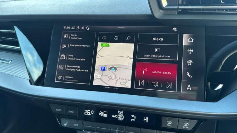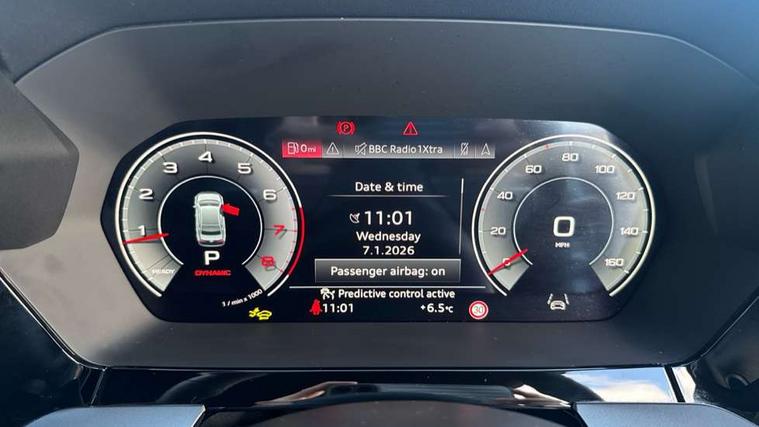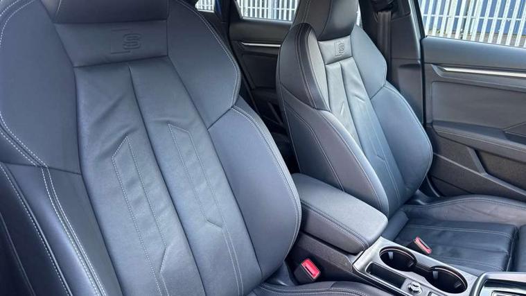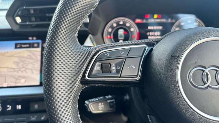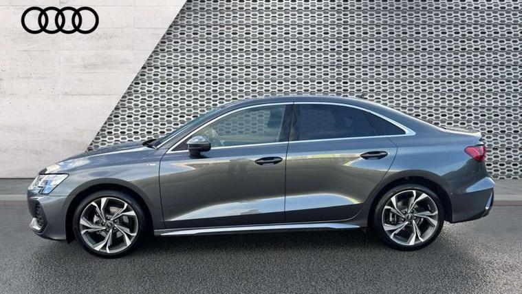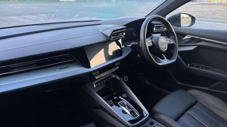 Adjustable speed limiter, Audi drive select, Audi smartphone interface with app store includes wireless Apple carplay, Android auto and Amazon alexa integration, Audi virtual cockpit plus - 12.3" full HD resolution dynamic digital instrument cluster, Automatic start/stop system with recuperation, Bluetooth interface, Camera based traffic sign recognition, Collision avoidance assistant, Cruise control, Distraction and Fatigue warning, e-Call (emergency call), Electromechanical power speed sensitive steering, Emergency assist, Lane departure warning system, MMI Navigation Plus with high resolution 10.1" colour touch screen display, Park Assist with parking system Plus, Service indicator, Trip computer, Voice control system with natural language interaction, Sports suspension, Audi Phonebox light with wireless charging, Audi sound system - 10 loudspeakers including centre loudspeaker and subwoofer, DAB Digital radio, USB ports with charging function in the rear, Acoustic glass windscreen, All weather light, Aluminium window trim, Auto dimming frameless rear view mirror, Automatic dynamic range control, Body colour exterior mirrors, Chrome exhaust tailpipes, Dipped beam, main beam, position light and turning light, Electrically adjustable/heated/folding/auto dimming door mirrors with integrated LED indications + kerb view function for passenger side, Exterior model badging, Front and rear side air inlets in grained matt black with dark liquid chrome frame, Front electric windows, Front radiator grill in high gloss dark chrome, Heat insulating glass windscreen, Illuminated door sills with aluminium inserts at the front with S logo, Intersection light, LED 3rd brake light, LED brake lights, LED daytime running x3, LED headlights with LED rear lights and dynamic rear indicators, LED rear number plate lights, LED reverse light, LED tail lights, Light and rain sensors, Manoeuvring light, Motorway light, Privacy glass - dark tinted rear window, rear door and side windows, Rear boot, Rear diffuser and grill in grained matt black with inlay in dark liquid chrome, Rear electric windows, Rear side wing doors, S line bumpers, Side S line emblems on front wings, Side sill trim in dark liquid chrome, Static cornering light, 12V socket and storage compartment in front centre console, 3 seat bench in 2nd row, 3 spoke flat bottomed leather multifunction sport steering wheel with gear shift paddles, 3-zone deluxe automatic air conditioning, 4 way electrically adjustable lumbar support for driver and front passenger, 40/20/40 split folding rear seat bench, Black cloth headlining, Black front and rear floor mats, Front and rear centre armrest in artificial leather with contrasting stitching on armrests and instrument panel, Front and rear headrests, Heated front seats, Height and reach adjustable steering wheel, Manual boot compartment lid, Manually adjustable front seats, Rear centre armrest with cupholder, S badging on the steering wheel, Seat side bolsters, Single front passenger seat, Stainless steel pedals and front footrest in black, Twin leather upholstery with front sports seats S embossed logo, Aluminium interior elements pack - A3, Multi-coloured LED interior lighting package with Multi-coloured contour lighting of instrument panel - A3, 3x3 point rear seat belts, Driver and front passenger airbag with passenger airbag deactivation, Electronic Stabilisation Control (ESC) including ABS, ASR and EDL, First aid kit with warning triangle and 2 safety vests, Front side airbags with head airbags and interaction airbag, Hill hold assist, Pre-sense front with pedestrian and cyclist detection, Seatbelt monitoring, Tyre pressure loss indicator, Anti theft alarm, Anti-theft wheel bolts, Electronically operated child locks, Immobiliser, Remote central locking with safelock, Black dashboard, Inlay in dark aluminium spectrum,