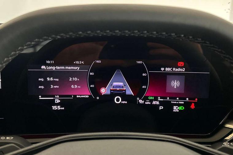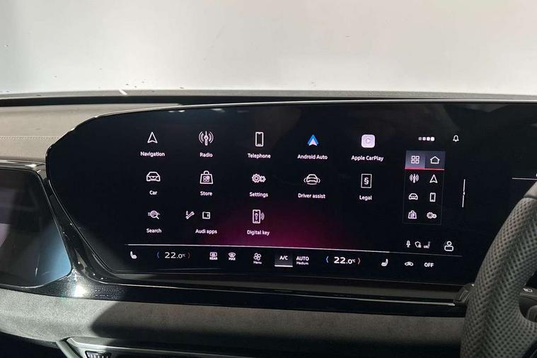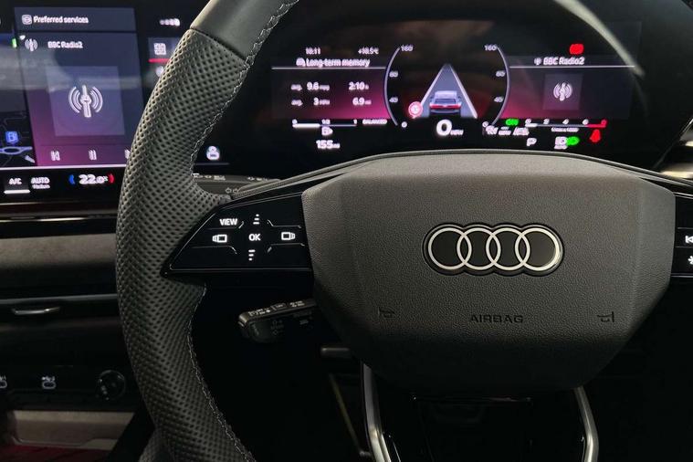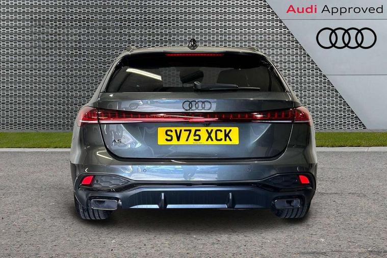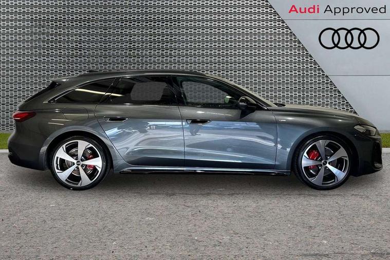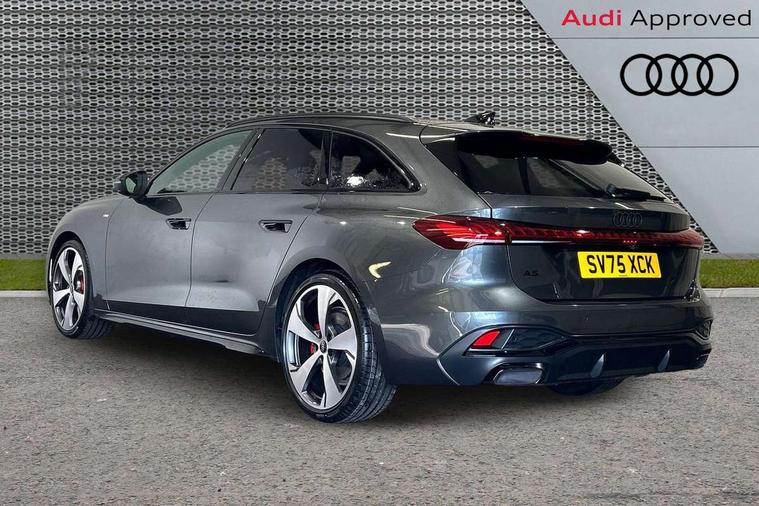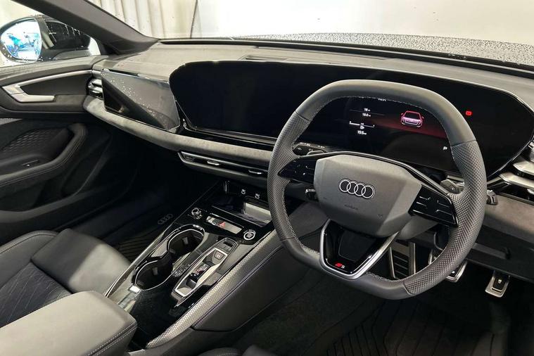 Adaptive cruise control, Advanced driver attention and fatigue montior, Audi application store, Audi assistant, Audi connect emergency call and service, Audi drive select, Audi virtual cockpit plus with 11.9" OLED colour display, Automatic start/stop system with coasting functionality, Camera based traffic sign recognition, Intersection assist, Lane change assistant with exit warning system, rear cross traffic alert and rear turn assist, Lane departure warning with emergency assist, MMI 10.9" front passenger touch display, MMI navigation plus with high resolution 14.5" OLED touchscreen colour display, Park assist plus, Parking system plus with 360 display, Progressive steering with servotronic, Smartphone interface, Swerve assist and turn assist, Top view camera, Traffic sign based speed limiter, Sports suspension lowered by 20mm, 2 USB-C ports in both the front and rear, Audi sound system impressive sound with 8 loudspeakers including centre speaker and subwoofer, 6-channel amplifier with a total output of 180 watts, DAB digital radio reception, Smartphone compartment with wireless charging, Aluminium window trims, Auto dimming rear view mirror, Black door handles, Black roof rails, Dark chrome-plated tailpipe trims, Door mirrors - electrically adjustable, heated, folding and auto dimming on both sides, Front and rear electric windows, Front door sill trims with aluminium inlays, illuminated with 'S' logo, Headlight cleaning system, High beam assist, LED daytime running lights, LED rear lights pro incl. dynamic rear indicators and illuminated light strip with animated coming and leaving home function, LED third brake light, Matrix LED headlights with eight light signatures selectable via the MMI or the myAudi app, Privacy glass, Rear and side windows with heat insulating glass, Rear side wing doors, Rear wash/wipe, S Line badges on the front wings, S line bumpers, radiator grille and diffuser in phantom black and diffuser insert in matt anthracite, White rhombus logo projection light in exterior mirrors, Windscreen with acoustic glazing, 3 rear headrests, 3 seat rear bench, 3 spoke leather steering wheel with multi-function buttons with touch control, flattened on top and bottom, with S badging and contrast stitching, 3-zone automatic climate control, 40:20:40 split folding rear seat bench with centre armrest and cup holders, Comfort front centre armrest, Electrically adjustable front seats, Front and rear floor mats, Front sport seats with integrated headrest and S embossed logo, Headlining in black cloth, Heated front seats, i-Size child seat mounting on the front passenger side and outer rear seats, i-Size and top tether on the outer rear seats, Luggage compartment lid, electrically opening and closing, Manual steering column height and depth adjustment, Memory function for driver seat, Single front passenger seat, Stainless steel pedals and footrest, Steering wheel grips in perforated leather and shift paddles, Ambient lighting package plus - A5, Black styling package plus - A5, 3x3 point rear seat belts, Acoustic vehicle alerting system, Convenience key with safelock, Driver airbag, Electric child safety locks, First aid kit with warning triangle and vests, Front emergency brake assist, Front passenger airbag, Front passenger airbag deactivation, Hill hold assist, Occupant detection in rear seat area, Proactive passenger protection system for front, sides and rear, Red brake calipers, Seat belt monitoring with rear seat occupant reminder, Side airbags in front and rear with head airbag system and front interaction airbag, Tyre pressure loss indicator, Anti theft alarm, Anti-theft wheel bolts, Keyless Go, Accent surfaces and control buttons in gloss black, Black dashboard with contrast stitching, Softwrap in Dinamica with contrast stitching, Upper and lower interior elements in dinamica microfiber, 20" 5 arm fold design Audi sport alloy wheels in silk matt grey and gloss turned finish, Tyre repair kit,