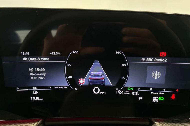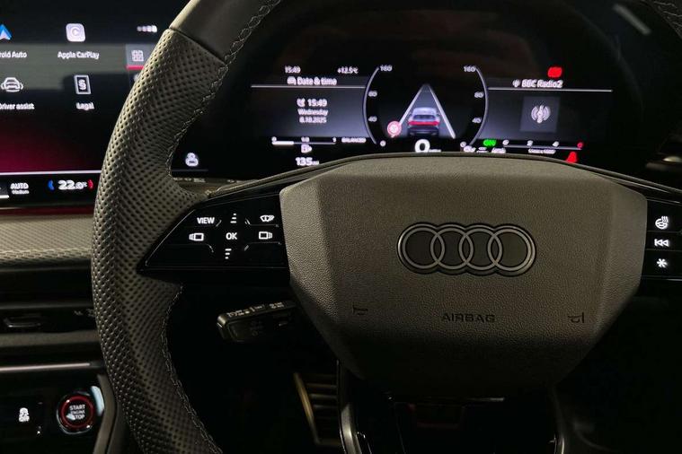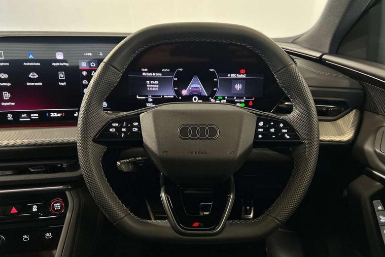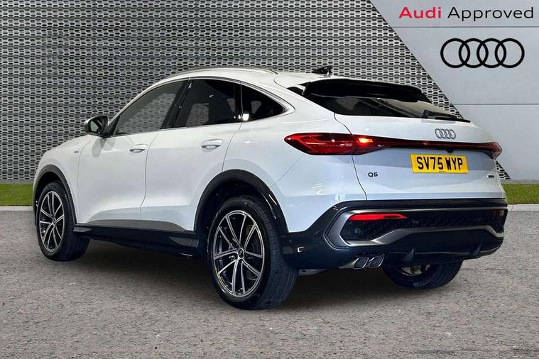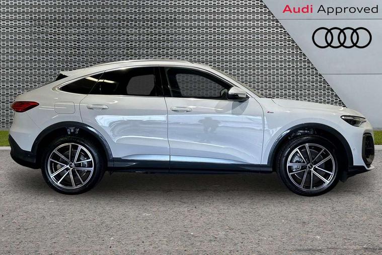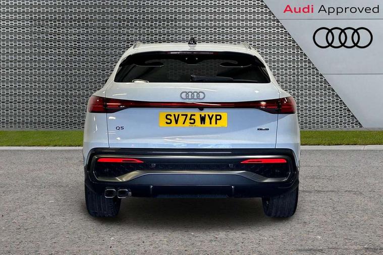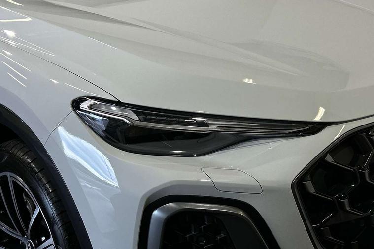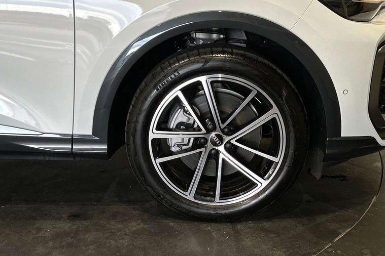 Adaptive cruise assist plus with steering intervention, Advanced driver attention alert, Audi application store, Audi connect emergency call and service, Audi digital key, Audi drive select, Audi smartphone interface, Audi virtual cockpit plus with 11.9" OLED colour display, Camera based traffic sign recognition, Fatigue monitor, Front cross traffic intersection assist, Garage door opener, Lane change assistant with exit warning system, rear cross traffic alert and rear turn assist, Lane departure warning with emergency assist, MMI 10.9" front passenger touch display, MMI navigation plus with high resolution 14.5" OLED touchscreen colour display, Park assist plus, Parking system plus with 360 display, PAS, Reversing camera, Swerve assist and turn assist, Top view camera, Traffic sign based speed limiter, Adaptive air suspension, 2 USB-C ports in both the front and rear, DAB Digital radio, Smartphone compartment with wireless charging, Acoustic glass for front door windows, Active digital light signatures - Six additional combinations of active daytime running light signature, Aluminium roof rails, Auto dimming rear view mirror, Body coloured door mirrors, Coming/leaving home lighting function, Digital OLED tail lights including communication light, Electrically adjustable heated and folding + automatically dimming exterior mirrors, Front and rear electric windows, Front door sill trims with aluminium inlays, illuminated with 'S' logo, Grill frame, inlay and front air inlets in matt anthracite chrome, Headlight cleaning system, Heated rear window, High beam assist, High gloss window surrounds, Logo projection light in exterior mirrors, Matrix LED headlights, Privacy glass, Projection third brake light for rear window in LED, Radiator grille in phantom black, Rear and side windows with heat insulating glass, Rear honeycombe grille in matt black with inlay in matt anthracite chrome, Rear side wing doors, Rear wash/wipe, S Line badge on the front wings, S line bumpers in contrasting Volcano grey metallic paint finish, Towbar preparation, Windscreen with acoustic glazing, 3 rear head restraints, 3 seat bench in 2nd row, 3 spoke leather steering wheel with multi-function buttons with touch control, flattened on top and bottom, with S badging and contrast stitching, 4 way electric lumbar support for driver and front passenger, 40:20:40 split folding rear seat bench with centre armrest and cup holders, Comfort centre armrest front, Deluxe 3 zone electronic climate control, Electric steering wheel adjustment, Electrically adjustable front seats with memory function for driver's side, Front and rear floor mats, Front sport seats with integrated head restraints, Headlining in black cloth, Heated front seats, Heated outer rear seats, Heated steering wheel, i-Size child seat mounting on the front passenger side and outer rear seats, i-Size and top tether on the outer rear seats, Interior trim in aluminium look, Luggage compartment lid, electrically opening and closing, Single front passenger seat, Softwrap in leatherette, Stainless steel pedals and footrest, Steering wheel grips in perforated leather and shift paddles, Twin leather upholstery, Ambient lighting package plus - Q5, Sound and Vision pack - Q5, Storage and luggage compartment pack - Q5, Vanadium pack - Q5, 3x3 point rear seatbelts, ABS, Acoustic vehicle alerting system, Convenience key with safelock, Driver and front passenger airbag with passenger airbag deactivation, Electric child safety locks, First aid kit with warning triangle and high visibility vests, Front emergency brake assist, Front side airbags with head airbag system and front interaction airbag, Hill hold assist, Occupant detection in rear seat area, Proactive passenger protection system for front, sides and rear, Side airbags in front and rear with head airbag system and front interaction airbag, Tyre pressure loss indicator, Anti theft alarm, Anti-theft wheel bolts, Remote control key with SAFELOCK and keyless go, Anthracite matt brushed aluminium inlays with linear embossing, Black dashboard with contrast stitching, Steel grey seat stitching, Upper and lower interior elements in artificial leather, 20" 5 twin spoke black metallic, gloss turned finish Audi Sport alloy wheels, Tyre repair kit,