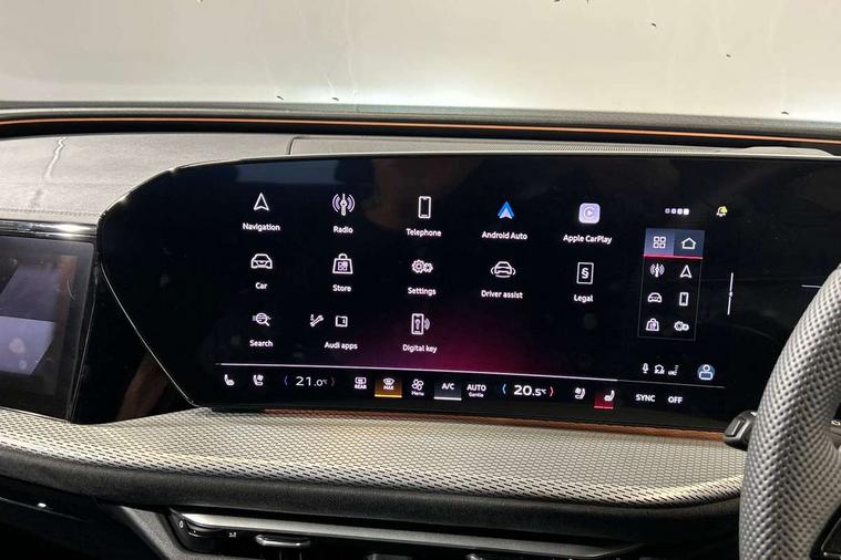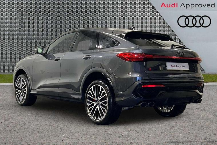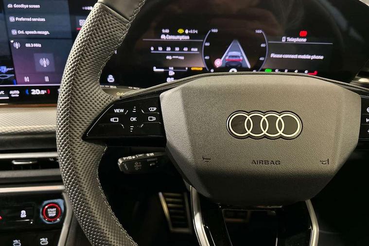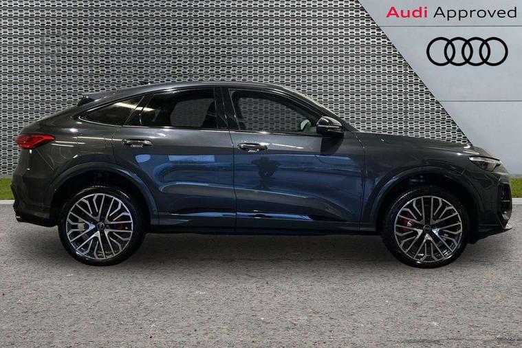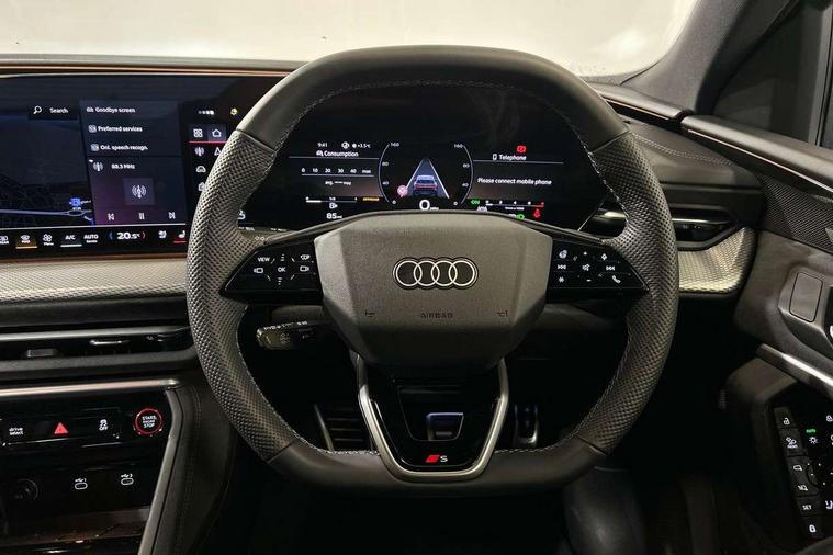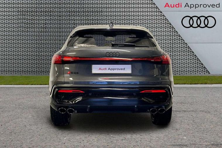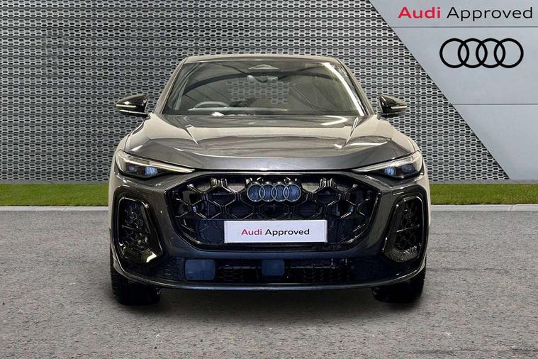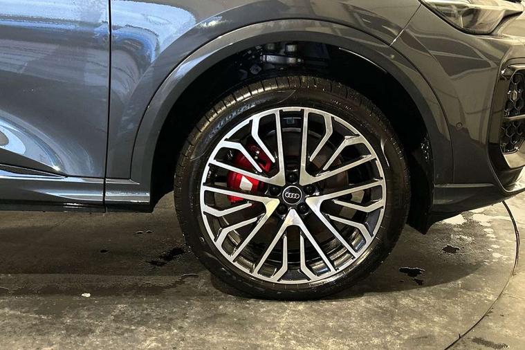 Adaptive cruise assist plus with steering intervention, Advanced driver attention alert, Audi application store, Audi connect emergency call and service, Audi digital key, Audi drive select, Audi smartphone interface, Audi virtual cockpit plus with 11.9" OLED colour display, Camera based traffic sign recognition, Fatigue monitor, Front cross traffic intersection assist, Garage door opener, Lane change assistant with exit warning system, rear cross traffic alert and rear turn assist, Lane departure warning with emergency assist, MMI 10.9" front passenger touch display, MMI navigation plus with high resolution 14.5" OLED touchscreen colour display, Park assist plus, Parking system plus with 360 display, PAS, Reversing camera, Swerve assist and turn assist, Top view camera, Traffic sign based speed limiter, S adaptive air suspension, 2 USB-C ports in both the front and rear, DAB Digital radio, Smartphone compartment with wireless charging, Acoustic glass for front door windows, Active digital light signatures - Six additional combinations of active daytime running light signature, Auto dimming rear view mirror, Black door mirrors, Black roof rails, Coming/leaving home lighting function, Contrast bumpers in mythos black metallic paint finish, Digital OLED tail lights including communication light, Electrically adjustable heated and folding + automatically dimming exterior mirrors, Entry LED with red and white rhombus S logo projection, Exhaust tailpipes in dark chrome, Front and rear electric windows, Front door sill trims with aluminium inlays, illuminated with 'S' logo, Grill frame, inlay and front air inlets in matt anthracite chrome, Headlight cleaning system, Heated rear window, High beam assist, High gloss window surrounds, Logo projection light in exterior mirrors, Matrix LED headlights, Memory function for door mirrors, Privacy glass, Projection third brake light for rear window in LED, Radiator grille in phantom black, Rear and side windows with heat insulating glass, Rear honeycombe grille in matt black with inlay in matt anthracite chrome, Rear side wing doors, Rear wash/wipe, Red S rhombus badging with 'S' lettering on rear, S exterior styling, Towbar preparation, Windscreen with acoustic glazing, 3 rear head restraints, 3 seat bench in 2nd row, 3 spoke leather steering wheel with multi-function buttons with touch control, flattened on top and bottom, with S badging and contrast stitching, 40:20:40 split folding rear seat bench with centre armrest and cup holders, Comfort centre armrest front, Deluxe 3 zone electronic climate control, Electric steering wheel adjustment, Electrically adjustable front seats with memory function for driver's side, Front and rear floor mats, Front seat ventilation, Front sport seats with integrated head restraints, Headlining in black cloth, Heated front seats, Heated outer rear seats, Heated steering wheel, i-Size child seat mounting on the front passenger side and outer rear seats, i-Size and top tether on the outer rear seats, Interior trim in aluminium look, Luggage compartment lid, electrically opening and closing, Perforated fine nappa leather upholstery with diamond stitching incl ventilation and massage function for front seats, Pneumatically adjustable lumbar support with massage function for front seats, Single front passenger seat, Softwrap in Dinamica, Stainless steel pedals and footrest, Steering wheel grips in perforated leather and shift paddles, Ambient lighting package plus - Q5, Black styling package plus - Q5, Sound and Vision pack - Q5, Storage and luggage compartment pack - Q5, Vanadium pack - Q5, 3x3 point rear seatbelts, ABS, Acoustic vehicle alerting system, Convenience key with safelock, Driver and front passenger airbag with passenger airbag deactivation, Electric child safety locks, First aid kit with warning triangle and high visibility vests, Front emergency brake assist, Front side airbags with head airbag system and front interaction airbag, Hill hold assist, Occupant detection in rear seat area, Proactive passenger protection system for front, sides and rear, Red brake calipers, Side airbags in front and rear with head airbag system and front interaction airbag, Tyre pressure loss indicator, Anti theft alarm, Anti-theft wheel bolts, Remote control key with SAFELOCK and keyless go, Black dashboard with contrast stitching, Carbon micro twill structure inlay, Steel grey seat stitching, Upper and lower interior elements in dinamica microfiber, 21" 5 arm split black metallic, gloss turned finish Audi sport alloy wheels, Tyre repair kit,