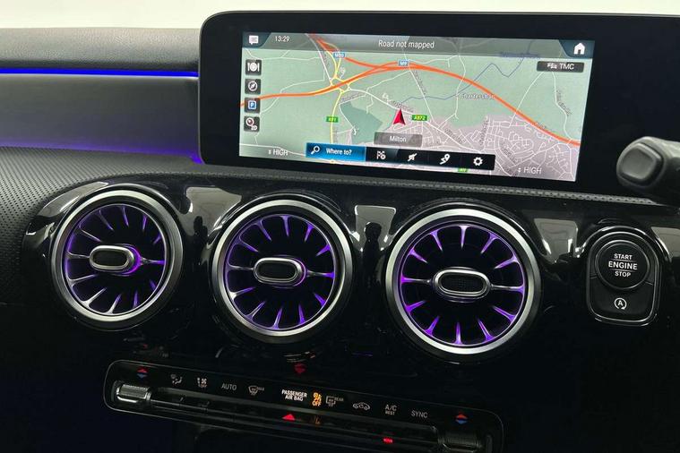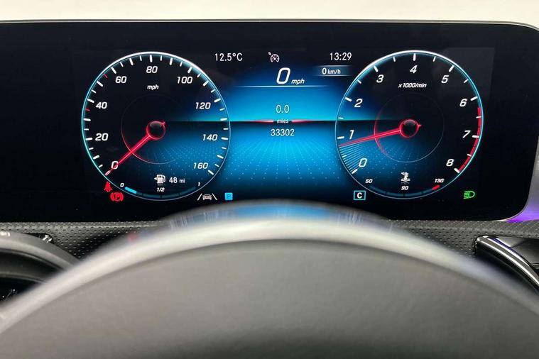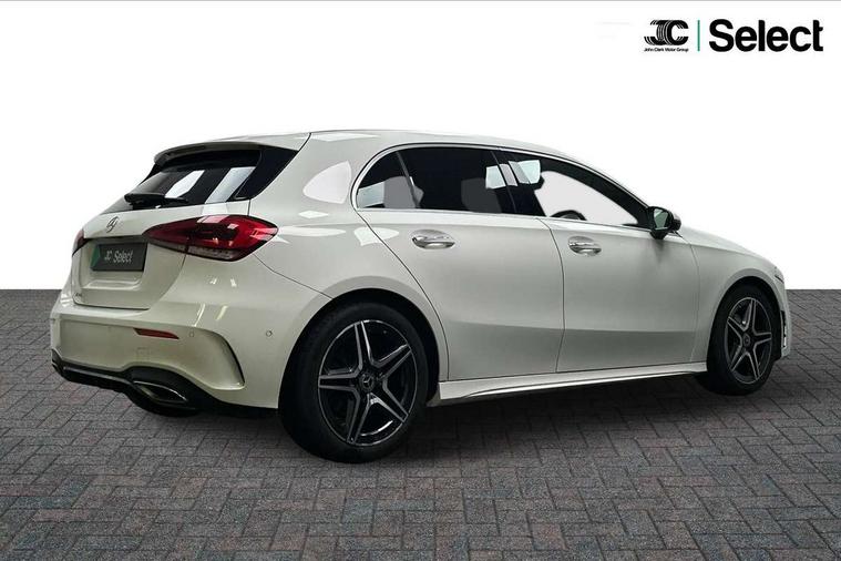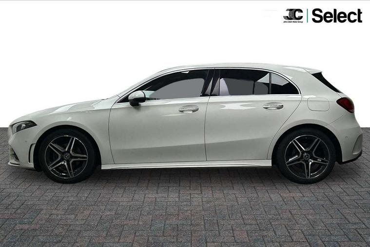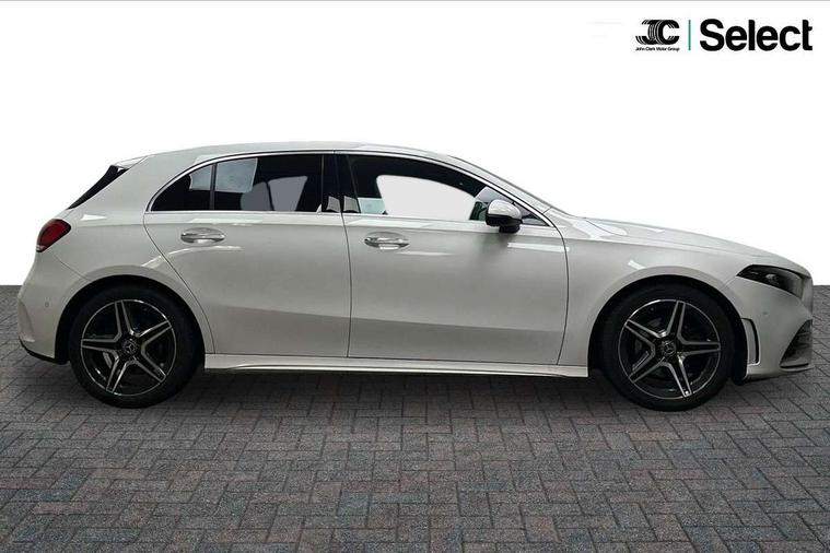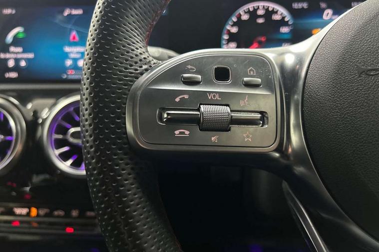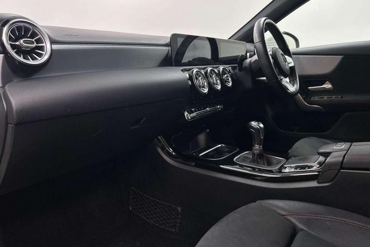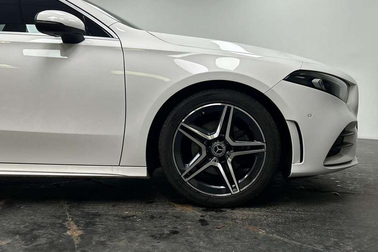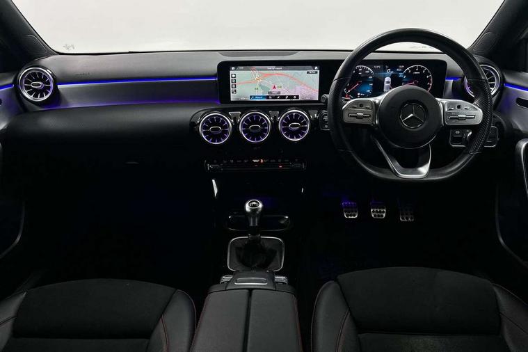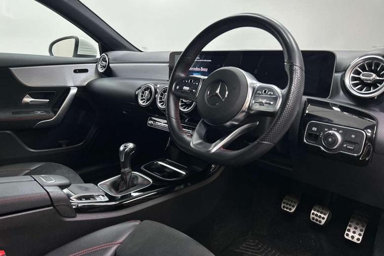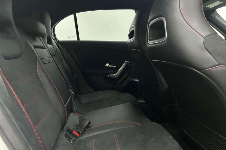 10.25" Digital instrument cluster display screen, 180 degree rear view camera with parking guidelines, Active lane keep assist, Active park assist with parktronic system including front and rear parking sensors, Attention assist, Brake pad wear indicator warning light, Cruise control + speed limiter, Direct steering, DYNAMIC SELECT with a choice of driving modes (ECO, Comfort, Sport and Individual), ECO start/stop function, Fluid level warning indicator for fuel, oil, coolant and washer fluid, Hard-disk navigation, Hey Mercedes Voice activation, Lamp failure indicator, Mercedes me connect including emergency call system, accident recovery, breakdown and maintenance management, Outside temperature gauge, Radio aerial integrated into roof spoiler, Service indicator (ASSYST), Speed sensitive power steering, Trip computer, Lowered comfort suspension, DAB Digital radio, Dual bluetooth interface, 2 USB ports (type C), MBUX multimedia system with DAB digital radio and touchpad including satellite navigation, Mid-range sound system, 4 Electric Front and Rear windows, Active aerodynamics with AIRPANEL in the front apron, Adaptive brake lights, AMG front, rear apron and side skirts, Blue tinted glass, Body colour bumpers, Body colour door handles, Body colour side skirt, Body coloured door mirrors, Chrome beltline trim, Diamond radiator grille with chrome pins and silver louvre + chrome insert, Electric adjustable and heated door mirrors with integrated LED side indicators, Exhaust system - Twin trapezoidal tailpipes in polished stainless steel, Headlamp assist automatic headlamp activation, Heated glass rear windscreen + timer control, LED high performance headlamps with integrated LED daytime running lights, LED tail lamp, LED third brake light, Privacy glass, Rain sensor windscreen wipers, Rear fog lights, Rear wiper, 12V socket, 3 Spoke flat bottom leather multi function steering wheel with perforated leather in grip area, 40:20:40 split folding rear seats, Air vents surround and cruciform nozzle in silver chrome, AMG floor mats with red stitching, Artico man-made leather/Microfibre Dinamica upholstery with red contrast stitching, Auto Mercedes-Benz child seat recognition sensor, Black roof lining, Brushed stainless steel sports pedals with rubber studs, Controller on centre console with chrome surround, Cup holder and stowage compartment lighting, Freight packaging without tie-down hooks, Front centre armrest with storage compartment, Front door sills with Mercedes Benz lettering, Front footwell lights, Front reading lamps in left and right console downlighter, Front seat backs luggage nets, Front seat cushion length adjustment, Front signal exit lamp, Front vanity lights, Handle recess/closing light, Heated front seats, Height/reach adjustable steering column, Illuminated door sills, Illuminated glove compartment stowage, Interior lighting - 64 colour Ambient lighting, ISOFIX Child seat top tethers and anchor fixings, Manual height adjustable front seats, Oddments tray lighting, Rear armrest, Rear head restraints, Rear Reading Lamps, Seat occupancy sensor for front passenger seat, Spectacles compartment for driver, Sports seats with integrated headrests, Storage compartment under load area floor, Sunvisors with illuminated vanity mirrors, Touchpad, Touchpad illumination, Twin front cupholders, Two zone thermotronic luxury automatic climate control, Light and sight pack - A Class, Mirror package - A Class, Seat comfort pack - A Class, 3 rear 3 point seatbelts, ABS with Brake Assist, Active bonnet, Active brake assist includes forward collision warning system with autonomous braking, Adaptive brake assist with hold function and hill start assist, Black seatbelts, Childproof locks manually operated for rear doors and electrically operated for rear power windows, Crash responsive emergency lighting, Driver and passenger head and side airbags, Drivers knee airbag, Dual stage driver/passenger airbags, Electronic parking brake, ESP curve dynamic assist, ESP with ASR, Front and rear seatbelt reminder, Front brake callipers with Mercedes Benz lettering, Tyre pressure monitoring system, Warning triangle and first aid kit, Window airbags, Alarm system/interior protection/immobiliser, Keyless entry lock/unlock, Remote central locking and crash sensor with emergency opening function, 18" AMG 5 twin spoke light alloy wheels in titanium grey with highsheen finish, Summer tyres, Tirefit sealant kit,