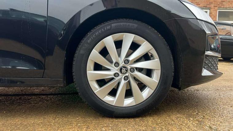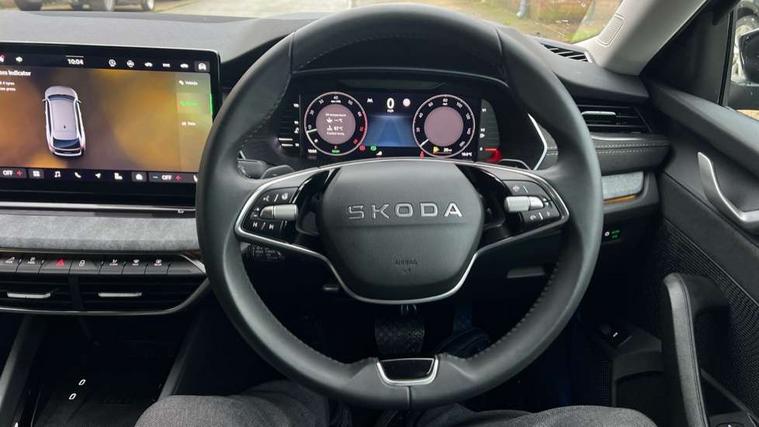 1x USB Typc C port in rear view mirror, 4x USB Type C ports - 2x in front centre console and 2x in rear (45W), Drive mode selection, Driver fatigue sensor, eCall emergency system, Electro-mechanical power steering, Front assist system, Traffic jam assist, Traffic sign recognition, Turn Assist, Virtual Cockpit - 10.25" digital display, Voice control system, Wireless charging (15W) with cooling function, Wireless SmartLink for Apple CarPlay and Android Auto, 13" touchscreen display with navigation, DAB Digital radio, Aero front windscreen wipers with intermittent function, Auto dimming rear view mirror, Body colour bumpers, Body colour door mirrors and handles, Chrome grille surround, Chrome roof rails, Chrome strip in lower front bumper, Chrome window surrounds, Electric front and rear windows, Heated rear windscreen, High level third brake light, Ice scraper in fuel cap, LED daytime running lights, LED Headlights, Logo projection in front doors, Rain and light sensors, Rear fog light on one side, Rear privacy glass, Rear side wing doors, Rear spoiler, Rear window wiper, 12 volt socket in boot, 3 rear headrests, 3 seat bench in 2nd row, 4 foldable roof handles, Front head restraints, Heated front seats, Illuminated glovebox, Interior door handles in dark chrome, Jumbo Box storage, Luggage compartment lighting x2 lights, Mechanical rear seat release from boot, Single front passenger seat, Steering wheel in black leather with black stitching, Storage compartments in left and right of boot, Sun visors with mirrors, Sunglasses storage, Ticket holder, Umbrella in door panel, Unsplit rear bench seat, split folding backrest with centre armrest with cupholder, Comfort package - Octavia Estate, Simply clever package premium - Octavia, 3x3 point rear seat belts, Alarm with interior monitoring, tilt sensor and back up horn, Curtain airbags and front side airbags, Driver and front passenger airbags, Drivers knee airbag, Electronic parking brake, ESC including ABS, EBV, MSR, ASR, EDS, HBA, DSR, Front central airbag, Hill hold assist, ISOFIX on front passenger seat and outer rear seats, Passenger airbag deactivate switch, Three point seat belts in front and rear, Two tone horn, Tyre pressure monitor, Visual and acoustic seat belt reminder, Warning reflectors in front door, Anti-theft wheel bolts, Keyless start/stop, Remote central locking, Chrome air vent surrounds,
