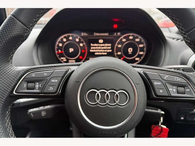 3D map display, Audi connect navigation and infotainment includes innovative services, Audi connect remote and control connects your vehicle to your smartphone, Audi drive select: S tronic - power steering assistance + engine + gearshift (modes: comfort, auto, dynamic, efficiency, individual), Audi smartphone interface - Apple carplay/Android Auto, USB connect, 2xSDXC card readers, voice control for navi, telephone, music and 3rd party apps, Audi virtual cockpit, Automatic start/stop system with recuperation, Bluetooth interface includes bluetooth audio streaming, Cruise control, E-call, Jukebox hard drive memory for music (10GB), MMI navigation plus with 8.3" colour MMI screen and MMI touch, Natural voice recognition, Power operated tailgate, Progressive steering, Rear parking sensors, Sport suspension, 6 passive loudspeakers, DAB Digital radio, Auto dimming rear view mirror, Black window trims, Body colour door mirrors, Electrically adjustable, folding, auto dimming and heated door mirrors with integrated LED side indicators, Front windscreen with grey tinted sunband, LED daytime running lights, LED headlights with dipped beam, high beam, position lights, indicators, LED rear lights, LED third brake light, Privacy glass - dark tinted rear and rear side windows from B-pillar backwards, Rear side wing doors, Rear wiper, S Line badges on the front wings, S Line body styling - front and rear bumpers, side skirts, radiator grille, rear diffuser insert and front air intakes, Variable front intermittent wipers, Wheel arch trims in manhattan grey, 12v socket in front, 3 seat bench in 2nd row, 3 spoke multi-function leather steering wheel with S badging, 4-way electric lumbar support for front seats including manual seat height adjustment for both front seats, 60/40 split folding rear seat bench, Black carpets, Black cloth headlining, Front and rear head restraints, Front centre armrest, Front sport seats, Front/rear floor mats, Height/reach adjust steering wheel, Illuminated door sill trims with S logo, ISOFIX child seat mounting in front passenger and rear outer seats, Manual air conditioning, Single front passenger seat, Stainless steel pedals, Tool kit, 3x3 point rear seatbelts, 6 airbags - Front, curtain and front side airbags, Electromechanical parking brake, Electronic stabilisation control including ABS, ASR and EDL, Front passenger airbag deactivation, Hill hold assist, Pre-sense front with pedestrian recognition, Seatbelt monitoring, Tyre pressure warning light with visual and acoustic warning, Warning triangle and first aid kit, Anti theft alarm, Anti theft wheel bolts, Electronically operated child locks, Remote central door locking, Aluminium interior element, Black dashboard, Matt brushed aluminium trim inlays,