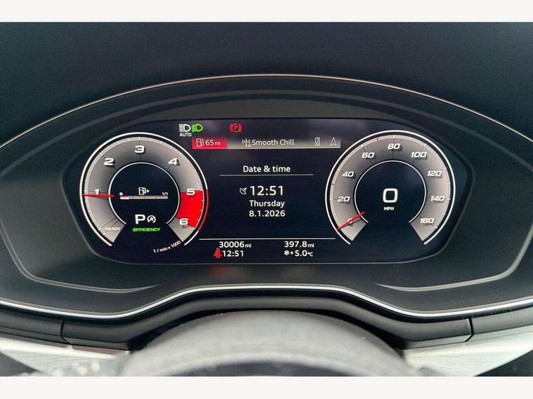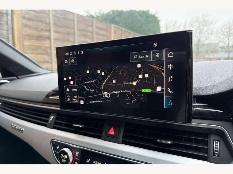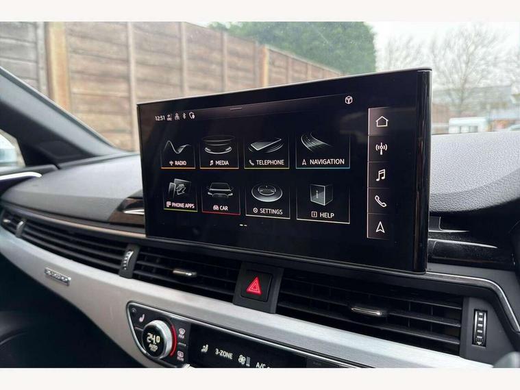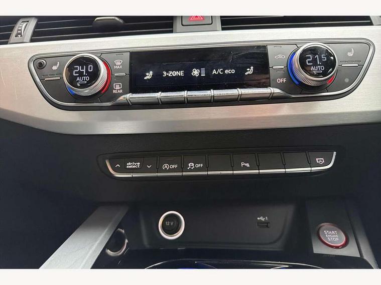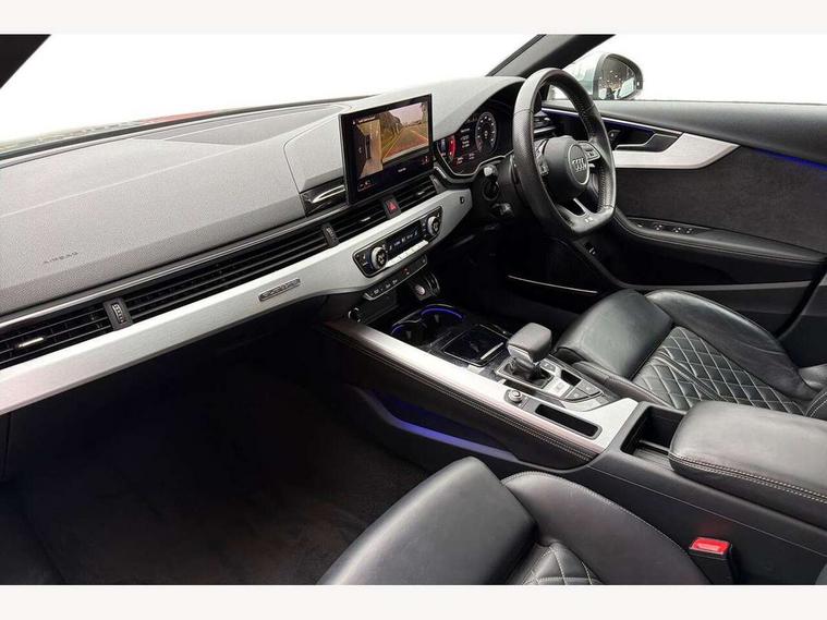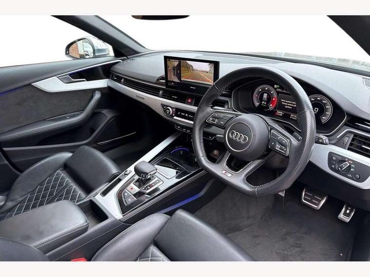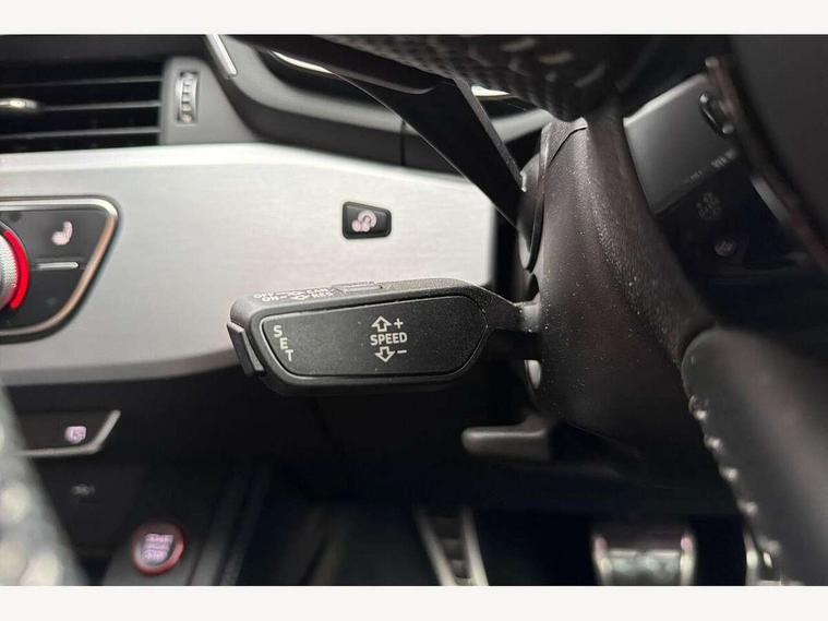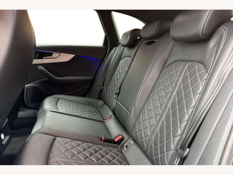 Audi connect safety and service (e-call), Audi drive select, Audi parking system plus with front and rear sensors, Audi phone box with wireless charging, Audi smartphone interface, Audi virtual cockpit, Automatic start-stop system with coasting functionality and efficiency programme, Bluetooth interface, Electromechanical power steering, MMI Navigation plus with MMI touch includes 10.1" high resolution colour MMI display, 3D map, Power operated tailgate, Rear view camera, S instrument dials, Voice control system, 58 Litre fuel tank, S sports suspension, 2 USB charging ports, Audi sound system with 10 loudspeakers, DAB digital radio reception, Aluminium effect door mirror housings, Aluminium roof rails, Audi Beam uses LEDs to project the Audi Sport logo, Auto dimming rear view mirror, Body colour door handles, Body colour front spoiler lip, Body colour side sill trim, Electrically folding auto dimming/adjustable/heated door mirrors with LED side indicators and kerb view function for passenger side, High beam assistant, LED headlights with LED rear lights + dynamic rear indicators + headlight adjustment and high beam, turning light + LED daytime running lights, Privacy glass, Rain and light sensors, S line front and rear bumpers with side skirts, S Line roof edge spoiler, S radiator grille in twilight grey matt with dual struts in aluminium and S4 logo, S rear diffuser in twilight grey matt and honeycomb grille in black, S specific dual branch chrome tailpipes with twin oval pipes on left and right, S specific side air inlets in titan black with chrome inlays in unique S design, S Style rear spoiler, Windscreen with acoustic glazing, 3 spoke flat bottomed high multi-function leather steering wheel with chrome clip, 40/20/40 split folding 3 rear seat bench in 3 parts with rear centre armrest, Black cloth headlining, Black leather gear lever knob, Contrast stitching on seats, steering wheel and gear lever gaiter, Deluxe 3 zone electronic climate control, Door sill trims with aluminium inlay, Electric load area cover, Fine nappa leather upholstery with S embossed logo + super sports seats, Front and rear head restraints, Front centre armrest, Gear lever with diamond S badge, Heated front seats, Illuminated door sill trims with S logo, ISOFIX child seat mounting and top tether, Key with S4 logo, Pneumatically adjustable lumbar support with massage function, Stainless steel pedals and foot rest, Extended Interior Upholstery Pack - A4/S4, Extended leather pack - A4/S4, High gloss package - A4, LED Interior light pack - A4/S4, 3 rear seatbelts, 6 airbags - Driver, front passenger, curtain and side windows, Electronic Stabilisation Control (ESC) including ABS, ASR and EDL, Front brake calipers painted in black with S4 logo, Hill hold assist, Multi collision brake assist, Pop-up bonnet for pedestrian protection, Pre sense city, S model enhanced braking system, Seatbelt monitoring, Warning triangle and first aid kit, Anti theft alarm, Anti theft wheel bolts, Keyless Go, Matt brushed aluminium inlays, 19" 5 spoke V design contrasting grey partly polished alloy wheel, Tool kit, Tyre repair kit,