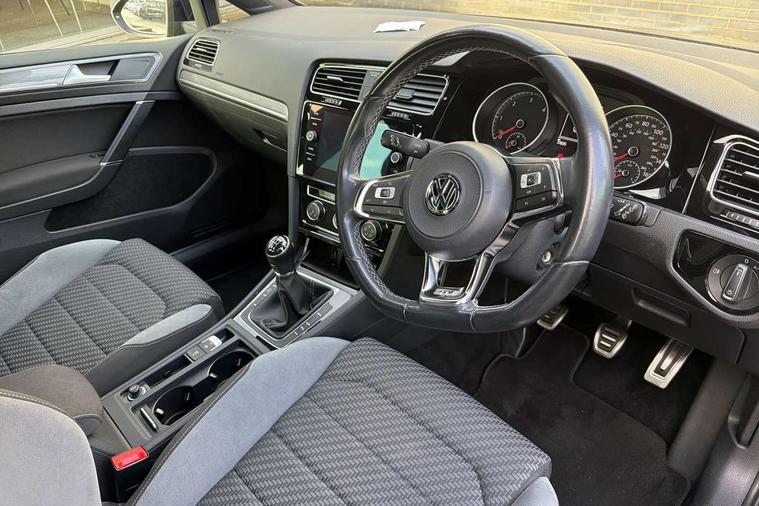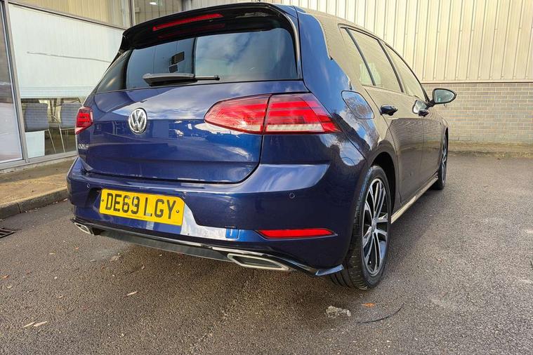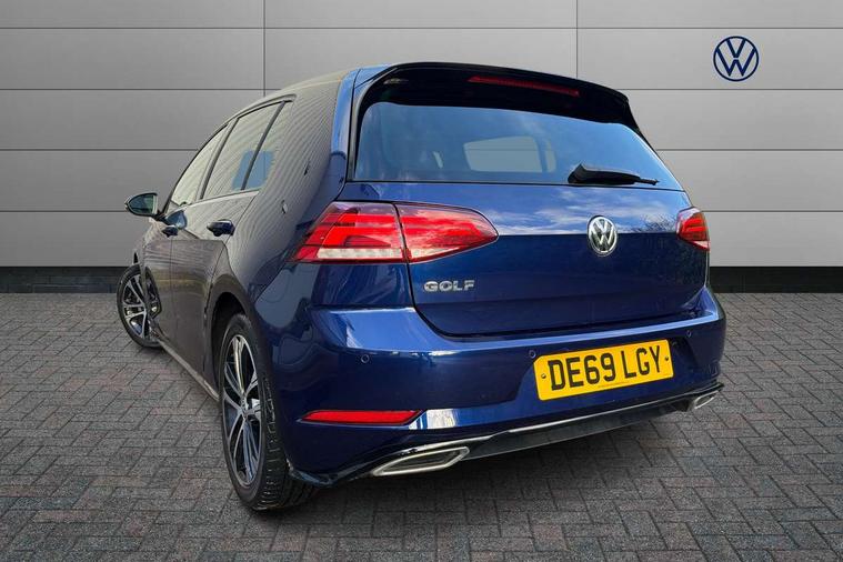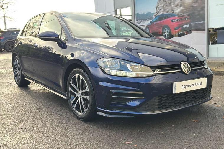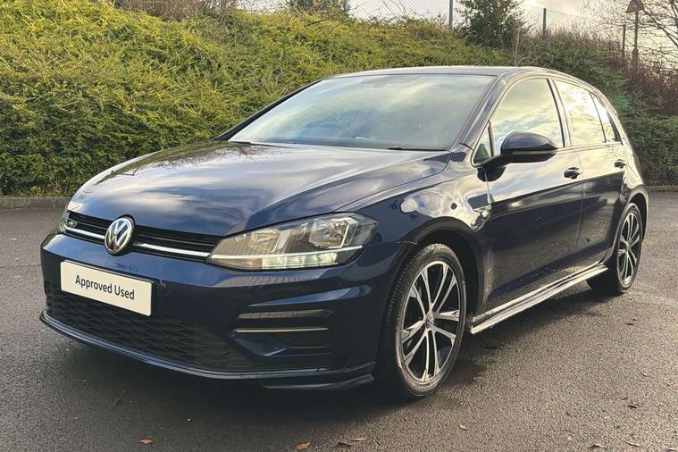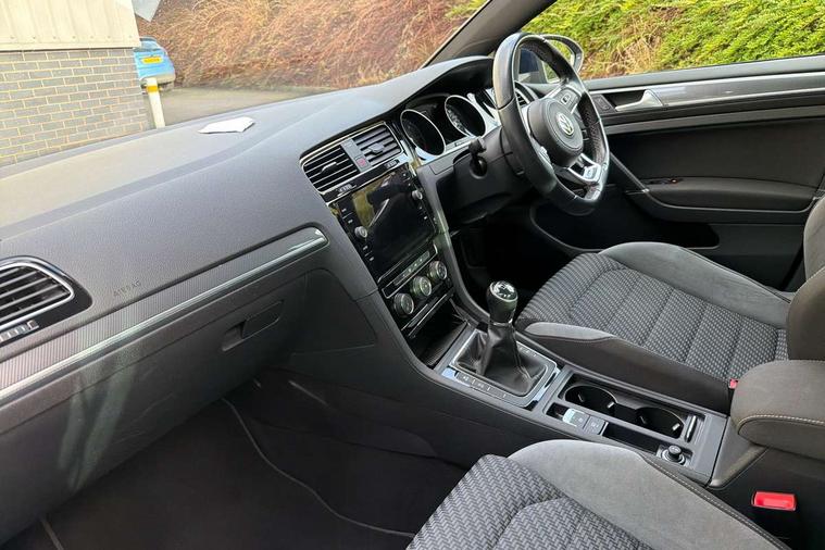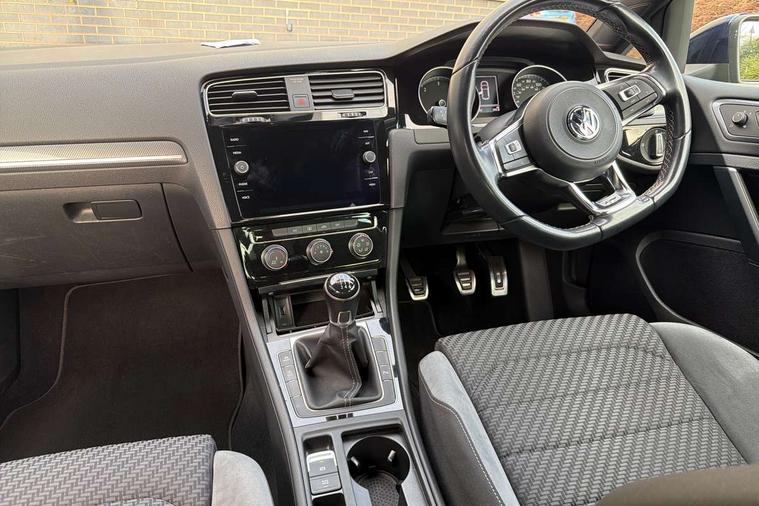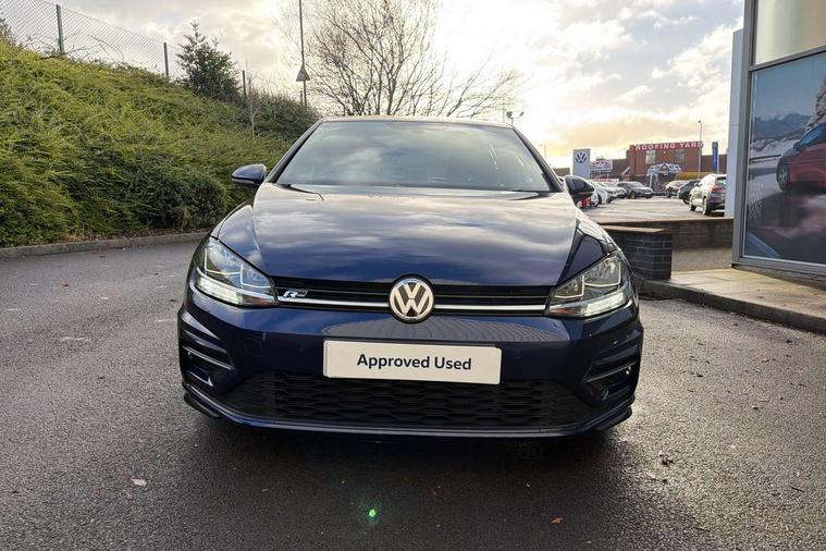 'Lights On' Reminder warning buzzer, ACC - Adaptive cruise control with front assist, forward collision warning, distance monitoring, city emergency brake and speed limiter, Bluetooth telephone and audio connection for compatible devices, Brake pad wear indicator warning light, Driver alert system, Driving Mode Selection with four preset modes - Eco, normal, sport or individual modes, Instrument cluster in white, Misfuelling protection device, Multifunction computer with visual gear change recommendation for fuel consumption, Power assisted speed sensitive electro-mechanical steering, Push tank flap, Speed limit display, Speedo, rev counter, electronic odometer, trip, service interval display, exterior temperature and fuel gauge, Startup screen with R-Line logo, Stop/start system, Think blue trainer driver tips and journey analysis, Warning buzzer and light for front seatbelts unfastened, Battery regeneration during braking, Diesel particulate filter, XDS electronic differential lock, Composition media system, DAB Digital radio receiver, Driver Personalisation profile selection, MP3/WMA compatability, Multi device interface (MDI) with USB connection, Premium USB cable in choice of either Apple or Android smartphone compatibility, SMS Functionality, USB and SD card connectivity, Black front air intake and radiator grille with chrome insert, Body colour bumpers, Body colour door handles, Body colour door mirrors with integrated indicators, Body colour rear roof spoiler, Dusk sensor + automatic driving lights, Electric front windows, Electric rear windows, Electrically adjustable and heated door mirrors, Fully galvanised body, Glossy black R-Line specific louver ventilation, Heated rear windscreen, High level 3rd brake light incorporating LED Technology, LED front fog lights with static cornering light function, Left and right chrome effect trapezoid dummy exhaust tailpipe surrounds, Radiator grille with R-Line logo, Range adjustable headlights via infotainment system with LED daytime running lights, Rear diffuser, Rear fog lamp, Rear number plate lights incorporating LED technology, Rear tinted glass 65% light absorbing from B pillar backwards, Rear window aerial, Rear window wash/wipe with intermittent wipe, Reflectors in all doors, Remote electrically foldable door mirrors, door mirror puddle lights and reverse activated kerb-view adjustment on passengers door mirror, Shiny black aerofoil downside, Sill extensions, Stainless steel door sill protection, Unique R Line badging, Windscreen wipers/ intermittent wipe + 4 position delay, 12V socket in luggage compartment, 3 rear headrests, 4 load lashing points in luggage compartment, 60/40 split folding rear seat backrest, Bag hook in luggage compartment x 2, Black headlining, Black roof lining, Cooled glovebox, Dust/pollen filter, Embosseed R line logo on front sport seat backrest, Front + rear carpet mats, Front centre armrest with storage compartment and two rear air vents, Front seat back storage pockets, Grab handles front x 2, rear x 2 with integrated coat hooks, Height and reach adjustable steering wheel, Illuminated vanity mirrors, Instrument lighting white adjustable panel illumination, Interior light delay, Isofix preparation for 2 rear child seats, Leather gear knob and handbrake grip, Load through provision with rear centre armrest and cupholders x2, Luggage compartment lighting, Multifunction sports leather steering wheel with R-Line logo and decorative seams in crystal grey, Overhead storage box, Stainless steel pedals, Storage box in luggage compartment, Storage compartment in roof console with cover, Storage compartments in front doors, Storage compartments in rear doors, Stowable luggage compartment cover, Sun visors, Variable boot floor, height adjustable and removable, Ambient lighting pack - Golf, Convenience Pack - Golf, Light and Sight pack - Golf, Mirror pack - Golf, R Line Styling pack - Golf, 3 rear three point seatbelts, Airbags - Driver's and front passenger's, curtain airbag, Driver's knee, front side impact and passenger's airbag deactivation switch, Anti-lock Braking System (ABS) with Hydraulic Brake Assist (HBA), Automatic post collision braking system, Child locks on rear doors, Driver/Passenger optimised head restraints, Electronic parking brake with auto hold, Electronic stability control (ESC) including Electronic differential lock (EDL) and ASR (Traction control) with deactivation via infotainment system, Front ventilated disc brakes and rear disc brakes, Pre crash preventive occupant protection, Three point height adjustable front seatbelts with tensioners, Tyre pressure loss indicator, Alarm with interior protection and deactivation via infotainment system, Electronic engine immobiliser, Chrome plated air vent surround, Chrome plated electric mirror adjustment switch surround, Chrome-plated light switch surround, Dark Diamond decorative inserts in dash and door panels, Piano black decorative inserts in centre console, Steel space saver spare wheel,