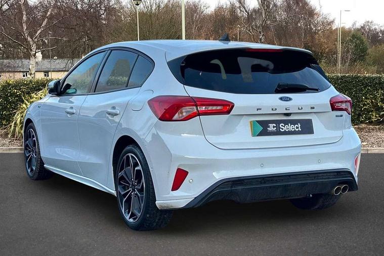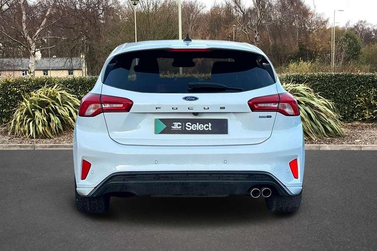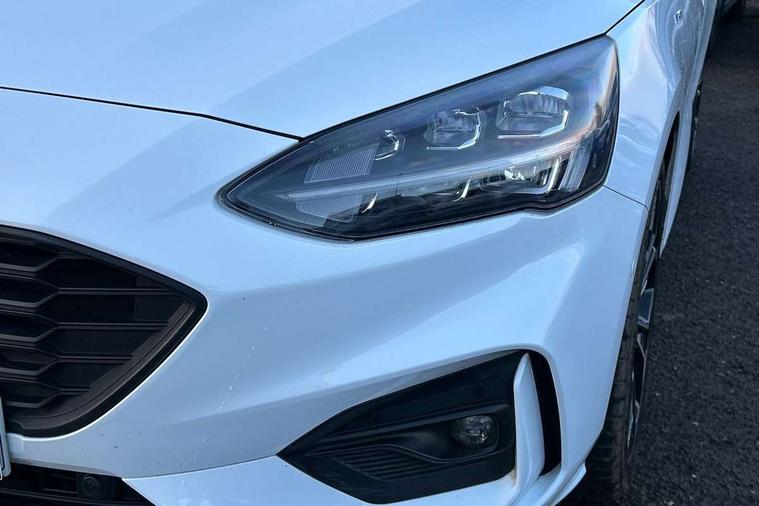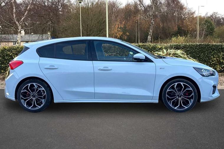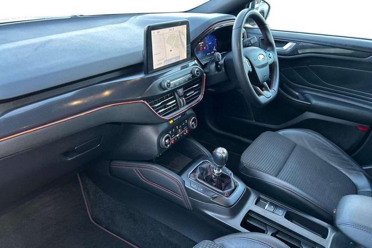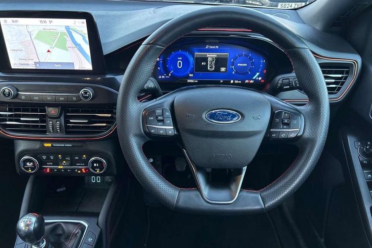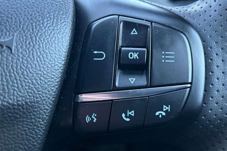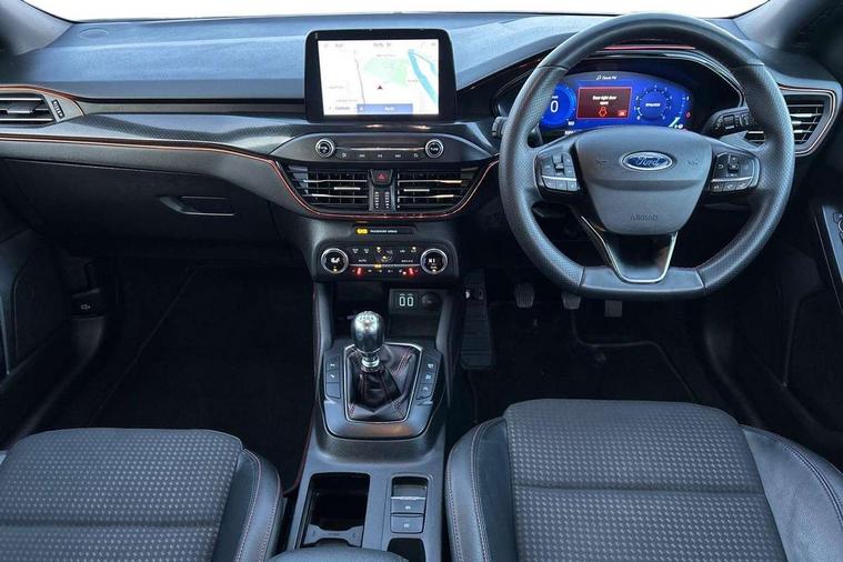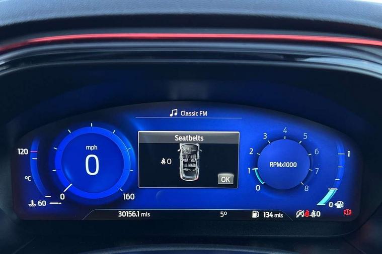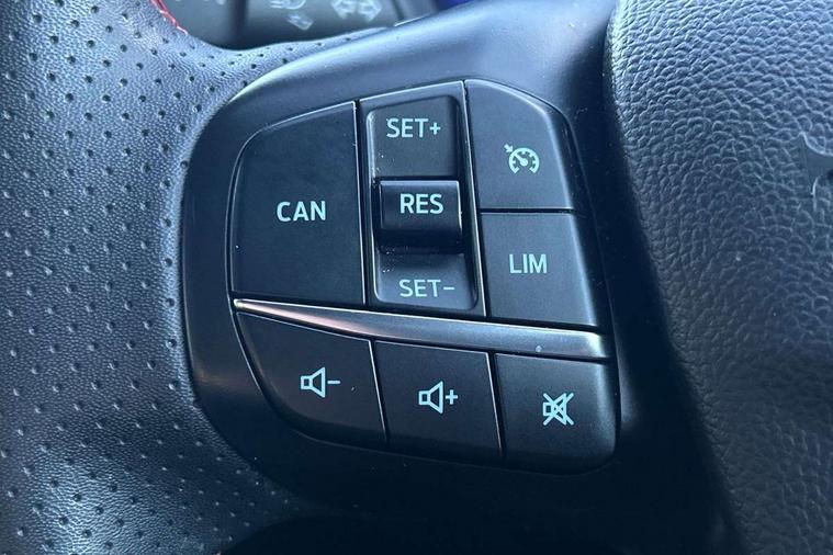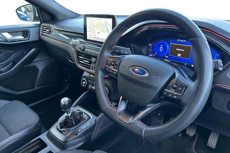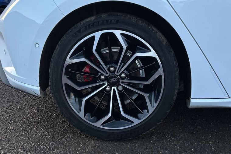 12.3" Digital instrument cluster, Bluetooth system, Digital clock, E-call, Easy fuel capless refuelling system, Eco mode, Ford SYNC 3 navigation with 8" TFT touchscreen, DAB radio and app link Android auto/Apple carplay, Intelligent speed assist, Lane keeping system - lane keeping alert and lane keeping aid, PAS, Selectable drive mode, Trip computer, Sports tuned suspension, 2 USB ports, Aux input, Auto dimming rear view mirror, Auto headlamps (on/off), Automatic rain sensing wipers, Body colour large rear spoiler, Body coloured bumpers, Body coloured door handles, Body coloured electrically operated and heated door mirrors with side indicators, Electrically operated front and rear windows with one touch opening and closing, Front variable intermittent wipers with electric wash, Heated rear window, LED daytime running lamp, Polished twin tailpipe, Power folding door mirrors with puddle lights, Quickclear heated windscreen, Rear privacy glass, Rear side wing doors, ST-Line upper and lower grille with full body styling kit and wing badges, Tailgate wash/wipe, Third brake light, Unique door and instrument panel inserts, 3 seat bench in 2nd row, 3 spoke flat bottomed Sensico steering wheel with red stitching, 6 way power adjustable driver seat, Aluminium gear knob, Dark headliner, Driver's lumbar support, Dual zone electronic air temperature control, Front and rear floor mats with red stitching, Heated driver and front passenger seats, Heating for Sensico steering wheel, Height adjustable front headrests, Isofix child seat preparation, Reach + rake adjustable steering column, Rear centre headrest, Sensico premium upholstery, Single front passenger seat, Soft console knee pads with red stitching, 3x3 point rear seatbelts, ABS+Electronic Brake force Distribution, Auto hold function, Driver airbag, Electronic parking brake, Electronic stability control, Front and rear seatbelt reminder, Front inertia reel height adjustable seatbelts with pre-tensioners, Front passenger airbag, Front side airbags, Hill start assist, Passenger airbag deactivate switch, Post collision braking, Pre collision assist with autonomous emergency braking and pedestrian/cyclist detection, Remote/power child rear door locks, Side curtain airbags, Three rear inertia reel lap/diagonal seatbelts, Tyre pressure monitoring system, Ford keyfree system with Keyless entry and keyless start/sleep mode key fob, MyKey system, Remote central locking & engine immobiliser, Thatcham category 1 alarm, 18" 5x2 spoke gloss black machined finish alloy wheels, Mini steel spare wheel,