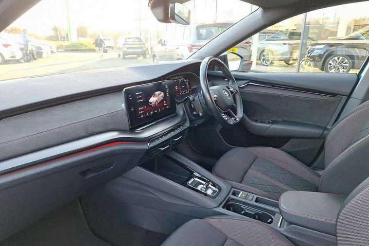 1x USB Type C port in rear view mirror (charging only), 2x USB Type C ports in rear of front centre armrest (charging only), Bluetooth system, Columbus satellite navigation with 10" touchscreen display, Driver fatigue sensor, eCall emergency system, Front and rear parking sensors with manoeuvre assist, Front assist system, Progressive dynamic steering, Speed limiter, Turn Assist, Virtual Cockpit - 10.25" digital display, Virtual pedal with electrically operated boot door (Rear LED lights (high functionality), dynamic indicators, Voice control system, Wireless SmartLink for Apple Car Play, Front and rear stabilizers, 2x USB Type C ports (for charging and data transfer), 8 Speakers, DAB Digital radio, Aero front windscreen wipers with intermittent function, Auto dimming rear view mirror, Body colour door handles, Chrome exhaust tailpipes, Door sills with vRS logo, Electric front and rear windows, Exterior gloss black sports styling including front grille, side strip, window surrounds, door mirror and badging, Full LED Matrix headlights with AFS, rear LED lights (high functionality) and dynamic indicators and cornering front fog lights, Headlight washers, Heated rear windscreen, High level third brake light, Ice scraper in fuel cap, LED daytime running lights, Rain and light sensors, Rear fog light on one side, Rear privacy glass, Rear side wing doors, vRS bumpers and lip spoiler, 3 rear headrests, 3 seat bench in 2nd row, 4 foldable roof handles, Aluminium pedals, Black headlining, Black microsuede padded dash panel with red contrast stitching, Chrome inner door handles, Front centre armrest, Front head restraints, Heated front seats, Illuminated glovebox, Leather trimmed gearshift lever, Luggage compartment lighting x1 light, Mechanical rear seat release, Parcel shelf - folding, Single front passenger seat, Sunglasses storage, Textile floor mat set, Three spoke leather sports multifunction steering wheel with paddles, Ticket holder, Umbrella in door panel, Unsplit rear bench seat and split folding backrest, LED interior light pack - Octavia, 3 point front/outer rear seatbelts+pre-tensioners, Alarm with interior monitoring, tilt sensor and back up horn, Automatic door unlocking in case of crash, Automatic fuel cut off in case of crash, Automatic warning lights in case of emergency braking, Curtain airbags and front side airbags, Driver and front passenger airbags, Drivers knee airbag, Electronic parking brake, ESC including ABS, EBV, MSR, ASR, EDS, HBA, DSR, Front and rear disc brakes, Front central airbag, Hill hold control, Hill start assist, ISOFIX on front passenger seat and outer rear seats, Manual rear child locks, Passenger airbag deactivate switch, Pro active services, Red brake calipers, Two tone horn, Tyre pressure monitor, Visual and acoustic seat belt reminder, Warning reflectors in front door, Door locks with immobiliser, Keyless entry and start/stop including rear doors, Remote central locking, Carbon optic decorative inserts, Gloss black air vent surrounds, 19" Altair anthracite alloy wheels,
