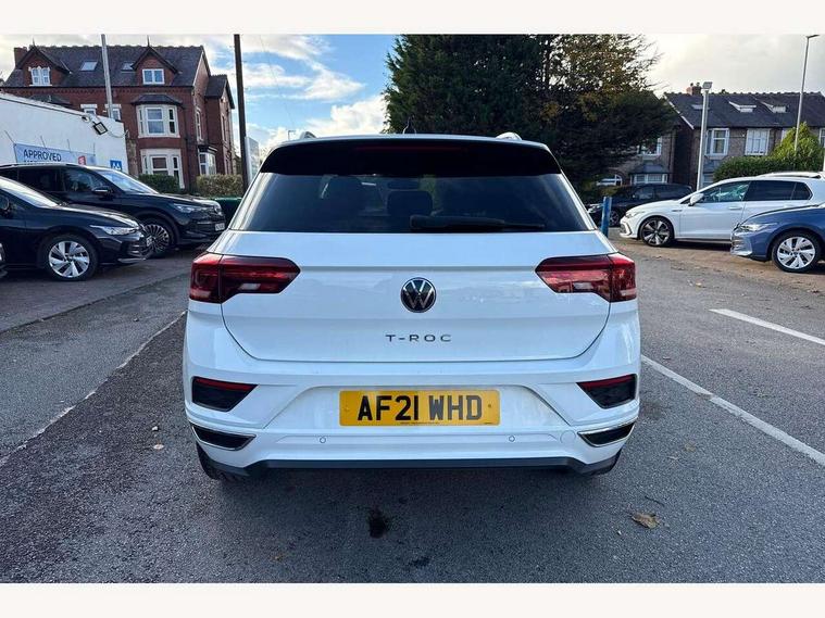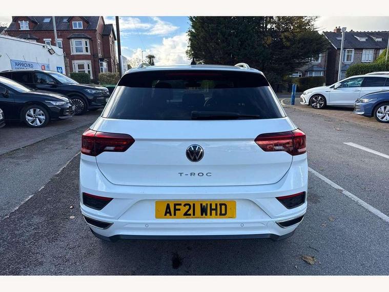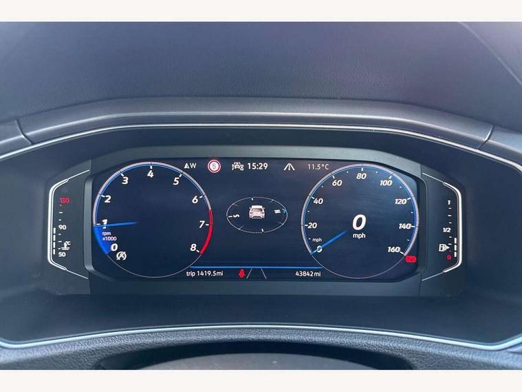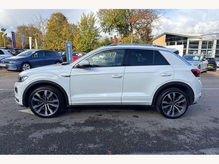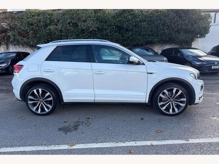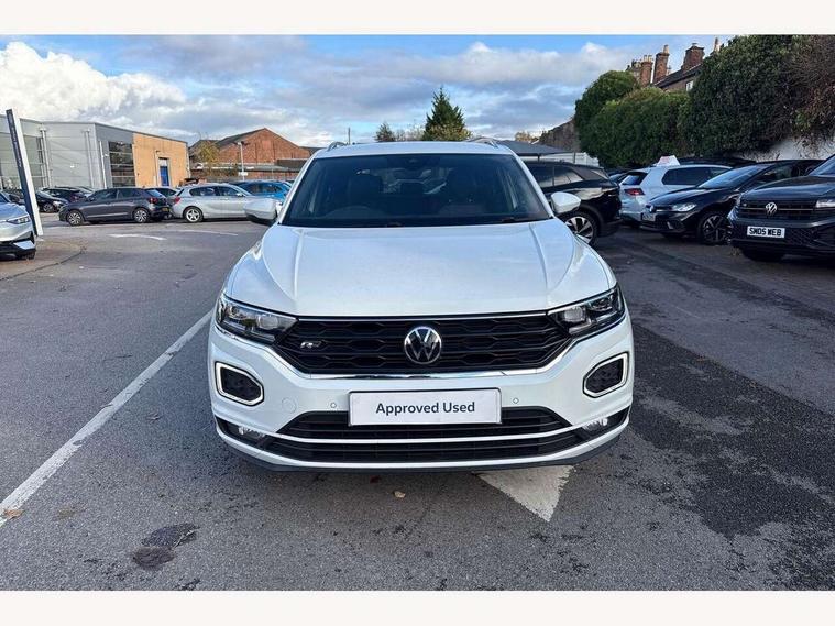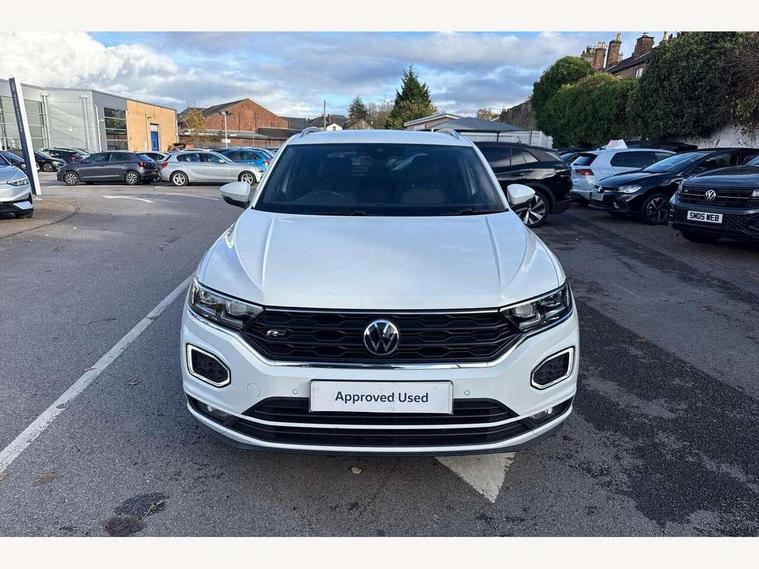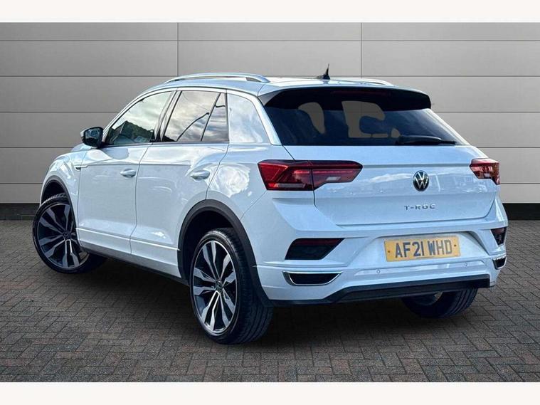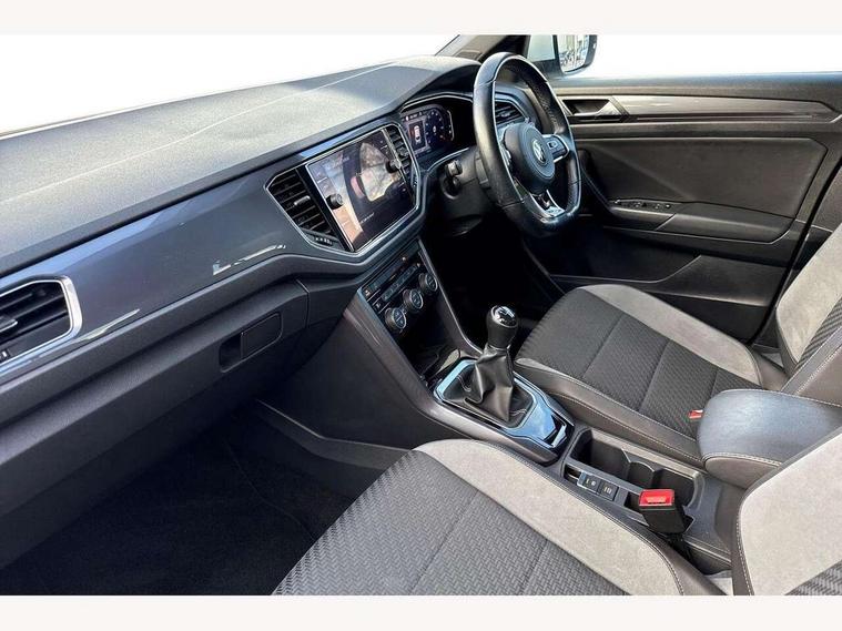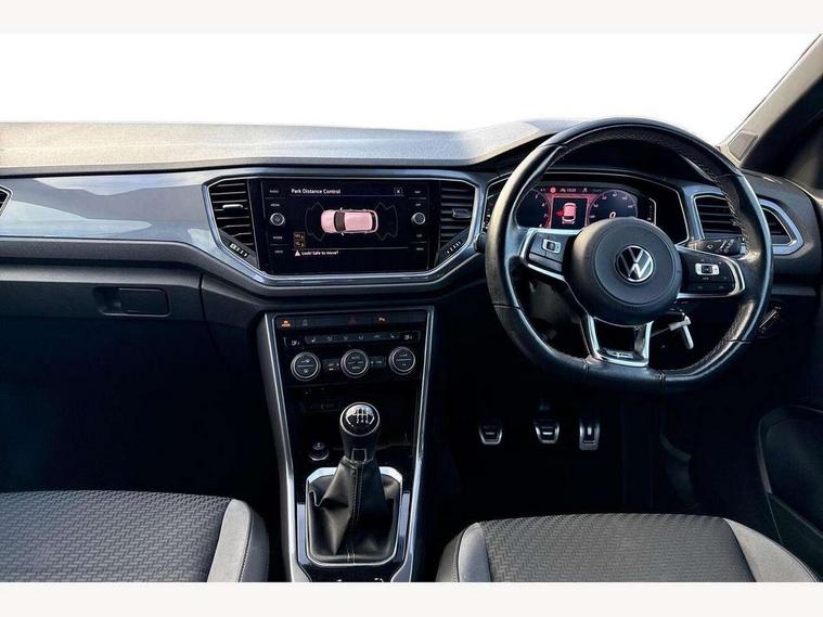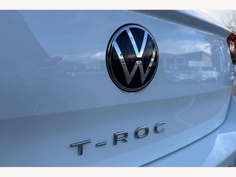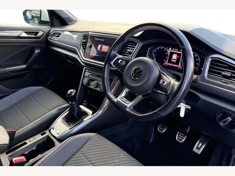 'Lights On' Reminder warning buzzer, Adaptive cruise control with front assist, radar sensor controlled distance monitoring, city emergency braking, Automatic start/stop system, Bluetooth telephone and audio connection for compatible devices, Car information display, Digital Cockpit Pro - Active info display, Discover navigation including 8" touch screen display, streaming and internet, Driver alert system with audible and visual fatigue detection system, Driver tips and journey analysis, Lane assist with warning text instrument cluster, Modified key software - reduce switch off time for key status change to Long no motion, Multifunction computer with visual gear change recommendation for fuel consumption, Service interval indicator, Think blue trainer driver tips and journey analysis, Voice activation, Wireless app connect for apple carPlay, Battery regeneration during braking, Centre arm rest including USB type C interface and USB charging socket, DAB Digital radio, Diversity antenna for FM reception, Front USB type C Interface 2X and USB charging socket, Music playback - MP3, WMA and AAC files, Premium USB cable in choice of either Apple or Android smartphone compatibility, SD card slot, Simultaneous pairing of 2 compatible mobile devices, SMS functionality - read, compose and send SMS messages using touch-screen display, Storage compartment with longitudinal and height adjustable in armrest and two rear air vents, Three route options - Fast, Short, Eco, Title and cover art display, Auto dimming interior rear view mirror, Automatic hazard lights activation under emergency braking, Black grained lower door protectors, Body colour door handles, Body colour rear roof spoiler, Chrome effect left and right trapezoid exhaust tailpipe fascia surround, Chrome trim on upper and lower radiator grille, Dusk sensor, Electrically foldable, adjustable and heated door mirrors with puddle lights and reverse activated kerb-view adjustment on passenger's door mirror, Front and rear electric windows, Front fog lights with static cornering function, Front windscreen wiper with intermittent wipe and 4 position delay, Fully galvanised body, Heated rear window, High level 3rd brake light, LED darkened rear light clusters, LED dipped and main beam headlights with automatic range adjustment including signature LED daytime running lights, LED rear number plate lights, Manual coming/automatic leaving home lighting function, Rain sensor, Rear tinted glass from B-pillar backwards approx 65% tinted, Rear wash/wipe with intermittent wipe setting, Volkswagen roundel, 2 Front and rear reading lights incorporating LED technology, 3 rear head restraints, 4 load lashing points in luggage compartment, Aluminium pedals, Ambient lighting in front footwell and light strips below trim in front doors, Black roof lining and sun visors, Branded points of interest, Carbon flag cloth upholstery, Climate control - 2 zone electronic air conditioning with automatic air recirculation and allergy filter, Drawer under drivers seat, Front + rear carpet mats, Front cupholders x 2, Front seat back storage pockets, Front sports seats with R-Line logo on seat backrest, Glovebox, Height adjustable front seats, Height/reach adjust steering wheel, Illuminated vanity mirrors, Instrument lighting, white adjustable panel illumination, Interior light delay, Isofix easy fit child seat preparation for 2 outer rear seats, Load through provision with single cup holder when folded down, Luggage compartment cover, removable, Luggage compartment lighting, R Line badge, Split folding rear seat backrests with centre armrest, Storage compartment in left and right luggage area, Storage compartment in rear doors, Storage compartments in driver and front passenger doors, Three spoke multi-function leather trimmed steering wheel and gearknob, Unique R Line door sill protectors, R line styling pack - T-Roc, Winter pack - T-Roc, 3 rear three point seatbelts, ABS, Curtain airbags, Driver and front passenger safety-optimised head restraints, Drivers and front passengers airbags with passengers deactivation switch, Drivers seatbelt reminder, Electronic parking brake with auto hold, Electronic stability control (ESC) includes ASR, EDL, EDTC and trailer stabilisation function, Front seat side impact airbags, Predictive pedestrian protection, Rigid safety cell with front and rear crumple zones, Three point height adjust front seatbelts + pretensioners, Tyre pressure loss indicator, Ventilated front and rear disc brakes, Volkswagen roadside assistance, Alarm with remote central locking and interior protection, Electronic engine immobiliser, Remote central locking with 2 remote folding keys, Shadow grey decorative inserts in dash and door panel, 19" Suzuka alloy wheels with low rolling resistance tyres and anti wheel bolts,