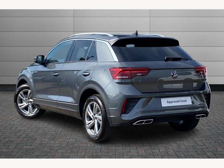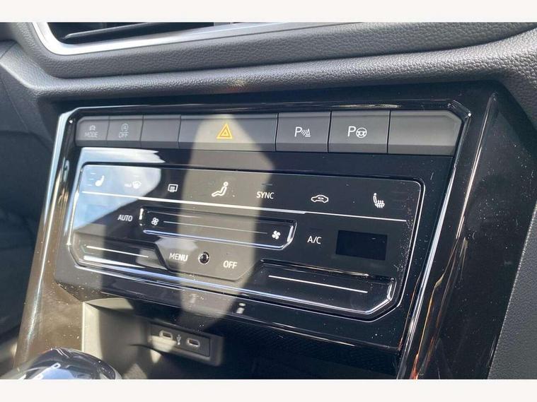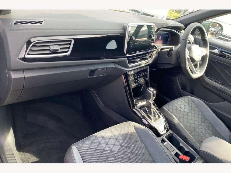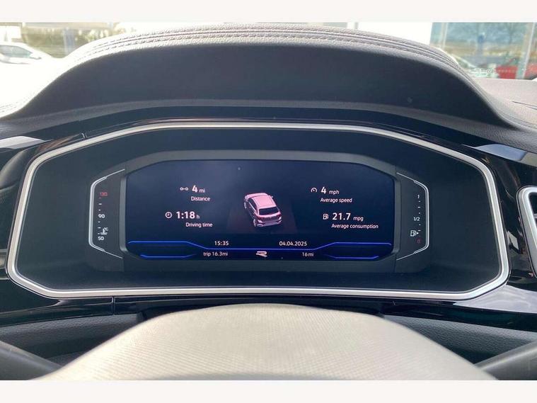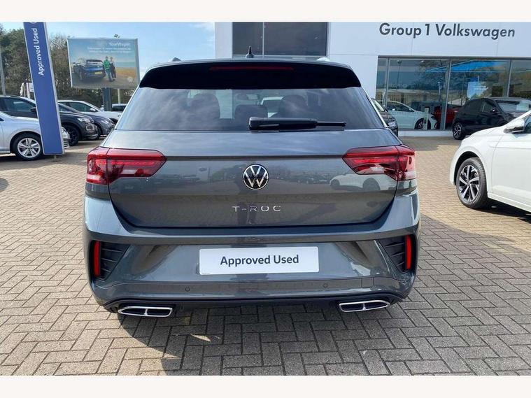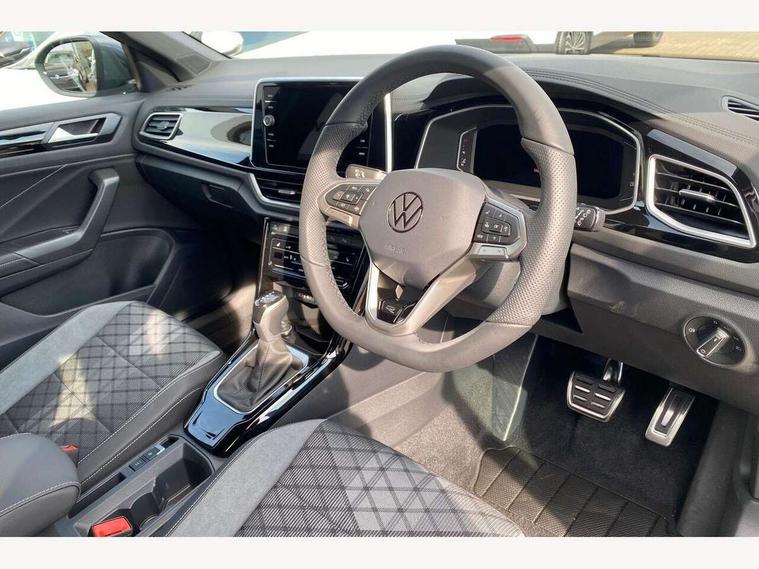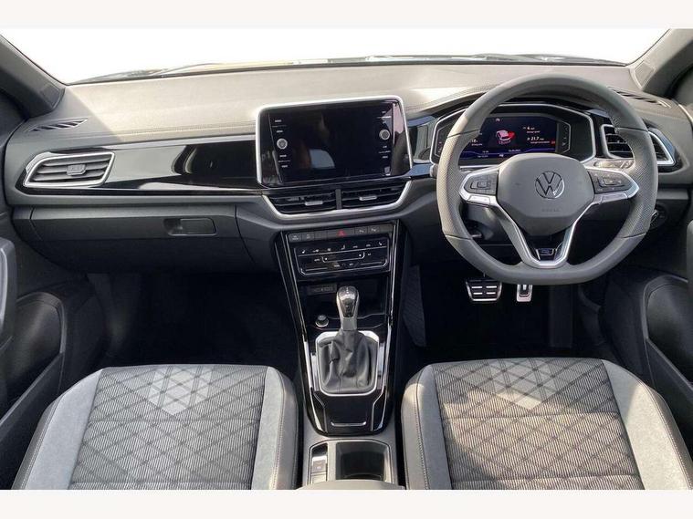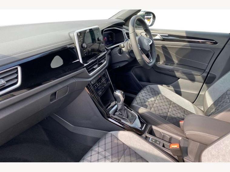 10.25" Digital cockpit pro, Advanced driver attention and drowsiness monitor, Emergency call service, Lane keeping system Lane Assist, Mobile phone interface, Modified key software - reduce switch off time for key status change to Long no motion, Online services, Park assist including front and rear parking sensors, Service interval indicator, Tailgate/trunk lid release from outside, Think blue trainer driver tips and journey analysis, Warning sound and light for front seatbelts unfastened, Wireless app connect, Battery regeneration during braking, Start/stop function with battery regeneration, DAB Digital radio, Diversity antenna for FM reception, Front and rear 6 speakers, Music playback - MP3, WMA and AAC files, Premium USB cable in choice of either Apple or Android smartphone compatibility, SD card slot, Simultaneous pairing of 2 compatible mobile devices, Title and cover art display, We Connect and We Connect Plus functionality, Auto dimming interior rear view mirror, Automatic hazard lights activation under emergency braking, Automatic headlight control with LED separate daytime running lights with coming/leaving home function, Body coloured exterior mirror housings and door handles, Electrically adjustable and heated door mirrors, Extended roof spoiler, Exterior mirrors aspherical on driver side, convex on front passenger side, External USB type C socket and charging sockets, Front windscreen wiper with intermittent wipe and 4 position delay, Heated rear window, LED 3rd brake light, LED rear combination lamps, LED rear number plate lights, Power windows with comfort operation and circuit breaker, Privacy glass for rear side windows and rear window, R-Line design body coloured bumpers, Rain sensor, Rear exhaust tailpipe, Rear fog light on one side and reversing lights on both sides, Rear side wing doors, Rear wash/wipe with intermittent wipe setting, Remote electrically foldable door mirrors, puddle lights and reverse activated passenger's door mirror, 12V power socket in centre console, 3 rear head restraints, 3 seat bench in 2nd row, 4 load lashing points in luggage compartment, Air care climatronic air conditoning system with active combination filter and 2-zone temperature control, Black roof lining, Chrome plated decorative trims, Chrome plated radiator grille inserts, air vent surrounds and light switch surrounds, Door and side trim panel with leatherette insert, Front + rear carpet mats, Front centre armrest, Front cupholders x 2, Front footwell illumination, Front reading light, Front scuff plates with R Line logo, Front seat back storage pockets, Glove compartment door with light, Instrument lighting, white adjustable panel illumination, Interior ambient lighting and surround lighting, Interior light delay, Isofix child seat preparation, Leather gearshift handle, Load-through provision with cup holder when folded down ('Unsplit rear seat bench, split folding backrest, with centre armrest), Luggage compartment lighting, Single front passenger seat, Stainless steel pedals, Storage compartment in left and right luggage area, Storage compartment in rear doors, Storage compartments in driver and front passenger doors, Sunvisors with illuminated vanity mirrors, Variable boot floor, height adjustable and removable, Driver assistance pack without proactive passenger protection - T-Roc, 3 point height adj front seatbelts + pretensioners, 3 point seatbelts in outer rear with ECE label, ABS, Child locks on rear doors, City emergency braking and pedestrian monitoring, Driver and front passenger airbag with front passenger airbag deactivation, Driver and front passenger safety-optimised head restraints, Drivers seatbelt reminder, Electronic parking brake, Electronic Stability Control (ESC) inc EDL (Electronic Differential Lock) and ASR (Traction Control), Front and rear passengers curtain airbag system including front side airbags, Hill start assist, Predictive pedestrian protection, Rear disc brakes, Two tone horn, Tyre pressure loss indicator, Volkswagen roadside assistance, Piano black decorative inserts in dashboard and front door trim panels, Trims for alloy wheels,