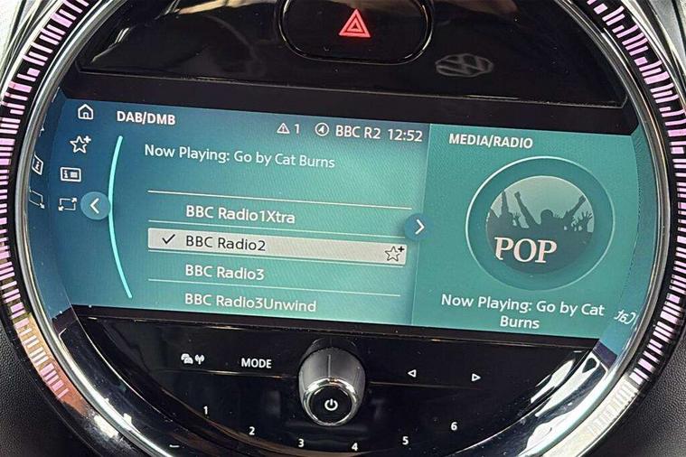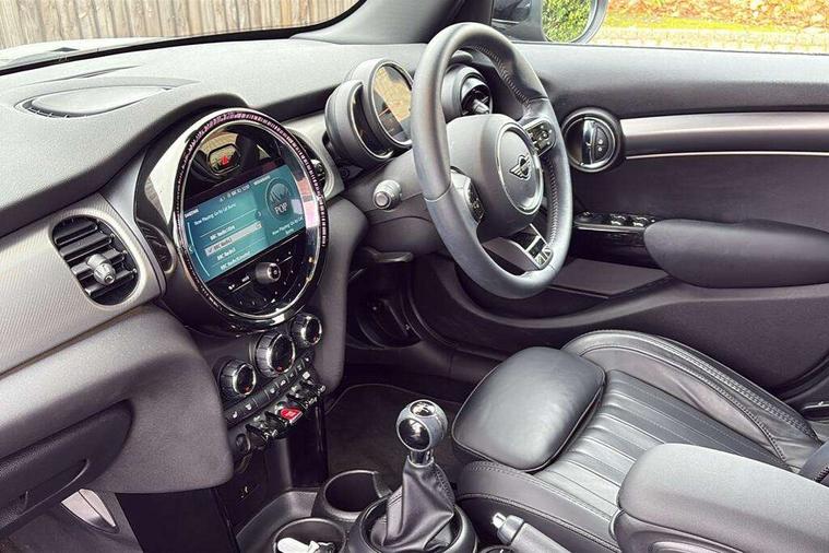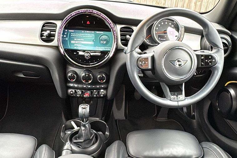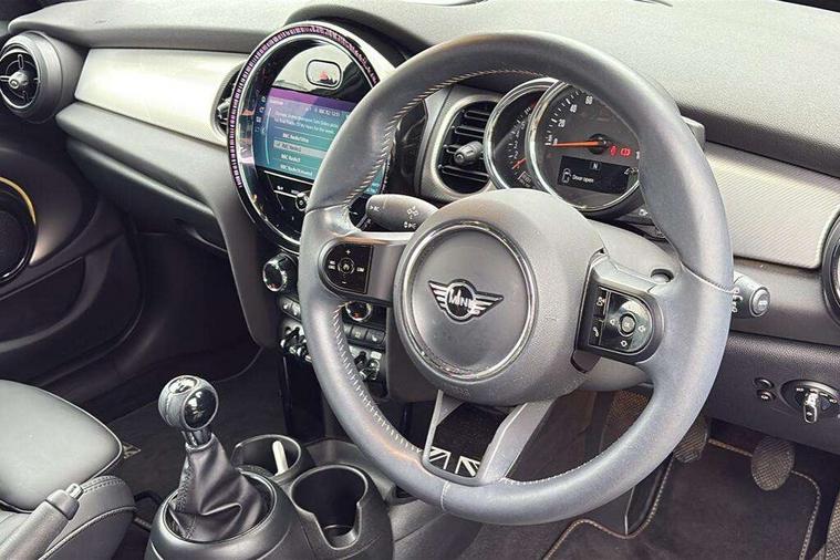 Apple CarPlay, Automatic start/stop function with brake energy recuperation, Compatible mobile phone bluetooth with audio streaming, Cruise control with brake assist, Electro-mechanical speed dependant steering assistance, Flexible car sharing preparation, Instrument cluster, MINI Driving Modes - centre toggle switch to control driving setting (sport, mid and green), Mini E-call, MINI TeleServices, On board computer, Rear park distance control, Service interval indicator, 6 Speed manual transmission including gear change indicator display, Double Vanos system, Fully variable valve control, High precision injection, Performance Control, 8.8" touchscreen with LED ring, FM tuner and DAB digital radio, 3rd brake light, Automatic headlight activation switch, Body colour fuel filler cap, Chrome line exterior - radiator grille bars, tailgate handle, lower front grille grating and rear central fog-light, Dynamic brake lights, Electric front+rear windows, Heated rear window, Heated windscreen washer jets, LED headlight with closed ring and daytime driving lights, Metal door sill strips with MINI imprint, Model logo Cooper on right of tailgate, Rain sensor window wipers, Rear fog lights, Rear LED lights with union jack design, Rear side wing doors, Rear window wiper, Side scuttle panel with integrated indicator, Sun/heat protection glass, White indicator lenses, 12V Accessory socket in centre console, 3 seat bench in 2nd row, 4 lashing eyes in luggage compartment, 60/40 split folding rear seat, Anthracite headliner including grab handles and clothes hooks, Carbon black colour line - Knee roll and door armrest, Chrome interior highlights, Chrome line interior - air vents, gear lever base, door handles and speakers in doors, Cupholders, Front and rear head restraints, Front and rear isofix with front passenger airbag deactivation, Front and rear velour floor mats, Glove compartment, Height and length steering column adjustment, Interior lighting with 12 different colours across the dashboard, underneath door bezel with illuminated laser-engraved design on central display, Leatherette gearshift lever and handbrake gaiters, LED reading lights, vanity mirror lights, front foot well light and spotlight on front seats, Manual air conditioning, Mechanical seat adjustment - forward/back & backrest for front seats and driver seat height adjust, MINI yours badge on exterior pillar, Multifunction steering wheel, Single front passenger seat, Storage compartments in doors, Sunvisors with vanity mirrors, Walknappa leather steering wheel with grey seam and MINI Yours badge on Piano Black lower steering wheel spoke, 3 point seatbelts on all five seats, 6 Airbags - front, side, head and seat belt tensioners, Anti-lock braking system (ABS), Child locks on rear doors, DSC - Dynamic Stability Control, Front and rear disc brakes, Hill start assist, Single tone fanfare horn, Tyre pressure monitoring system, Alarm system with tilt sensor, monitoring doors, bonnet interior and tailgate, Electronic vehicle immobiliser, Start/stop toggle with keyless go, Tool kit,