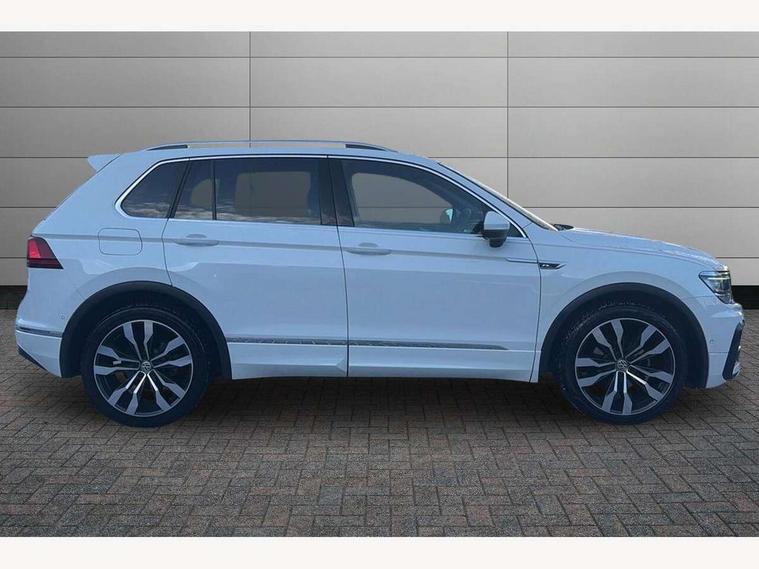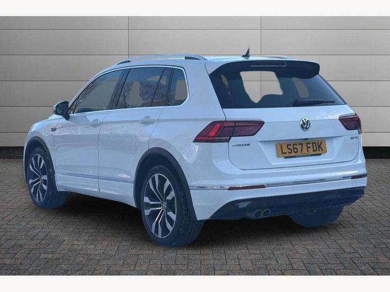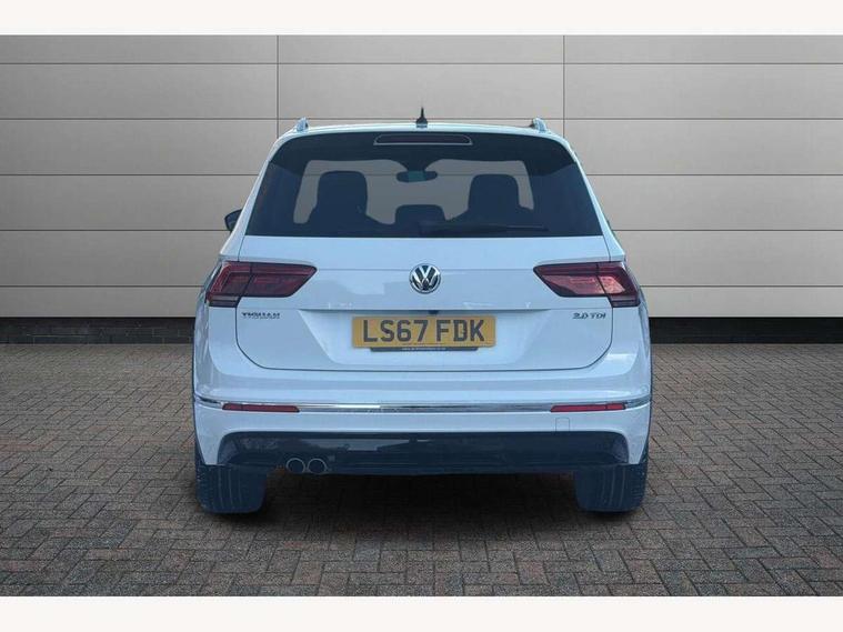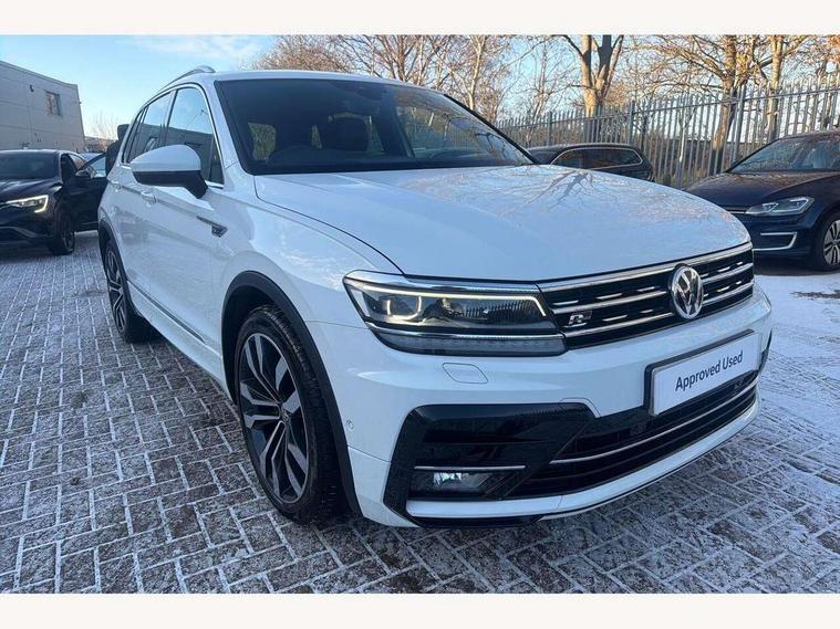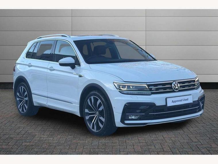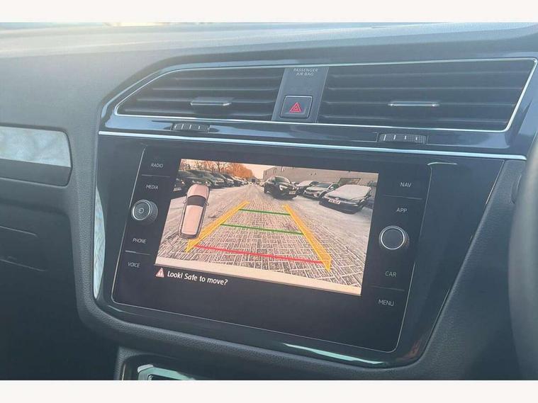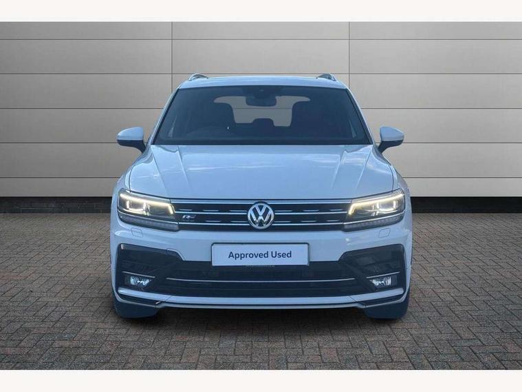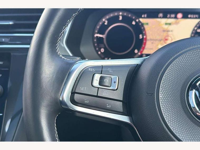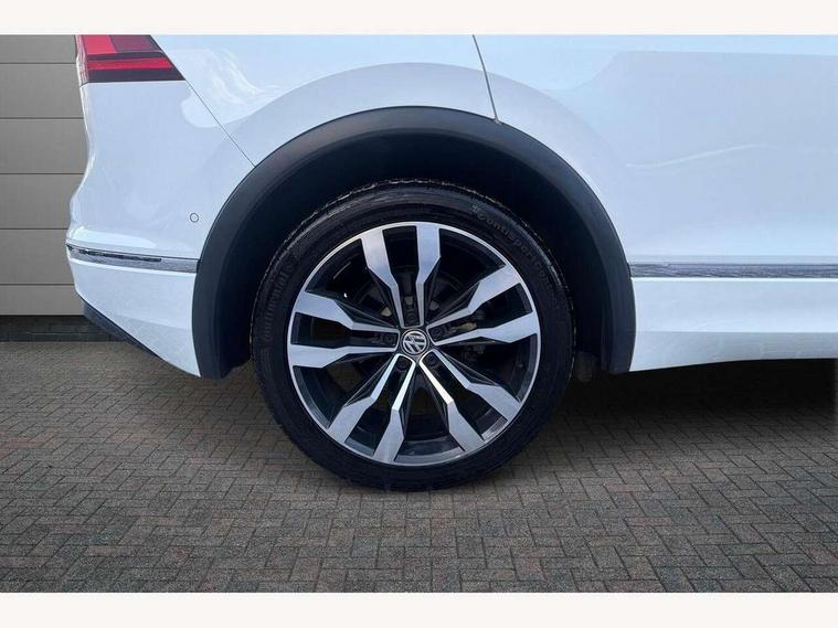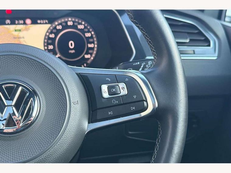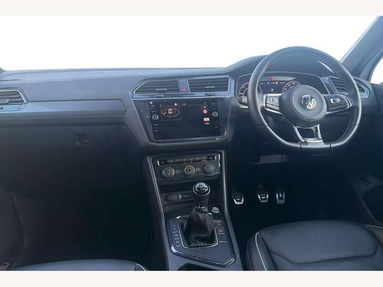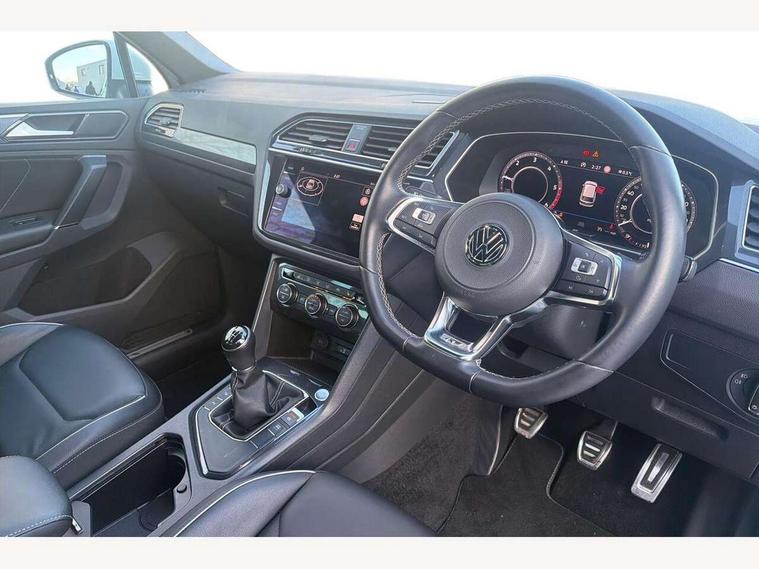 Active information display, Adaptive cruise control, App-Connect, Bluetooth phone integration system, Instrument cluster, Lane assist, Low washer fluid warning light, Outside temperature display, Service interval indicator, Speed limiter, Warning lights, Diesel particulate filter, Sports suspension, XDS electronic differential lock, Aux-in socket, DAB Digital radio, SD card slot, USB connection, Auto dimming interior mirror, Automatic activation of hazard warning lights, Black roof rails, Body colour door handles, Body colour door mirrors, Body colour rear spoiler, Body coloured bumpers, Chrome side window surrounds, Chrome trimmed radiator grille, Coming/leaving home lighting function, Dual chrome exhaust, Dusk sensor + auto driving lights, Electric folding door mirrors, Electric heated + adjustable door mirrors, Electric panoramic sunroof with sunblind, Front and rear electric windows, Heated rear window, LED headlights with dynamic light assist daytime running lights and cornering front fog lights, LED rear lights, Piano black rear diffuser, R Line body kit, Rain sensor windscreen wipers, Rear windscreen washer and wiper with interval delay, Silver under body guard, Tinted windows (B pillar backwards), Twin trapezoid chrome exhaust pipes, 12V Accessory socket in centre console, 3 rear headrests, 3 zone climate control, 4 load lashing points, 40:20:40 split folding rear seats, Bag hook in luggage compartment, Black headlining, Driver + front passenger lumbar support, Foldable passenger seatback, Front + rear carpet mats, Front centre armrest with 12v socket, Front centre armrest with storage + rear 2 air vents + cupholders, Front seatback folding tables, Height/reach adjust steering wheel, Illuminated driver/passenger vanity mirrors, Illuminated scuff plates, Interior light with delay, Isofix Preparation 2 Rear child seats, Leather gear knob, Lockable cooled glovebox, Luggage compartment lighting, Luggage compartment side storage, Map pockets on front seats, Passenger seat height adjuster, Rear cupholders, Removable luggage cover, Sliding/reclining rear seats, Stainless steel pedals, Storage compartment in driver's door, Storage compartment in passenger's door, Storage tray on dashboard, Sunglasses storage, Variable boot floor, Ambient lighting pack - Tiguan, 3 rear 3 point seatbelts, ABS+EBD+Brake assist, Active bonnet, Active pedestrian safety system, Curtain airbags, Driver/Front Passenger airbags, Driver/Passenger whiplash optimised head restraints, Drivers knee airbag, Electronic parking brake with auto hold, ESP with EDL + ASR, First aid kit, Front assist including city emergency braking, Front side airbags, Head airbag system, Height adjustable front 3 point seatbelts + pretensioners, Hill hold control, Passenger airbag deactivate switch, Passenger knee airbag, Pre crash system, Rear side airbags, Seatbelt warning lamp and buzzer, Two tone horn, Warning triangle, Alarm with interior protection, Electronic engine immobiliser, Remote central locking with 2 remote folding keys, Chrome door trim inserts, Piano black interior trim, 20" Suzuka alloy wheels + anti theft wheel bolts, Steel space saver spare wheel,