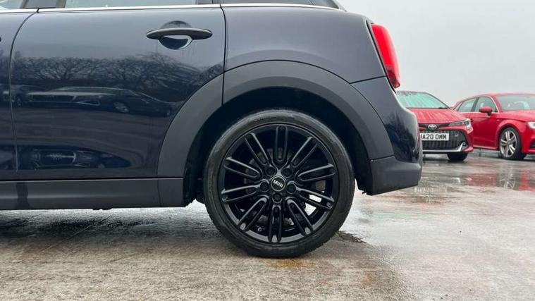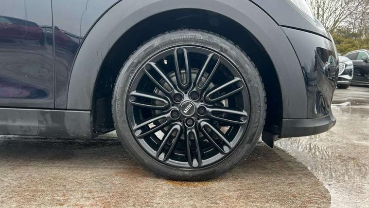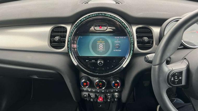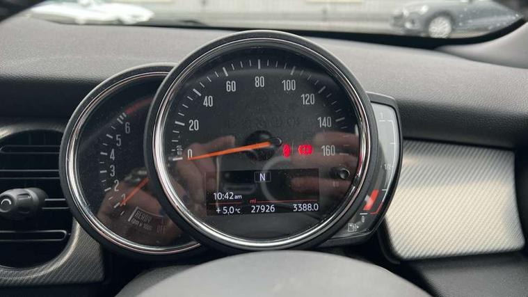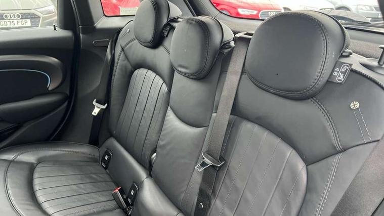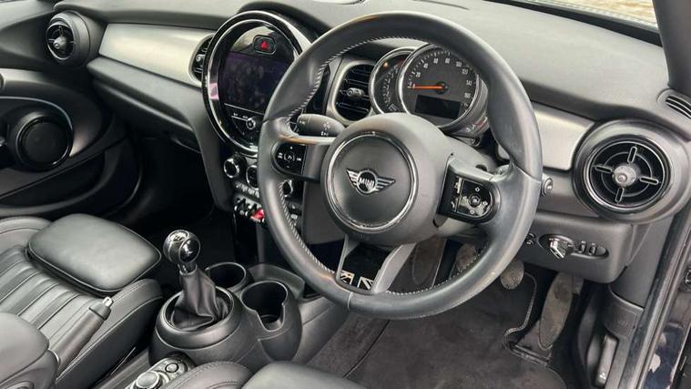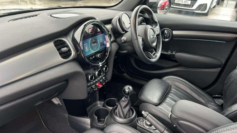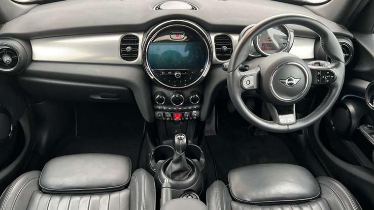 Apple CarPlay, Automatic start/stop function with brake energy recuperation, Compatible mobile phone bluetooth with audio streaming, Cruise control with brake assist, Electro-mechanical speed dependant steering assistance, Flexible car sharing preparation, Instrument cluster, MINI Driving Modes - centre toggle switch to control driving setting (sport, mid and green), Mini E-call, MINI TeleServices, On board computer, Rear park distance control, Service interval indicator, 6 Speed manual transmission including gear change indicator display, Double Vanos system, Fully variable valve control, High precision injection, Performance Control, 8.8" touchscreen with LED ring, FM tuner and DAB digital radio, 3rd brake light, Automatic headlight activation switch, Body colour fuel filler cap, Chrome line exterior - radiator grille bars, tailgate handle, lower front grille grating and rear central fog-light, Dynamic brake lights, Electric front+rear windows, Heated rear window, Heated windscreen washer jets, LED headlight with closed ring and daytime driving lights, Metal door sill strips with MINI imprint, Model logo Cooper on right of tailgate, Rain sensor window wipers, Rear fog lights, Rear LED lights with union jack design, Rear side wing doors, Rear window wiper, Side scuttle panel with integrated indicator, Sun/heat protection glass, White indicator lenses, 12V Accessory socket in centre console, 3 seat bench in 2nd row, 4 lashing eyes in luggage compartment, 60/40 split folding rear seat, Anthracite headliner including grab handles and clothes hooks, Carbon black colour line - Knee roll and door armrest, Chrome interior highlights, Chrome line interior - air vents, gear lever base, door handles and speakers in doors, Cupholders, Front and rear head restraints, Front and rear isofix with front passenger airbag deactivation, Front and rear velour floor mats, Glove compartment, Height and length steering column adjustment, Interior lighting with 12 different colours across the dashboard, underneath door bezel with illuminated laser-engraved design on central display, Leatherette gearshift lever and handbrake gaiters, LED reading lights, vanity mirror lights, front foot well light and spotlight on front seats, Manual air conditioning, Mechanical seat adjustment - forward/back & backrest for front seats and driver seat height adjust, MINI yours badge on exterior pillar, Multifunction steering wheel, Single front passenger seat, Storage compartments in doors, Sunvisors with vanity mirrors, Walknappa leather steering wheel with grey seam and MINI Yours badge on Piano Black lower steering wheel spoke, 3 point seatbelts on all five seats, 6 Airbags - front, side, head and seat belt tensioners, Anti-lock braking system (ABS), Child locks on rear doors, DSC - Dynamic Stability Control, Front and rear disc brakes, Hill start assist, Single tone fanfare horn, Tyre pressure monitoring system, Alarm system with tilt sensor, monitoring doors, bonnet interior and tailgate, Electronic vehicle immobiliser, Start/stop toggle with keyless go, Tool kit,