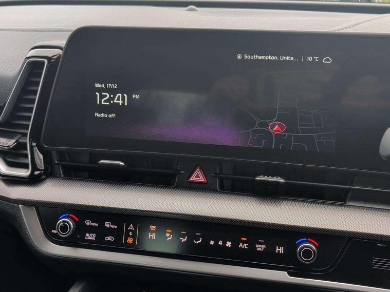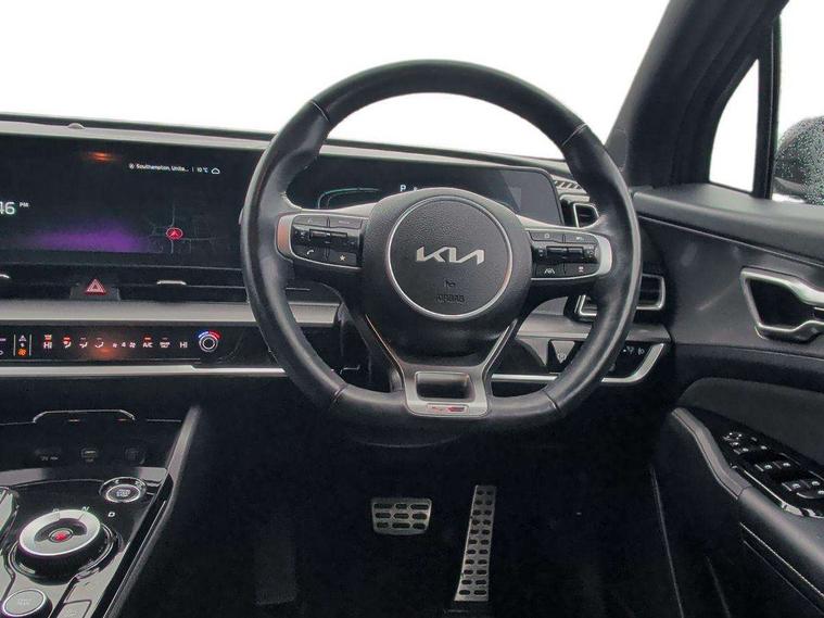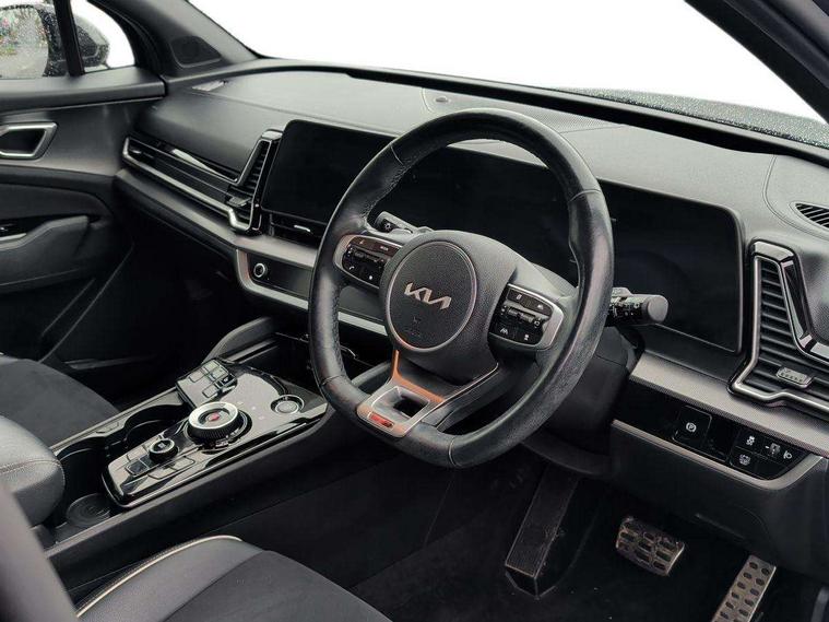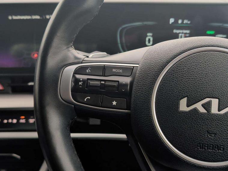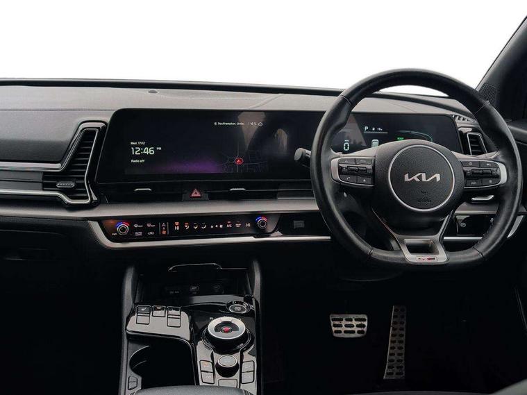 12.3" Display with navigation, 4.2" supervision colour cluster display, Apple car play/Android Auto with voice control, Drive mode selector, E-call, Forward collision avoidance assist (FCA) - city/pedestrian/cyclist/junction covering, Front and rear parking sensors, Highway Driving Assist (HDA), Intelligent speed limit assist, Kia Connect (UVO), Lane Following Assist (LFA), Lane keep assist, Low washer fluid warning, Rear view monitor, Reversing camera system integrated into centre fascia screen, Smart cruise control with stop and go functionality, Speed sensitive power steering, Trip computer, Windscreen washer level indicator, Intelligent Stop and Go, 6 speaker audio system, Bluetooth audio streaming, DAB Radio with MP3, Rear USB port, Steering wheel mounted audio controls, USB C type charging ports on centre console, USB C type charging ports on side of front seats, USB port for connection of a media device, All round electric windows with drivers and front passenger auto up/down function, Automatic headlight control system, Automatic window defogger, Backlite glass heated with timer, Body colour and black bumper with silver accents, Body colour exterior door handles, Body colour radiator upper garnish and door garnish, Electrically adjustable/heated/folding door mirrors with LED indicators, Front and rear chrome skid plates, Gloss black door mirrors, Gloss black radiator grille, Gloss black side sill and wheel arch body mouldings, Glossy black roof rack, High beam assist, Interior electrochromic mirror, LED daytime running lights, LED front fog lamps, LED headlamps (low and high beam - MFR type), LED High mounted stop light, LED rear combination lamp, Rain sensing wipers with aero blades, Rear fog lamp, Rear privacy glass, Rear side wing doors, Rear spoiler, Rear wiper, Satin finished beltline, Silver coloured inserts to bumpers, Tinted rear glass, Trailer stability assist, 12V power socket in front centre fascia and luggage compartment, 2nd row personal lamps, 3 seat bench in 2nd row, 3 x passenger assist grips, 40/20/40 split folding rear seat, All-round height adjustable headrests, Black headlining, Centre console storage box, Cupholders in rear armrest, D-Shaped sports leather steering wheel and perforated inserts with GT-Line logo, Door courtesy lamps, Drink holder at centre armrest, Driver and front passenger side sunvisors with illuminated vanity mirrors, Driver's seat manual height adjust, Drivers seat power lumbar support, Front and rear door storage, Front seat and rear pockets, Front/rear centre armrests, Gear shift indicator, Glovebox illumination, Heated front seats, Heated steering wheel, Interior door lock/unlock function, ISOFIX Child seat top tethers and anchor fixings outer rear seats, Luggage area light, Luggage area load cover, Luggage net with hooks, Metal paint interior door handles, Overhead console lamp, Paddle shift controls, Rear cabin light, Rear coat hooks, Single front passenger seat, Sports pedals, Suede leather upholstery, Three zone climate control, Tilt/telescopic adjustable steering wheel, Ventilation ducts to rear compartment, Active front headrests, All round 3-point seatbelts, Anti-lock braking system (ABS), Dual front side airbags, Dual horn, Electronic parking brake, Electronic stability control with downhill brake control, Front passenger airbag cut-off switch, Front seatbelt pretensioners + load limiters, Height adjustable front seatbelts, Hill start assist control (HAC), Impact sensing auto door unlocking, Multi collision brake assist, Rear door child safety locks, Rear seat alert system, Traction control, Twin curtain airbags, Twin front airbags, Tyre pressure monitoring system, Advanced anti-theft system including immobiliser and alarm, Door deadlocks, Engine Start/Stop Button with Smart Entry System, Locking wheel nuts, Speed sensitive auto door locking, Visible vehicle identification number, Aluminium pattern finish centre fascia and door garnish, 18" GT-Line alloy wheels, Tyre mobility kit,