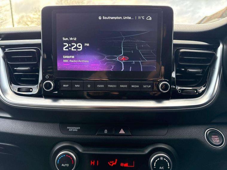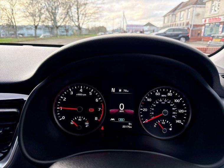 4.2" supervision colour cluster display, 8" touchscreen navigation, Apple car play/Android Auto with voice control, Cruise control + speed limiter, Drive mode selector, Electric power steering, Emergency call service, Emergency stop signalling system, External temperature display, Forward Collision-Avoidance Assist (FCA) - City/Pedestrian/Cyclist, Kia connected services featuring TomTom live, Lane keeping assist system (LKAS), Driver attention warning (DAW) and High beam assist (HBA), Rear parking sensor, Reversing camera system, Trip computer, UVO connect, Intelligent Stop and Go, Audio system with 6 speakers, Bluetooth with music streaming, Front USB port, Rear USB port, Steering wheel mounted controls, Aero blade type windshield wipers, All round electric windows with drivers auto up/down function, Auto dimming rear view mirror, Auto headlights, Automatic defog system, Automatic headlights control, Bi-function projection headlights with static bending, Black side sill, door garnish and wheel arch trims, Black/body colour bumpers, Body coloured exterior door handles, Chrome side window trim, Electrically adjustable/heated/folding door mirrors with LED indicators, Front and rear silver skid plates, Front fog lights, Halogen headlights, Headlight levelling device, Heated rear window, High gloss black and satin radiator grille, LED daytime running lights, LED position light, LED rear combination lights, Privacy glass - Rear windows and tailgate, Rain sensing front wipers, Rear fog lights, Rear side wing doors, Rear wash/wipe, Roof coloured door mirrors with matt black lower housing, Roof coloured rear spoiler with high mounted braking light, Roof rails, Shark fin antenna, Speed variable front wipers, Tinted glass, Two tone paint, Welcome and follow-me home light functionality, Windscreen Washer Level Warning, 12V power point front, 3 seat bench in 2nd row, 60/40 split folding rear seat, Air filter, All-round height adjustable headrests, Automatic air conditioning, Centre armrest storage box, Centre console with cupholders, Cloth/faux leather upholstery with grey accents, D-Cut perforated leather trimmed steering wheel, Dash illumination dimmer switch, Driver's seat height adjuster, Dual Height Luggage Area Floor, Front and centre cabin lights, Front and rear door map pockets with bottle holder, Gear shift indicator, Glovebox illumination, ISOFIX Child seat top tethers and anchor fixings outer rear seats, Leather trimmed gearshift, Luggage area light, Luggage area parcel shelf, Luggage net with hooks, Overhead console lamp, Overhead console with sunglasses cases, Passenger front seatback pockets, Satin chrome interior door handles, Single front passenger seat, Sunvisors with vanity mirror illumination (Driver and front passenger), Tilt/telescopic adjustable steering wheel, ABS with Electronic Brakeforce Distribution (EBD) and Brake Assist System (BAS), All round 3-point seatbelts, Electronic stability control (ESC) and vehicle stability management (VSM), Front passenger airbag cut-off switch, Front seatbelt pretensioners + load limiters, Height adjustable front seatbelts, Hill start assist control (HAC), Impact sensing auto door unlocking, Manual child lock in rear doors, Rear seat Occupancy alert, Seatbelt reminder warning, Twin curtain airbags, Twin front airbags, Twin front side airbags, Tyre pressure monitoring system, Alarm system, Door deadlocks, Engine immobiliser, Locking wheel nuts, Smart key with engine start/stop button, Speed sensitive auto door locking, Visible vehicle identification number, High gloss black centre fascia, 17" Alloy wheels, Tyre mobility kit,