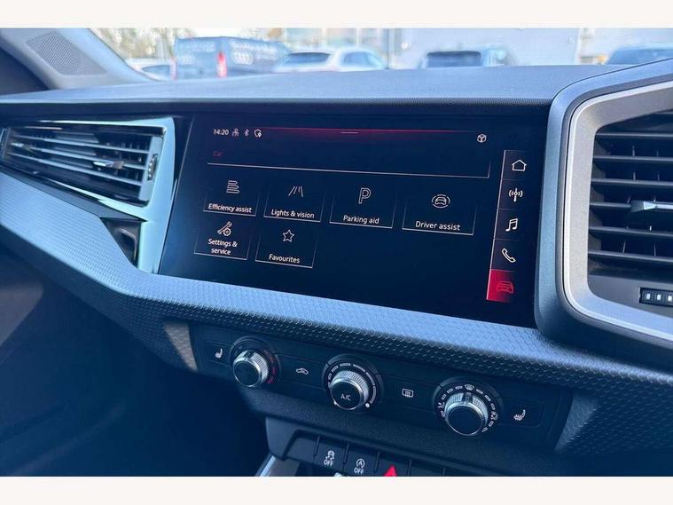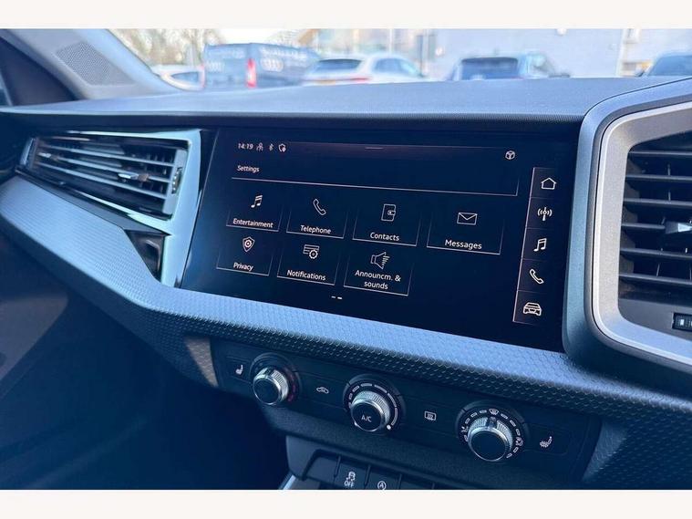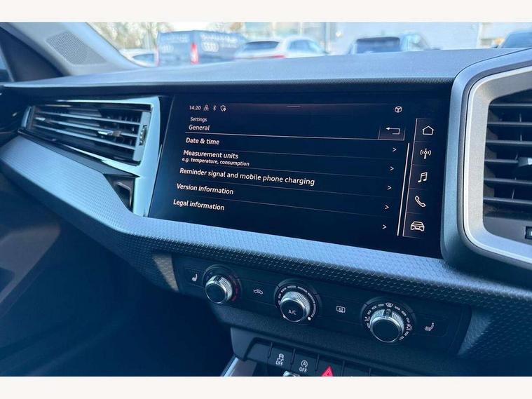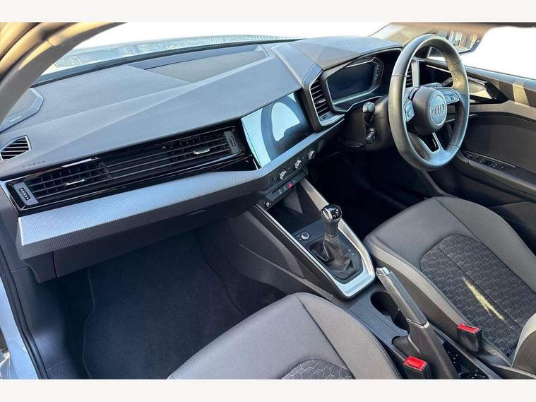 10.25" Digital instrument cluster display classis style instrument dials + speed, odometer, time, outside temperature, telephone menu + fuel level warning, Audi smartphone interface with connect compatible smartphone via USB directly MMI display + Nav, music, third party apps controlled via MMI controller, Automatic start/stop system, Bluetooth interface, Cruise control, Driver's information system, Electromechanical power steering, Emergency e-call, Lane departure warning system, Rear parking sensor, Service interval indicator, Speed limiter, Voice control system, Washer fluid level indicator, Dynamic suspension, 2 x USB type C connection points, 6 passive loudspeakers, DAB Digital radio, MMI radio plus with 10.1" colour MMI display screen and MMI touch, Auto dimming rear view mirror, Body coloured bumpers, Body coloured door mirrors, Electric front and rear windows, Electrically adjustable, heated, folding door mirrors with integrated LED side indicator, Front side air inlets in grained matt black and C frame in anthracite black, Heat insulating glass windscreen and side windows, Heated rear windscreen, High level LED brake light, LED headlights with LED rear lights + dynamic rear indicators + headlight adjustment and high beam, turning light + LED daytime running lights, Radiator grille and rear diffuser in matt anthracite black, Radiator protective grille frame in matt aluminium silver, Rain and light sensors, Rear fog lights, Rear side wing doors, Rear wiper, Side front spoiler lips in grained matt black, 12V socket in centre console with two cup holders, 3 rear seats with headrests, 3 seat bench in 2nd row, 3 spoke leather multifunction plus steering wheel, 40:60 Split folding rear seat or folded fully, Black front and rear floor mats, Door sill trims with aluminium inlay, Driver and passenger seat with manual height adjust with forward and backwards adjustment, Front head restraints, Front passenger seat, Grey cloth headlining, Height and reach adjustable steering wheel, ISOFIX child seat mounting for front passenger and outer rear seats including top tether attachment point of outer rear seats, Leather gear knob with aluminium trim, Leather handbrake grip, Luggage compartment light with front and rear reading lights, Manual air conditioning, Manually adjustable lumbar support in front seats, Novum cloth upholstery with front sport seats, Luggage compartment pack - A1, 3x3 point rear seatbelts, Audi pre-sense front with pedestrain and cyclist recognition, Brake assist function, Driver and front passenger airbag with front side and head airbags, Electronic Stability Control including ABS, EBD, ASR and EDL, Front passenger airbag deactivation switch, Hill hold assist, Manual rear child locks, Seatbelt height adjustment for front seats, Seatbelt monitoring, Tyre pressure warning light, Warning triangle and first aid kit, Anti theft alarm, Anti theft wheel bolts and loose wheel warning, Immobiliser, Remote central locking with 2 foldaway keys, Aluminium trim for control switches, air vents and digital instrument cluster, Black dashboard, Silver grey accent areas including air vents, door handle recesses and centre console in diamond paint finish, Slate grey inlays polygon structure in fine paint finish,