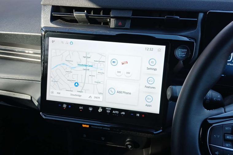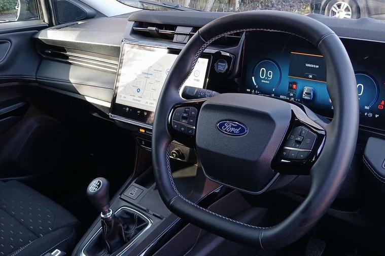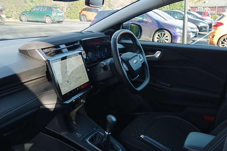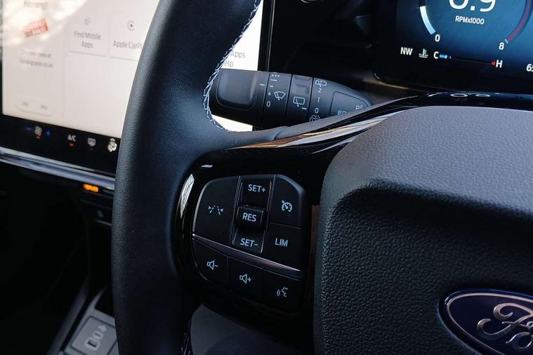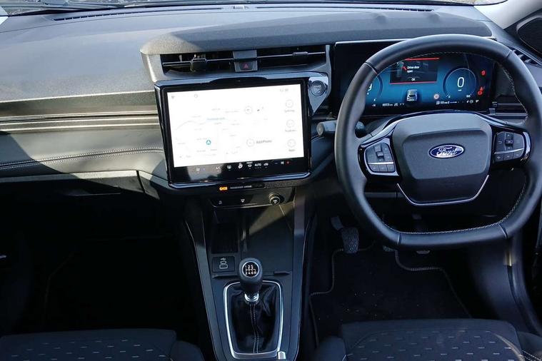 Driver impairment monitor, Emergency call service, Ford easy fuel, Full digital 12.8" instrument cluster, Lane keeping aid with lane departure warning, Power assist steering, Selectable drive modes(Normal, Eco, Sport, Slippery and Trail), Speed sign recognition, Standard suspension, 12" landscape touchscreen display with wireless apple car play and android auto 6 speaker audio system, Ford pass connect and emergency assistance, Ford SYNC4 with connected navigation, Automatic headlights with rain sensing wipers and auto high beam, Front fog lamps, LED daytime running lights, LED rear lamps, LED third brake light, Quickclear heated windscreen, Rear privacy glass, Rear side wing doors, Rear wiper, 3 seat bench in 2nd row, Centre console with armrest and stowage, Electronic automatic temperature control (EATC), Ford megabox extended bootspace, Front and rear head restraints, Front floor mats, Manual 4 way driver seat adjust with lumbar adjustment, Single front passenger seat, Titanium cloth upholstery, 3 rear seatbelts, Child safety lock, Electronic stability control (ESC) and hill start assist, Pre-collision assist with autonomous emergency braking, pedestrian/cyclist detection & post-collision braking, Tyre pressure monitoring system (TPMS), Thatcham alarm, 17" Absolute black machined finish alloy wheel,