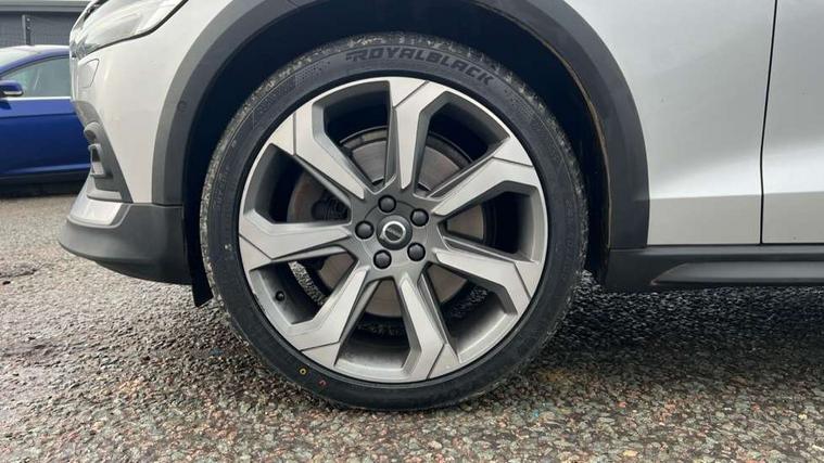 Driftwood inlays, Anti-theft alarm including immobiliser/volume sensor + level sensor, Care key with user defined top speed, Key integrated remote control central locking + fuel flap with deadlocking system and auto open/close power windows, Keyless drive (incudes keyless entry and start) with remote tag and handsfree tailgate open/close, Locking wheel nuts, Private locking for tailgate, DAB Digital radio, 5 x 3 point seatbelts, City safety with steering support with Pedestrian + cyclist + large animal detection + front collision warning with full auto brake, Dual stage driver/passenger airbags, First aid kit, Hill descent control, Hill start assist, IC (Inflatable Curtains) - Full Length, Passenger airbag cut-off switch, Power parking brake with auto hold function, Road sign information display, Run off Road Mitigation, Run off Road Protection, Seatbelt reminder and pretensioners for all seats, SIPS (Side Impact Protection System), SIPS airbags, Slippery road and hazard light alert, Stability and Traction Control with Spin control, Engine Drag Control and Corner Traction Control, Tyre pressure monitoring system, Vehicle deceleration control with Anti-lock Brake System, Electronic Brake Distribution and Emergency Brake Assist, Warning triangle, Adaptive brake lights with high level LED brake lights, Auto dimming interior mirror, Automatic headlight levelling system, Automatic LED Headlights + Active high beam incorporating daytime running lights, Body colour bumpers, Charcoal lower grille, Charcoal lower sill mouldings, Charcoal wheel extensions, Colour coordinated auto folding and heated power door mirrors, Cross Country embossed rear bumper, Dual integrated exhaust pipes, Front aluminium tread plates, High gloss black door mirrors and window surround, Home safe and approach lighting, Integrated roof rails in silver, Matt black front grille with chrome details, Power front and rear windows, Rain sensor with automatic windscreen wiper activation, Rear side wing doors, Rear wiper, Roof antenna, Roof spoiler, Visible VIN plate, 12V socket in front + tunnel console and cargo area, 3 seat bench in 2nd row, 3 spoke leather steering wheel with chrome trim, A-pillar parking ticket holder, B Pillar ventilation, Blond headlining, Bright metal luggage compartment threshold, Cargo load hooks, Centre console cupholders, Extended front seat cushions, Floor mats, Front footwell illumination, Front head restraints, Front reading lights + Theatre lighting and centre armrest storage illumination, Front/rear door pockets and front cupholder illumination, Glovebox compartment with illumination, Heated front seats, Height/reach adjustable steering column, High gloss black steering wheel remote infotainment controls, Illuminated vanity mirrors + ticket holder, ISOFIX attachment on outer rear seats, Leather upholstery with contrast stitching, Load cover, Load protection net, Luggage compartment illumination, Multi directional lumbar support, Multicolour theatre lighting and puddle lights, Rear armrest with storage + cupholders, Rear footwell and side step illumination, Single front passenger seat, Tailgate illumination and ambient door lighting, Underfloor cargo storage, Versatile split folding rear seat - 60/40, WHIPS - Whiplash Protection System, 12.3" Active TFT crystal driver's instrument display, 9" centre console touch screen, Adjustable steering wheel force, Bluetooth handsfree system, Drive mode settings, Driver alert control with lane keeping aid, E-call, Front and rear park assist, Information centre, Oncoming Lane Mitigation, Rear park assist camera, Sensus navigation with European mapping and traffic information, Service interval indicator, Speed limiter, Speed sensitive steering, Trip computer, Voice activated control for key functions, Volvo on call app, 60mm additional ground clearance, 8 speed automatic transmission with start/stop + manual change functions, Touring chassis,
