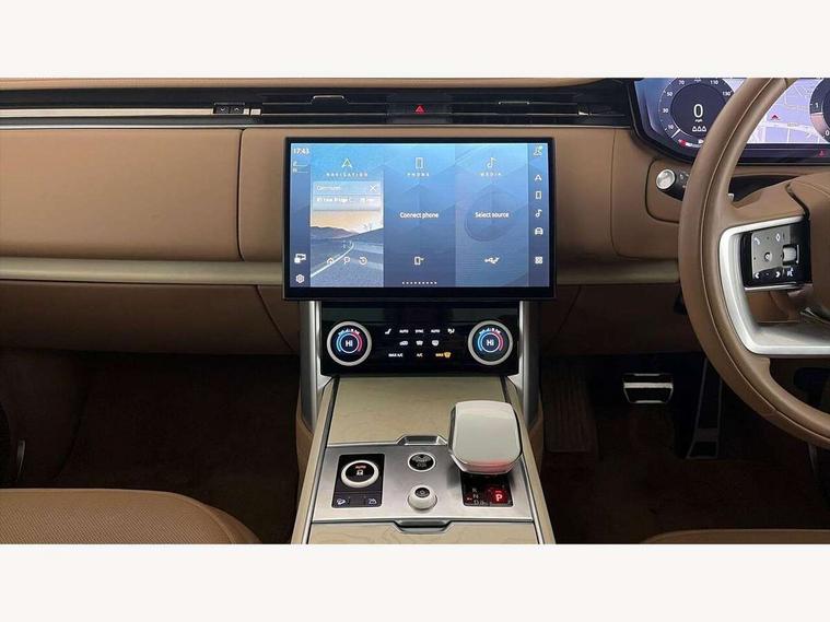 13.1" Touchscreen, 3D surround camera inc frwd traffic detection, vehicle clearance guidance, 3D view, clearsight ground view, manoevure light, 360 parking aid, wade sensing, Adaptive cruise control with steering assist, All Terrain Info Centre, All wheel steering, Android Auto, Apple car play, Blind spot assist, Bluetooth connectivity streaming, Configurable programs, Driver condition response, Eco mode, Electric power assisted steering (EPAS), Emergency call service, Head up Display, Interactive driver display, Lane keep assist, Powered gesture tailgate/boot lid, Rear collision monitor, Rear traffic monitor, Remote, Traffic sign recognition with adaptive speed limiter, Wi-Fi Enabled with data plan, Wireless device charging with phone signal booster, 8 speed automatic transmission, Active damper technology system, Adaptive dynamics, All terrain progress control, All Wheel Drive (AWD), Automatic access height, Electronic active differential with torque vectoring by braking, Electronic air suspension with dynamic response, Terrain Response 2 Auto, Twin speed transfer box, Digital Audio Broadcast radio-DAB, Meridian 1600W signature sound system, Pivi pro including smart settings, Connected navigation pro, nuance speech, USB socket, Acoustic laminated windscreen, Animated directional indicators, Automatic headlights, Automatic levelling headlights, Centre high mounted stop light, ClearSight interior rear view mirror, Digital LED headlights with signature DRL and image projection, Electric windows with one touch open/close and anti trap, Flush deployable exterior door handles, Front and rear recovery eyes, Front fog lights, Headlamp power wash, Heated rear window, Heated washer jets, Illuminated aluminum treadplates with illuminated SV script, Laminated front and rear side glass, LED tail lights, Power fold, auto-dimming, heated door mirrors with approach lights, Rain sensing windscreen wipers, Rear boot, Rear fog lights, Rear side wing doors, Rear wash/wipe, Side repeater indicators in mirror, Solar attenuating windscreen, SV branded puddle lamps, SV etched roundel on side gill inserts, SV exclusive front bumper and grille design, SV exterior badge, SV white ceramic exterior badge with black SV roundel, Trailer stability assist, Winter wiper park position, 12V power sockets, 24-way heated and cooled, hot stone massage electric front seats with Executive Class Comfort Plus rear seats, 3 seat bench in 2nd row, Air quality sensor, Auto folding loadspace cover, Bright metal pedals, Cabin air purification pro, Cabin lighting, Centre console with armrest, Customer configurable single point entry, Driver and passenger front seat armrests, Easy boot loading, Electric rear side window sunblinds, Four zone climate control, Front and rear cupholders, Front and rear grab handles, Front head restraints, Gearshift paddles, Heated steering wheel, Hook in load space, Loadspace light, Luggage tie down in loadspace, Multifunction steering wheel, Rear centre armrest, Rear head restraints, Rear ISOFIX, Single front passenger seat, SV exclusive seat foams and sculpting, SV exclusive seat pattern embroidery/ perforation, SV exclusive speaker grille design, SV start up graphics in IP screen, Twin blade sunvisors with Illuminated vanity mirrors, Upper and lower glovebox, Versatile loadspace floor in tailgate, Online pack with data plan - Range Rover, 3x3 point rear seat belts, Anti-lock braking system (ABS), Brake hold function, Cornering brake control (CBC), Customer configurable autolock, DSC - Dynamic Stability Control, Electronic brake force distribution, Electronic parking brake, Electronic traction control, Emergency brake assist, Emergency braking, Front airbags with passenger seat occupant detector, Front side airbags, Hill descent control, Hill launch assist, Illuminated seat belt buckles, Low traction launch, Occupant protection assist, Power operated child locks, Roll stability control, Tyre pressure monitoring system (TPMS), Immobiliser, Intrusion sensor and alarm, Keyless entry, Locking wheel nuts, Remote central locking, SV exclusive key fob with white and black SV roundel,