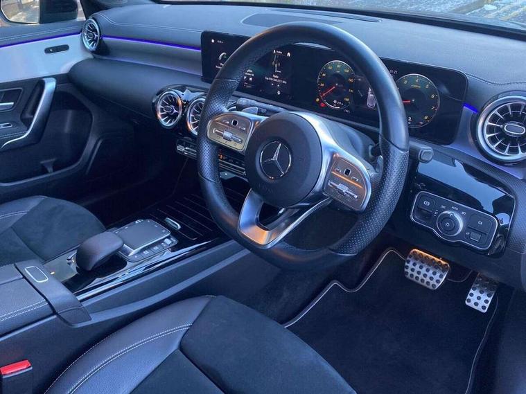 10.25" Digital instrument cluster display screen, 10.25" media display, 180 degree rear view camera with parking guidelines, Active parking assist with visual and audible warning of detected obstacles, Attention assist, Brake pad wear indicator warning light, Car wash mode, Cruise control + speed limiter, Direct steering, Dual bluetooth interfaces, DYNAMIC SELECT with a choice of driving modes (ECO, Comfort, Sport and Individual), ECO start/stop function, Fluid level warning indicator for fuel, oil, coolant and washer fluid, Hard-disk navigation, Hey Mercedes Voice activation, Lamp failure indicator, Lane keeping system, Mercedes me connect including emergency call system, accident recovery, breakdown and maintenance management, Mercedes me remote services, Outside temperature gauge, Owners manual in English, Pre-installation for private car sharing, Preinstallation for Mercedes Benz link, Service indicator (ASSYST), Smartphone integration with Apple CarPlay and Android auto, Speed sensitive power steering, Trip computer, Ultrasonic sensors positioned in the front and rear bumpers, Lowered comfort suspension, Rear axle torsion beam, 10 speakers, 2 USB ports (type C) in rear stowage compartment and one in front of center console, DAB Digital radio, MBUX multimedia system with DAB digital radio and touchpad including satellite navigation, Mercedes-Benz sound system - 100W, 4 Electric Front and Rear windows, Adaptive brake lights, AMG bodystyling - Front apron with splitter in chrome, rear apron with chrome trim and chrome visible trim elements in tailpipe, Automatic headlights, Black weather strip, Body colour bumpers, Body colour door handles, Body colour side skirt, Body coloured door mirrors, Electric adjustable and heated door mirrors with integrated LED side indicators, Exclusive diamond radiator grille, Exhaust system - Twin visible tailpipes in polished stainless steel, Headlamp assist automatic headlamp activation, Heated glass rear windscreen + timer control, High gloss black beltline, LED High level third brake light, LED high performance headlamps with integrated LED daytime running lights, LED tail lamp, Privacy glass, Radio aerial, Rain sensing windscreen wipers with two sensitivity settings, Rear fog lights, Rear side wing doors, Rear wiper, Window line trim strip in high gloss black, 3 seat bench in 2nd row, 3 Spoke flat bottom leather multi function steering wheel with perforated leather in grip area, 40:20:40 split folding rear seats, Artico man-made leather/Microfibre Dinamica upholstery with contrast stitching in light grey, Auto Mercedes-Benz child seat recognition sensor, Black air vents with surround in silver chrome, Black roof lining, Brushed stainless steel sports pedals with rubber studs, Controller on centre console with chrome surround, Floor mats with black top stitching and embroidered edition logo and piping in light grey, Front centre armrest with storage compartment, Front seat backs luggage nets, Front seat cushion length adjustment, Galvanished gear shift paddles on steering wheel, Heated front seats, Height/reach adjustable steering column, Illuminated front door sills with changeable cover, Interior lighting - 64 colour Ambient lighting, Interior mirror with reading lamps in black and frameless, Manual height adjustable front seats, Rear armrest with 2 cupholders, Rear head restraints, Seat occupancy sensor for front passenger seat, Single front passenger seat, Sports seats with integrated headrests, Stowage compartment in centre console with retractable cover, Sunvisors with illuminated vanity mirrors, Touchpad on center console, Twin front cupholders, Two zone thermotronic luxury automatic climate control, Light and sight pack - A Class, Mirror package - A Class, Night pack - A Class Saloon/Hatchback, Seat comfort pack - A Class, 3 rear 3 point seatbelts, ABS with Brake Assist, Active bonnet, Active brake assist includes forward collision warning system with autonomous braking, Adaptive brake assist with hold function and hill start assist, Black seatbelts, Childproof locks manually operated for rear doors and electrically operated for rear power windows, Crash responsive emergency lighting, Driver and passenger head and side airbags, Drivers knee airbag, Dual stage driver/passenger airbags, Electronic parking brake, ESP curve dynamic assist, ESP with ASR, Front and rear seatbelt reminder, Front brake callipers with Mercedes Benz lettering, ISOFIX and top tether child seat fixing points in two outer rear seats, Tyre pressure monitoring system, Warning triangle and first aid kit, Window airbags, Alarm system/interior protection/immobiliser, Keyless entry lock/unlock, Keyless Go, Remote central locking and crash sensor with emergency opening function, Urban guard vehicle protection system with immobiliser and interior protection, Matrix look light longitudinal grain aluminium trim element, 18" AMG 5 twin spoke light alloy wheels aerodynamically optimised painted in black with highsheen finish, Summer tyres, Tirefit sealant kit,
