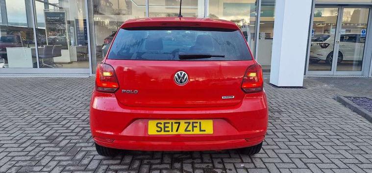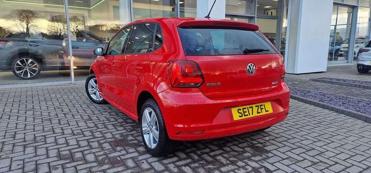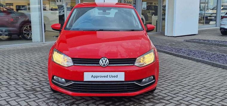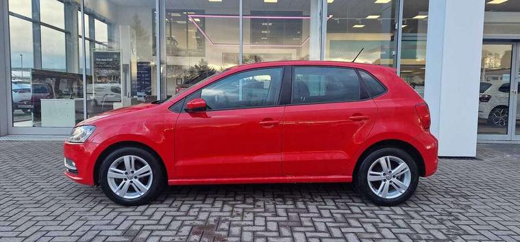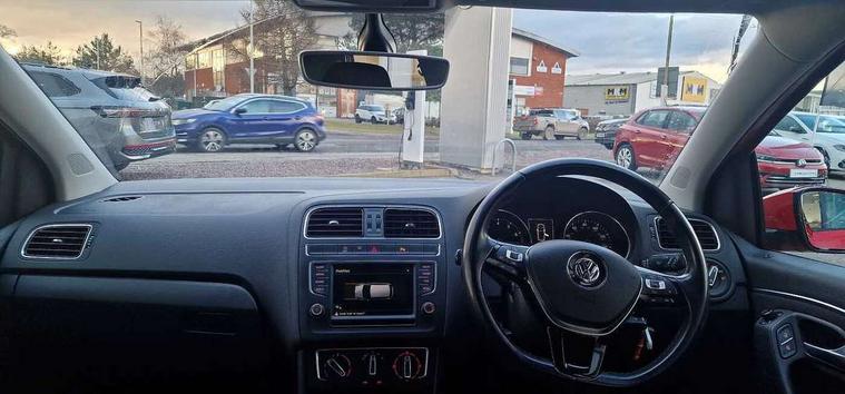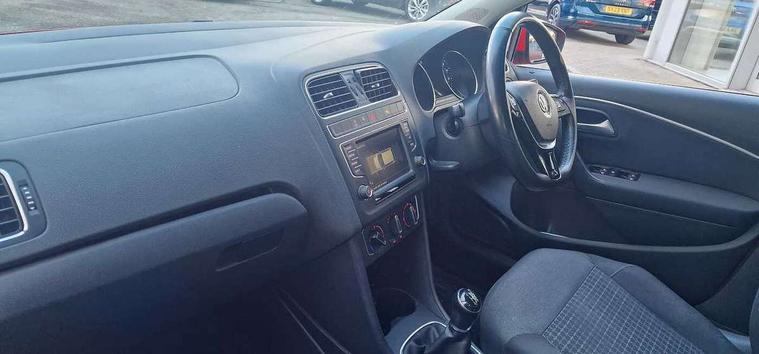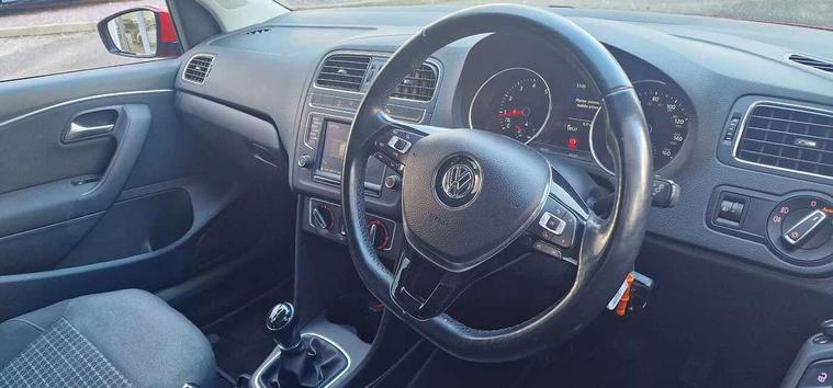 App-Connect, Bluetooth Telephone preparation, Cruise control + speed limiter, Driver alert system, Multi function display, Multifunction computer, PAS - speed related, Service interval indicator, Ultrasonic front and rear optical and audible parking sensors, Warning buzzer and light for front seatbelts unfastened, 6 speakers, Composition media system with radio, glovebox mounted CD, colour touch screen, SD card, aux-in, USB, multimedia interface, DAB Digital radio, Black grille with chrome surround, Body colour bumpers, Body colour door handles, Body colour door mirrors, Body coloured side sills, Chrome trimmed front air intake surrounds, Electric folding door mirrors, Electric front windows, Electric operated/heated door mirrors, Front fog lights with static cornering function, Front wash/wipe with interval delay, Heat insulated tinted glass 65% light absorbing from B pillar back, Heated rear window with auto timer, Rear electric windows, Rear windscreen washer and wiper with interval delay, 12V power socket in centre console, 2 bag hooks in luggage compartment, 2 cupholders, 3 rear head restraints, 3 spoke steering wheel, 4 grab handles, 60/40 split folding rear seat, Centre console storage, Chrome interior door handles, Driver and passenger sunvisors, Driver seat height adjust, Dust/pollen filter, Front door pockets, Front passenger seat height adjust, Front seat backrest storage nets, Front/rear reading lights, Glovebox, Height/reach adjustable steering column, Illuminated vanity mirror, Interior light with delay, Isofix Preparation 2 Rear child seats, Luggage compartment cover, removable, Luggage compartment lighting, Matt chrome gear lever gaiter surround, Multifunction leather steering wheel with leather gear knob/handbrake grip, Storage compartment in front doors, Storage compartment in rear doors, Sunglasses holder, Variable boot floor, Light and sight pack - Polo, 3 point height adj front seatbelts + pretensioners, 3x3 point rear seatbelts, ABS, Automatic post collision braking, Driver/front passenger airbag, Driver/Passenger whiplash optimised head restraints, ESC - Electronic Stability Control + traction control, ESP with EDL + ASR, Hill hold control, Hydraulic Brake Assist (HBA), Tyre pressure monitoring system, Alarm with remote central locking and interior protection, Electronic engine immobiliser, Air vents in Matt chrome, Matt chrome interior trim, 15" steel spare wheel,