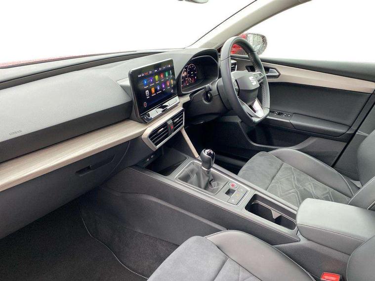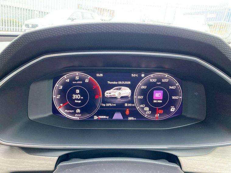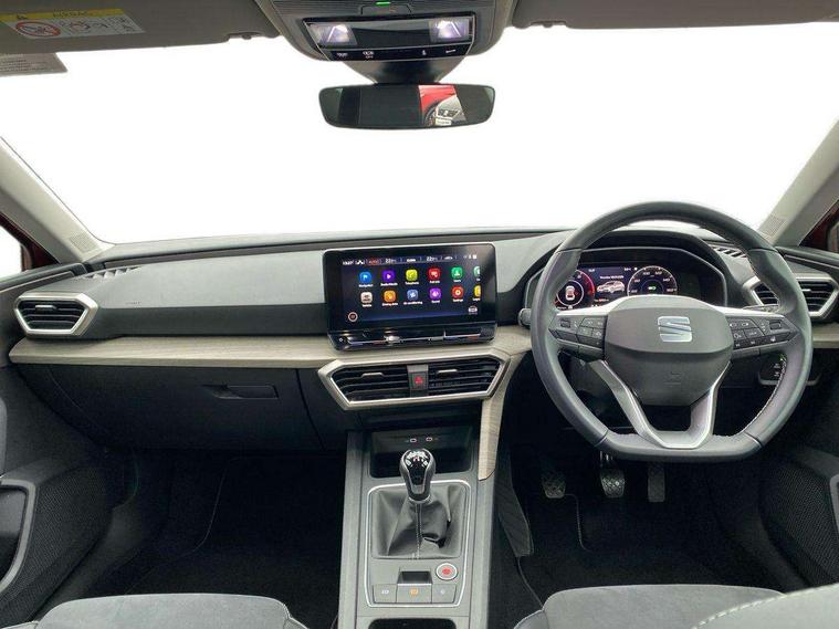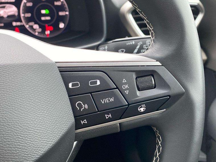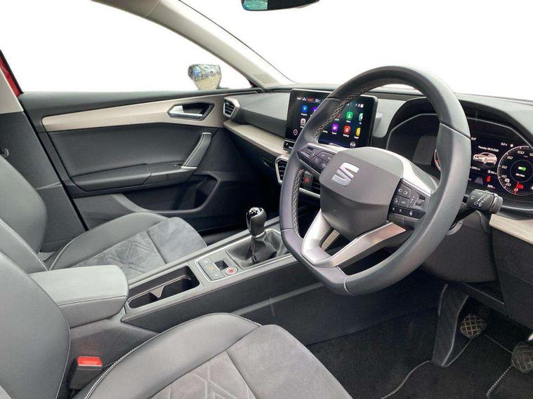 Digital cockpit, E-call, Front assist with forward collision warning braking reaction to vehicles, pedestrians and cyclists, Full link smartphone integration with Mirror Link, wireless Apple CarPlay and wired Google Android Auto, Lane assist, Lockable tailgate, Park assist (inc front/rear parking sensors), Power assisted speed sensitive electro-mechanical steering, Rear view camera, RPM, trip computer, outside temp gauge, instrument light brightness, low fuel warning light, lights on reminder, gearshift indicator, Service interval indicator, Start/stop system with regenerative braking, XDS electronic differential lock and dynamic traction support, 7 speakers, Auxiliary input socket, Auto dimming rear view mirror, Body colour door handles, Body coloured bumpers, Dark tinted rear windows, Door mirror LED indicator lights, Dynamic headlight range control, Electric adjustable/heated/folding door mirrors with memory, Electric front/rear windows, Illuminated front door sill, LED front fog lamps with cornering function, LED Headlights with dynamic turn signals, LED tail lights and rear fog lights with rear coast to coast lighting, Rain sensing wipers, Rear side wing doors, Rear wash/wipe, Separate daytime running light with automatic headlight control and coming home feature, Third brake light, Welcome light silhouette from exterior mirrors, 12v power point in centre console, 3 seat bench in 2nd row, 60/40 split rear bench seat with armrest, Ambient lighting with glovebox, footwell and single monocolour, Dust/pollen filter, Electric driver lumbar support + passenger manual lumbar support, Folding boot cover, Four x USB Type C ports, Front and rear height adjustable headrests, Front and rear reading lights X 4, Front centre armrest, Front seatback storage pockets, Grey headlining, Heated front seats, Heated leather steering wheel with leather gearstick, Height/reach adjust steering wheel, ISOFIX points in outer rear seats with top tether anchorage points, Luggage tie-down hooks, Microsuede cloth upholstery, Power driver seat with memory and manual height adjustable passenger seat, Single front passenger seat, Sunvisors with covered illuminated mirror, Three zone climate control, Media system plus with navigation - Leon, 3 point seatbelts on all rear seats, ABS, Brake control system - ESC and brake booster, Child proof door locks, Driver and front passenger airbags with front passenger airbag de-activation, front side and curtain airbags, Electronic parking brake, Extended safety system - seat belt tensioner, window closure and hazard lights, Hill hold control, Rear disc brakes, Seat belt reminder for front and rear seats, Tiredness recognition system, driver alert system, Tyre pressure monitoring system, Anti theft alarm system with interior monitoring in cab, backup horn and towing protection, KESSY Advanced - Keyless start, keyless entry with SAFELOCK, Locking wheel bolts, Wireless phone charging, Chrome interior detailing, 17" Dynamic alloy wheels with 91W tyres, Tool kit,