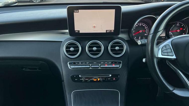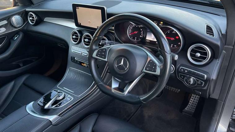 8.4" high resolution display, Active park assist with parktronic system, Attention assist, Bluetooth interface for hands free telephone, Collision prevention assist plus, COMAND online nav with colour display, radio/CD/DVD/MP3, SD card, 10GB music, Emergency Call system, speed limit assist, linguatronic voice control, Crosswind Assist, DYNAMIC SELECT with a choice of driving modes (ECO, Comfort, Sport, Sport+ and Individual), Instrument cluster with 5.5-inch TFT multi-function display, Multi function trip computer, Outside temperature gauge, Power opening/closing tailgate, Remote boot release, Service indicator (ASSYST), Speed sensitive steering, Touch pad controller for infotainment system, Traffic sign recognition, 66 litre fuel tank, Diesel particulate filter, Burmester surround sound system, DAB Digital radio, USB connection, Adaptive brake lights, Aerodynamic rear spoiler, AMG bodystyling, Automatic headlights, Body coloured bumpers, Chrome exterior trim, Electric panoramic sunroof with sunblind, Electric windows one touch open/close, Electrically adjustable and heated door mirrors, Exhaust tailpipe finisher, Heated windscreen washers, LED daytime running lights, LED rear lamps, Privacy glass (to rear of B post), Rain sensor windscreen wipers, Range adjustable headlights, Rear wiper, Tinted glass all round, 2 cupholders in front centre console, 2 way rear head restraints, 3 spoke flat bottom AMG steering wheel in nappa leather, 4 way adjustable front head restraints, 4 way electric lumbar support for driver and front passenger, 40:20:40 split folding rear seats, Ambient lighting, AMG floor mats, AMG sports seats, Auto Mercedes-Benz child seat recognition sensor, Automatic climate control, Black roof lining, Dividing net - rear, Electric front seat height adjustment, Front armrest with storage box, Front door sills with Mercedes Benz lettering, Gearshift paddles, Heated front seats, Illuminated glovebox, Multifunction steering wheel, Rear top tether child seat ISOFIX attachment, Sports pedals with stainless steel surfaces and rubber studs, Sunvisors with illuminated vanity mirrors, Easy-pack load compartment cover, Interior lighting pack - GLC, Memory pack - GLC, Mirror pack - GLC, Storage pack - GLC, 3 rear 3 point seatbelts, ABS with Brake Assist, Active bonnet, Adaptive brake system, Brake calipers with Mercedes-Benz lettering + perforated brake discs, Child proof door locks, Drivers knee airbag, Dual stage driver/passenger airbags, Electronic parking brake, ESP with ASR, Front and rear seatbelt reminder, Front passenger seat occupancy sensor, Front side airbags, Hill hold function, Tyre pressure monitoring system, Warning triangle and first aid kit, Window airbags, Alarm system/interior protection/immobiliser, Automatic door locking, Keyless entry and keyless start, Remote central locking, All season tyres, Tyre inflation kit,