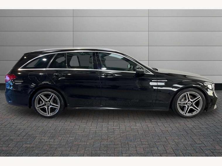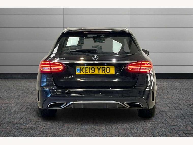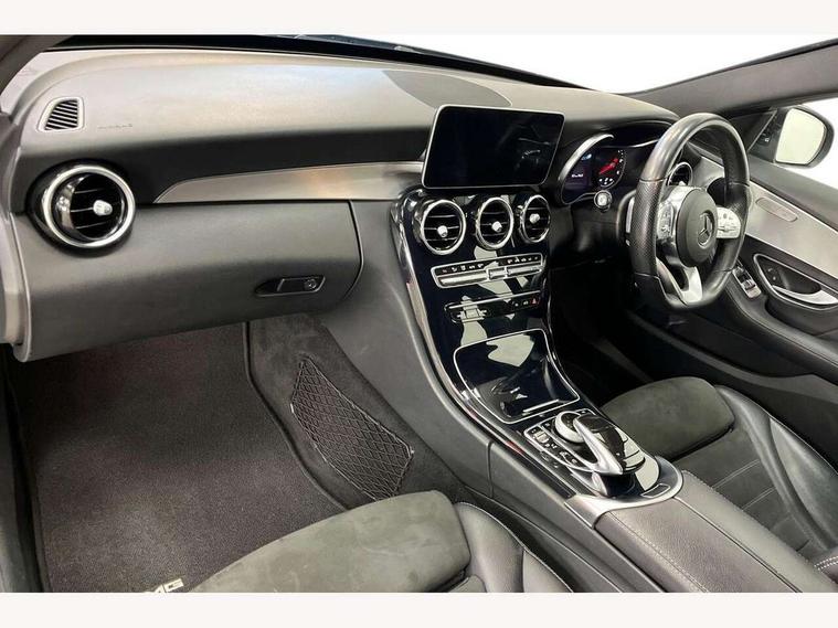 Active park assist with parktronic system, Attention assist, Bluetooth system, Collision prevention assist plus, Comand Online HDD Nav with media interface, radio/CD/DVD/MP3, 10.25 screen, linguatronic voice control, DYNAMIC SELECT with a choice of driving modes (ECO, Comfort, Sport, Sport+ and Individual), Multi function trip computer, Outside temperature gauge, Power opening/closing tailgate, Remote boot release, Reversing camera, Service indicator (ASSYST PLUS), Smartphone integration with Apple CarPlay and Android auto, Wireless charging, Diesel particulate filter, 2 USB ports in centre console, DAB Digital radio, Mid-range sound system with 7 speakers and 225W amplifier, SD card slot, Steering wheel mounted audio controls, Adaptive brake lights, Aerial in rear window, AMG body styling, Body coloured bumpers, Body coloured door mirrors, Chrome pins diamond radiator grille with integrated stars, Chrome roof rails, Electric windows one touch open/close, Electrically adjustable and heated door mirrors, Green tinted glass, Heated windscreen washers, LED daytime running lights, LED Indicators, LED tail lights, LED third brake light, Multi beam LED headlights, Rain sensor windscreen wipers, Rear wiper, Side windows surround in polished aluminium, Twin exhaust pipes, 2 cupholders in front centre console, 3 spoke flat bottom AMG steering wheel in nappa leather, 40:20:40 split folding rear seats, AMG floormats, AMG sports seats, Auto Mercedes-Benz child seat recognition sensor, Dual zone automatic climate control, Electric front seat height adjustment, Front and rear head restraints, Front centre armrest with storage compartment, Front door sills with Mercedes Benz lettering, Gearshift paddles, Heated front seats, Illuminated glovebox, Interior lighting - 64 colour Ambient lighting, Load compartment cover, Multifunction steering wheel, Rear top tether child seat ISOFIX attachment, Sports pedals with stainless steel surfaces and rubber studs, Sunvisors with illuminated vanity mirrors, Lighting pack - C class, Mirror pack - C Class, Seat comfort pack - C Class, Stowage space pack - C Class, 3 rear 3 point seatbelts, ABS with Brake Assist, Active bonnet, Adaptive brake system, Black seat belts, Brake calipers with Mercedes-Benz lettering + perforated brake discs, Child proof door locks, Crash sensor, Drivers knee airbag, Drivers pelvis airbag, Dual stage driver/passenger airbags, Electronic parking brake, ESP with ASR, Front passenger seat occupancy sensor, Front side airbags, Hill start assist, Rear seatbelt warning indicator, Tyre pressure monitoring system, Warning triangle and first aid kit, Window airbags, Alarm system/interior protection/immobiliser, Chrome surround electric key, Remote central locking, Tyre inflation kit,