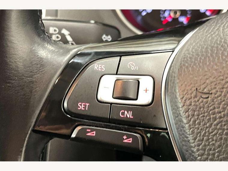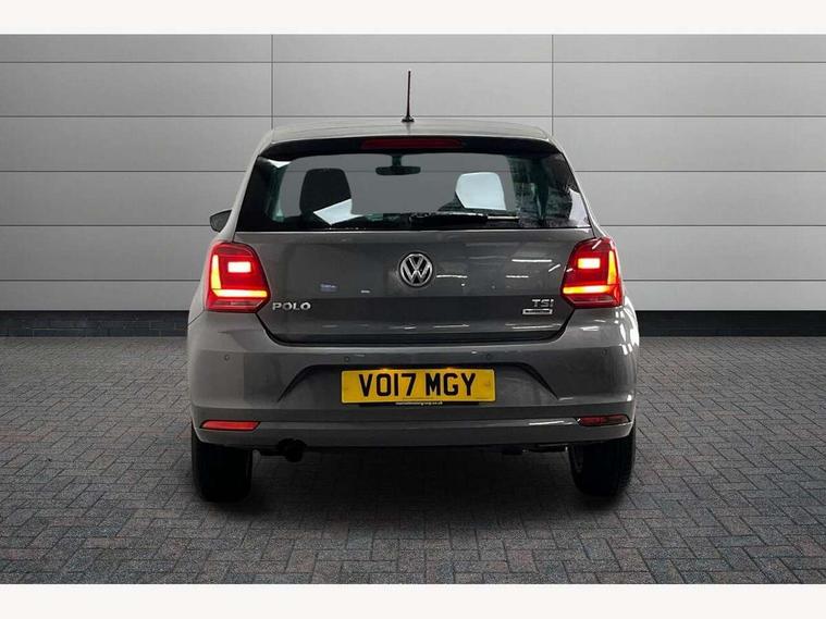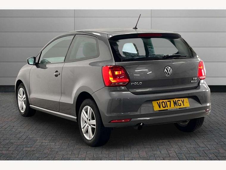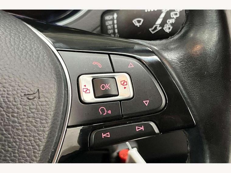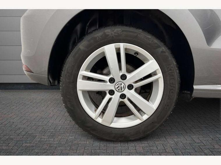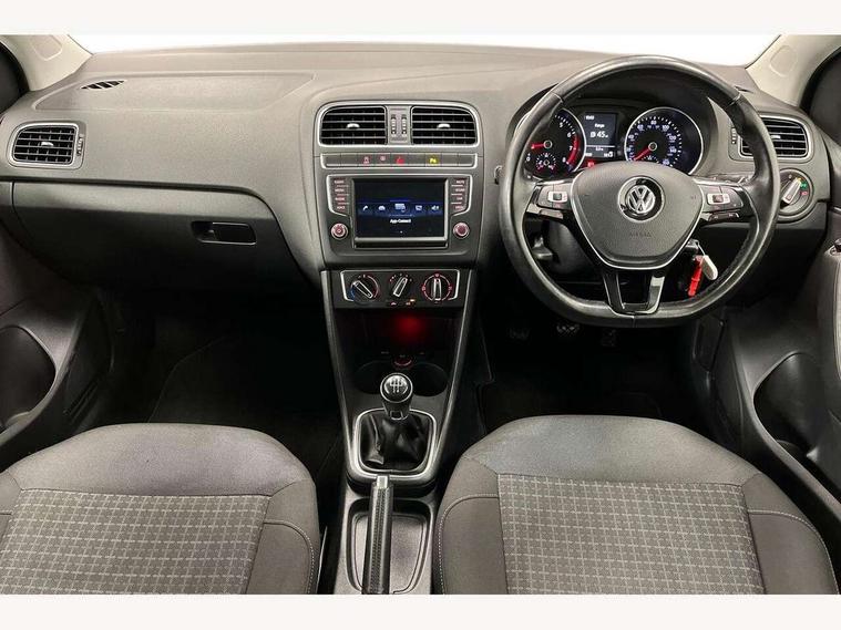 App-Connect, Bluetooth Telephone preparation, Driver alert system, Multi function display, Multifunction computer, PAS - speed related, Service interval indicator, Ultrasonic front and rear optical and audible parking sensors, Warning buzzer and light for front seatbelts unfastened, 6 speakers, Composition media system with radio, glovebox mounted CD, colour touch screen, SD card, aux-in, USB, multimedia interface, DAB Digital radio, Black grille with chrome surround, Body colour bumpers, Body colour door handles, Body colour door mirrors, Body coloured side sills, Chrome trimmed front air intake surrounds, Electric folding door mirrors, Electric front windows, Electric operated/heated door mirrors, Front fog lights with static cornering function, Front wash/wipe with interval delay, Heat insulated tinted glass 65% light absorbing from B pillar back, Heated rear window with auto timer, Rear windscreen washer and wiper with interval delay, 12V power socket in centre console, 2 bag hooks in luggage compartment, 2 cupholders, 3 rear head restraints, 3 spoke steering wheel, 4 grab handles, 60/40 split folding rear seat, Centre console storage, Chrome interior door handles, Driver and passenger sunvisors, Driver seat height adjust, Dust/pollen filter, Easy entry slide seats (access to rear seats), Front door pockets, Front passenger seat height adjust, Front seat backrest storage nets, Front/rear reading lights, Glovebox, Height/reach adjustable steering column, Illuminated vanity mirror, Interior light with delay, Isofix Preparation 2 Rear child seats, Luggage compartment cover, removable, Luggage compartment lighting, Matt chrome gear lever gaiter surround, Multifunction leather steering wheel with leather gear knob/handbrake grip, Storage compartment in front doors, Sunglasses holder, Variable boot floor, Light and sight pack - Polo, 3 point height adj front seatbelts + pretensioners, 3x3 point rear seatbelts, ABS, Automatic post collision braking, Driver/front passenger airbag, Driver/Passenger whiplash optimised head restraints, ESC - Electronic Stability Control + traction control, ESP with EDL + ASR, Hill hold control, Hydraulic Brake Assist (HBA), Tyre pressure monitoring system, Alarm with remote central locking and interior protection, Electronic engine immobiliser, Air vents in Matt chrome, Matt chrome interior trim, 15" steel spare wheel,