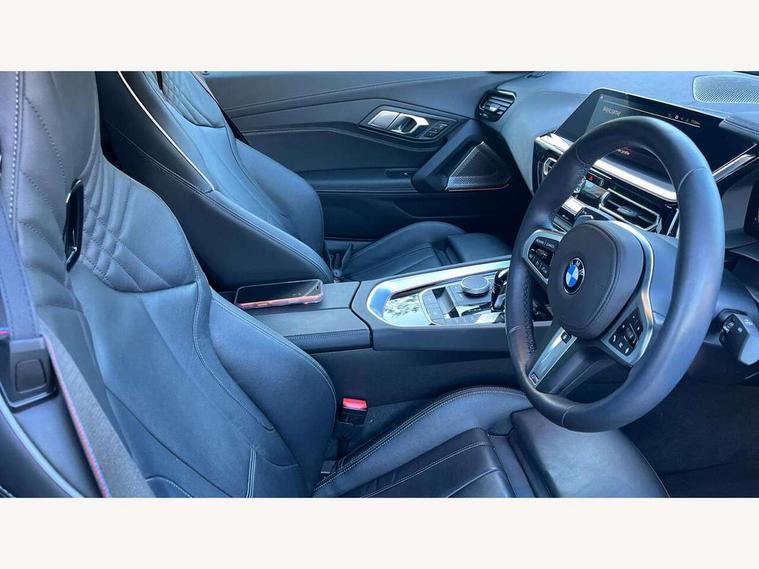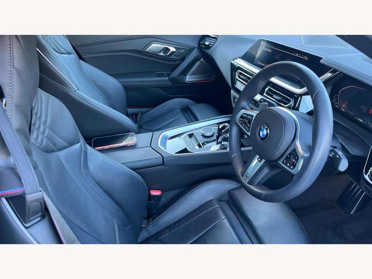 Active guard plus incl speed limit assist, lane departure warning with steering impulse and front collision warning with brake intervention, BMW ConnectedDrive online services, BMW Live Cockpit Professional with nav function/12.3" high resolution instrument +10.25" control display/Intelligent Voice Assist/2 USB/WiFi interface, BMW Teleservices, Condition based service, Electric power steering, Fuel gauge, iDrive touch controller with turn and press function, Instrument cluster, Language version English, Oil sensor for level and grade, warning by check control system, Oil temperature gauge, Optimum shift indicator, Pull away assistant, Run flat indicator, Speed limiter, Speedometer with mph readout, Tachometer, Variable sport steering, Double joint spring, Double VANOS, Drive performance control with ECO PRO comfort + sport mode, Eight speed steptronic sport transmission, with gearshift paddles, Electronic differential lock, Fuel tank breather system, High precision injection, M sport suspension, 2x USB Type C ports in front centre console for charging and data transfer, 2x USB Type C ports in rear centre console for charging, DAB tuner, USB connection, Auto dimming driver's door mirror, Automatic headlight beam throw control with load dependent regulating reaction, dynamic compensation of braking dive and acceleration squat, Door sill finishers with M designation, Door sill strips, Dynamic braking lights comprising activated hazard warning flashers, Electric folding door mirrors, Electric heated rear window, Exhaust tailpipe - split left and right, Extended high gloss shadowline exterior trim, Exterior mirror housing finished in body colour, Fingertip control / anti-trap function on electric window, Follow me home headlight function, Front and rear bumper system with replaceable deformation elements, Green tinted heat protection glazing, Heated windscreen washer jets, Interior rear view electrochromatic mirror with automatic anti dazzle function, Kidney grille in mesh design, LED 3rd brake light, LED daytime driving lights, LED Indicators, LED rear lights, Lightweight engineering, M aerodynamic body kit, M Sport exterior styling, Matt black window recess finisher, Model logo, Rain sensor, Rear boot, Reversing light, Tailgate release handle, Two stage brake force display, Visible VIN plate, Welcome lighting, Wind deflector, Windscreen wipers with adjustable interval, 12V power point in luggage area, 12V power socket in front storage compartment, 2 cup holders in front centre console, Activation of interior lighting, Additional storage compartment - 4 lashing eyes, strap and storage net, Ambient lighting, Battery in luggage compartment, BMW ID, Child seat ISOFIX attachments for passenger seat, Driver and front passenger heated seats, Front and rear armrests integrated in door trim + centre console includes storage compartment and rear centre armrest includes 2 cupholders, Front and rear velour floor mats, Front headrests, Height adjustable mechanically and infinitely variable steering column, Illuminated glovebox, Luggage compartment light, M sport leather steering wheel, M Sport seats for driver and passenger, Microfilter and active carbon filter, Multifunction steering wheel, Single front passenger seat, Sunvisors with vanity mirrors and ticket pocket, Through load system, Two zone automatic air conditioning, Vernasca leather upholstery, Connected package professional - Z4, 3 point front seat belts, Airbags - Front driver and passenger, front and side impact protection, Anti lock braking system (ABS) with brake assist, Automatic Stability Control (ASC), BMW emergency call, Brake energy regeneration, Braking readiness, Cornering brake control (CBC), Crash sensor activating central locking release, hazard warning lights, fuel cut off, interior lighting, safety battery terminal clamp and airbags, Curtain airbags, Deactivation of fuel pump in the event of a crash, Dry braking, Dynamic brake control, Dynamic stability control + (DSC+), Dynamic Traction Control - DTC, Electromechanical parking brake with automatic drive away release and auto hold function, Front and rear brake discs with interior ventilation, Head airbags, Plastic fuel tank, Pyrotechnic seat belt tensioners, Roll over protection, Seat belt force limiter, Seat belt stopper, Seat occupancy protection, Side airbags for driver and passenger, Two tone horn, Tyre pressure monitoring with three level warning strategy, Warning triangle, Centre lock switch, Closing system with central locking, Electronic vehicle immobiliser, Start/stop button with Comfort Go keyless engine start and auto Start/stop deactivation button, Thatcham cat 1 remote alarm, Sensatec dashboard, 18" Double spoke alloy wheels in bicolour ferric grey - style 798M, Reduced rolling resistance tyres, Tool kit, Tyre repair kit,