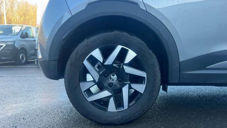 12" digital instrument cluster, Automatic adaptive cruise control, Central facia display with digital clock, outside air temperature and audio information, Driver drowsiness alert system, Engine start/stop button, Exterior temperature display, Front and rear parking distance sensors, Front camera system, Lane keep assist system (LAS) with Lane departure warning system (LDWS), Lane positioning assist, Lights on audible warning, Multi function trip computer, Panoramic rear view camera, Power assisted speed sensitive steering, Side blind spot alert and flank guard, Smartphone integration compatible with Apple CarPlay and Android Auto, Speed sign recognition, Start/stop system, Vauxhall connect with e-Call, 8 speed automatic transmission, Bluetooth A2DP audio streaming function (Advanced audio distribuition profile), Flexible Roof Mounted Radio Aerial, Front USB connection, Mobile phone portal - bluetooth connect, vehicle microphone, handsfree calls, SMS read out and reply, phone book access, Multimedia Navi pro infotainment with satellite nav, 10" colour touchscreen, 6 speakers, DAB radio, 12" instrument panel, Apple carplay/Android auto, Steering wheel mounted controls, Two rear USB sockets, Adaptive brake lights, Automatic lighting control with tunnel detection, Automatically dimming anti dazzle rear view mirror, Black door mirror housings, Black rear roof spoiler, Body colour door handles, Body colour front and rear bumpers, Chrome effect skid plates, Chrome effect upper window moulding, Electrically adjustable, heated and folding door mirrors, Electrically operated front and rear windows with safety auto reverse and one touch up/down facility, Hazard warning lights, Heated rear window+rear wash/wipe, High beam assist, LED 3rd brake light, LED daytime running lights, LED front fog lamps, LED side repeat indicators, LED tail lights, Manual headlamp level control, Rear foglight, Rear side wing doors, Reversing light, Solar heat absorbing windows, Solar heat absorbing windscreen and windows, Two speed rain-sensitive windscreen wipers with variable intermittent wipe, Variable front intermittent wipers, Windscreen and side window demist vents, 12V Accessory socket, 3 seat bench in 2nd row, 3 spoke flat bottomed leather steering wheel with satin chrome bezel, 4 speed fan with illuminated controls, 6 way manual adjustable driver fore/aft, up/down with reclining seatback, 6 way manual adjustable front passenger fore/aft, up/down with reclining seatback, Air recirculation system, Cabin particulate filter - removes dust, airborne particles and pollen, Centre console with two cup holders at front and one in rear, Chrome effect interior door handles, Door pockets with two litre capacity, Driver and passenger sun visors with vanity mirror, Electronic climate control (ECC), Fabric/Leather effect upholstery, Four adjustable facia vents, Four load restraint lashing eyes, Front centre armrest with storage, Front map reading lights, Front seat back storage pockets, Fully carpeted load area, Heated front seats, Heated steering wheel, Height adjustable front/rear head restraints, Illuminated load area, Interior courtesy light, Interior tailgate handle, Luggage compartment cover, Luggage compartment lighting, Reach + rake adjustable steering column, Single front passenger seat, Twin gas assisted tailgate struts, 2x Isofix child seat fitting on outer rear seats, 3x3 point rear seat belts, Anti-lock braking system (ABS), Automatic emergency city braking, Child proof locks on rear doors, Cornering brake control, Deactivation switch for front passenger front and side impact airbags, Drag torque control, Driver and front passenger airbags, front seat side impact airbags, full size curtain airbags, Electronic brake force distribution, Electronic Stability Programme (ESP), Emergency brake assist, Forward collision alert at all speed, Hill start assist, Inertia reel lap and diagonal seatbelts for all seats, Seatbelt unfastened audible warning and warning light, Straight line stability control, Traction control, Tyre pressure monitoring system, Electronically protected audio equipment, Freewheeling door locks, Immobiliser, Key left in ignition audible warning, Keyless entry and start, Locking wheel nuts, Remote control central locking, Remote control ultrasonic security alarm system, Visible vehicle identification number, Atlantis black trim inserts of front doors, Black facia with silver trim insert, Instrument panel bar in Light Gravel, 17" bi colour alloy wheels,