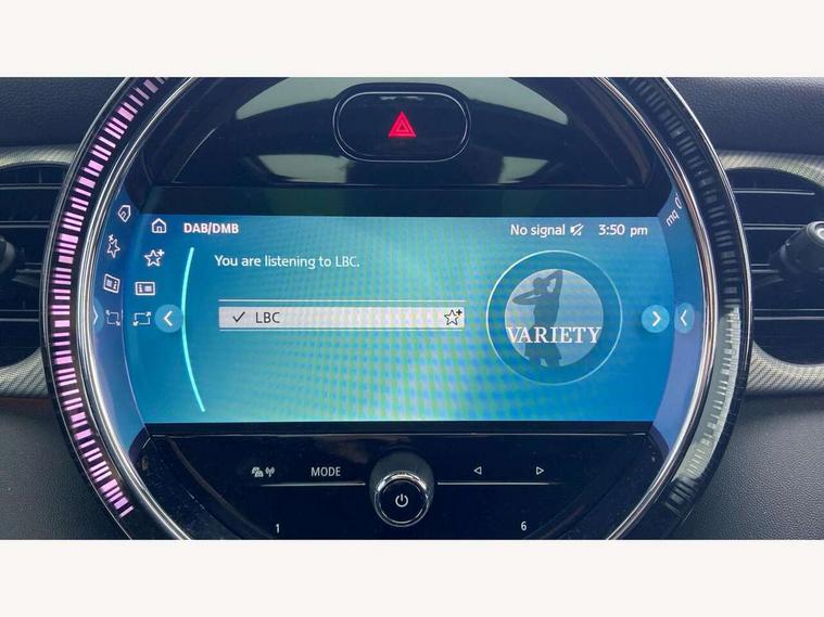 Apple CarPlay, Automatic start/stop function with brake energy recuperation, Compatible mobile phone bluetooth with audio streaming, Cruise control with brake assist, Electro-mechanical speed dependant steering assistance, Flexible car sharing preparation, Instrument cluster, MINI Driving Modes - centre toggle switch to control driving setting (sport, mid and green), Mini E-call, MINI TeleServices, On board computer, Rear park distance control, Service interval indicator, Double Vanos system, Fully variable valve control, High precision injection, Performance Control, Steptronic sport transmission with double clutch and steering wheel paddles, 8.8" touchscreen with LED ring, FM tuner and DAB digital radio, 3rd brake light, Automatic headlight activation switch, Bonnet scoop, Chrome line exterior - radiator grille bars, tailgate handle, lower front grille grating and rear central fog-light, Dynamic brake lights, Electric front windows, Heated rear window, Heated windscreen washer jets, LED headlight with closed ring and daytime driving lights, Metal door sill strips with Cooper S, Model logo Cooper S on right of tailgate, Rain sensor window wipers, Rear fog lights, Rear LED lights with union jack design, Rear window wiper, Side scuttle panel with integrated indicator, Sun/heat protection glass, White indicator lenses, 12V Accessory socket in centre console, 2 seat bench in 2nd row, 4 lashing eyes in luggage compartment, 60/40 split folding rear seat, Carbon black colour line - Knee roll and door armrest, Chrome interior highlights, Chrome line interior - air vents, gear lever base, door handles and speakers in doors, Cupholders, Front and rear head restraints, Front and rear isofix with front passenger airbag deactivation, Front floor mats in velour, Glove compartment, Height and length steering column adjustment, Interior lighting with 12 different colours across the dashboard, underneath door bezel with illuminated laser-engraved design on central display, Leatherette gearshift lever and handbrake gaiters, LED reading lights, vanity mirror lights, front foot well light and spotlight on front seats, Manual air conditioning, Mechanical seat adjustment - forward/back & backrest for front seats and driver seat height adjust, MINI yours badge on exterior pillar, Multifunction steering wheel, Passenger seat height adjuster, Satellite grey headlining including grab handles and clothes hooks, Single front passenger seat, Storage compartments in doors, Storage pocket on back of front seats, Sunvisors with vanity mirrors, Walknappa leather steering wheel with grey seam and MINI Yours badge on Piano Black lower steering wheel spoke, 3 point seatbelts on all four seats, 6 Airbags - front, side, head and seat belt tensioners, Anti-lock braking system (ABS), DSC - Dynamic Stability Control, Front and rear disc brakes, Two tone horn, Tyre pressure monitoring system, Alarm system with tilt sensor, monitoring doors, bonnet interior and tailgate, Electronic vehicle immobiliser, Start/stop toggle with keyless go, Tool kit,