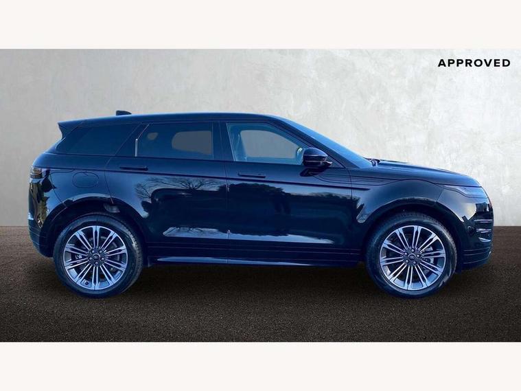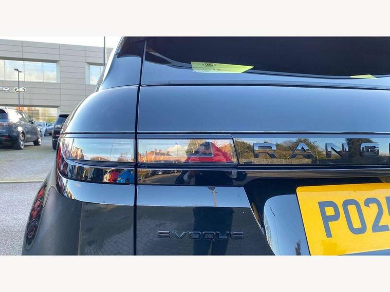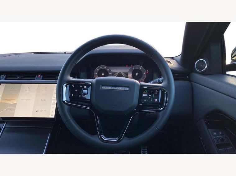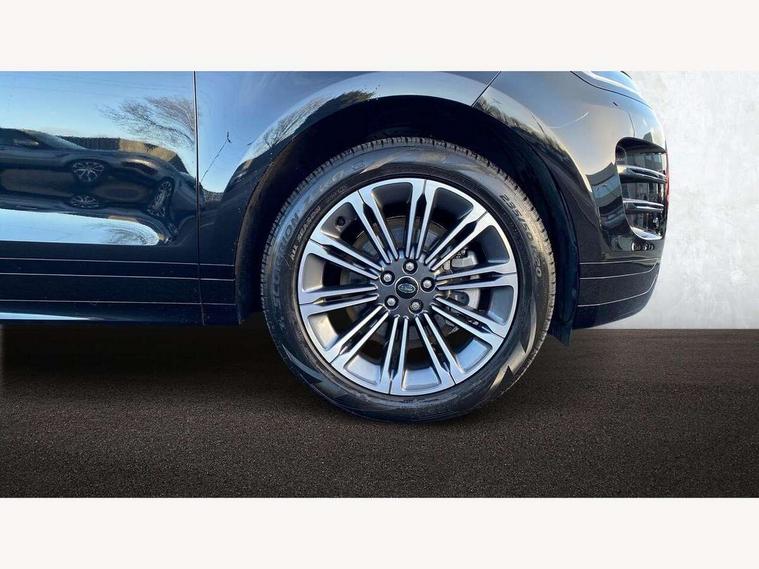 11.4" touch screen, 3D 360 degree surround camera with wade sensing, Adaptive cruise control, Android Auto, Apple car play, Blind spot assist, Bluetooth connectivity, Brake pad wear indicator warning light, Driver condition monitor, eCall emergency system, Eco mode, Electronic power assisted steering (EPAS), Front and rear parking aid, InControl remote, Interactive driver display, Land Rover InControl apps, Lane keep assist, Pivi pro connected includes diamond pivi variant, smart settings, connected navigation pro, nuance speech licence, Powered tailgate/boot lid, Rear collision monitor, Rear traffic monitor, Tailgate, Traffic sign recognition with adaptive speed limiter, Voice control system, Wireless device charging, All terrain progress control, Diesel exhaust fluid (DEF) large tank, Efficient Driveline, Large fuel tank, Terrain Response 2, Digital Audio Broadcast radio-DAB, Steering wheel mounted controls, Acoustic laminated windscreen, Auto headlights, Auto high beam assist, Automatic headlight levelling, Electric windows with one touch open/close and anti trap, Flush deployable exterior door handles, Front and rear recovery eyes, Heated rear window with timer, Heated washer jets, Heated windscreen, LED headlights with signature DRL and LED tail Lights, Power fold, auto-dimming, heated door mirrors with approach lights and auto dimming driver side, Rain sensing windscreen wipers, Rear animated directional indicators, Rear fog lights, Rear side wing doors, Rear wiper, Side repeater indicators in mirror, Tailgate spoiler, Third brake light, Winter wiper park position, 12 way driver memory and 10 way passenger electric front seats with 2 way manual headrest + 4 way lumbar support, 40:20:40 split folding rear seats with centre headrest and armrest, Ambient interior lighting, Bright metal pedals, Carpet mats, Chrome tread plates with range rover branding Includes stainless steel loadspace scuff plate with etched graphic, Customer configurable single point entry, Front and rear cupholders, Heated front seats, Heated steering wheel, Isofix system on outer rear seats, Manually adjustable steering column, Overhead lighting console, Overhead stowage for sunglasses, Passive front head restraints, Rear air vents, Rear head restraints, Satin chrome gearshift paddles, SE Grained leather upholstery, Single passenger seat, Standard steering wheel with Moonlight Bezel, Sunvisors with illuminated vanity mirrors, Twin sliding front centre armrest, Power socket pack 2 - Evoque, 3 rear 3 point seatbelts, Anti-lock braking system (ABS), Brake hold function, Customer configurable autolock, DSC - Dynamic Stability Control, Electronic brake force distribution, Electronic parking brake, Electronic traction control, Emergency braking, Front and rear seatbelt reminder, Hill descent control, Hill launch assist, Low traction launch, Occupant protection assist, Passenger seat occupant detector, Power operated child locks, Roll stability control, Six airbags - Driver and passenger airbags/driver knee airbag/front side airbag and curtain airbags, Torque vectoring brake, Tyre pressure monitoring system, Alarm, Immobiliser, Intrusion sensor, Keyless entry, Locking wheel nuts, All season tyres,
