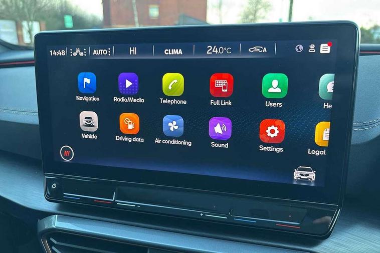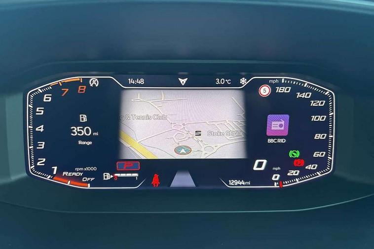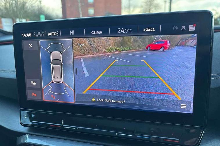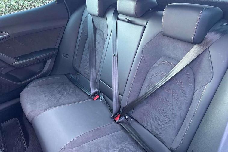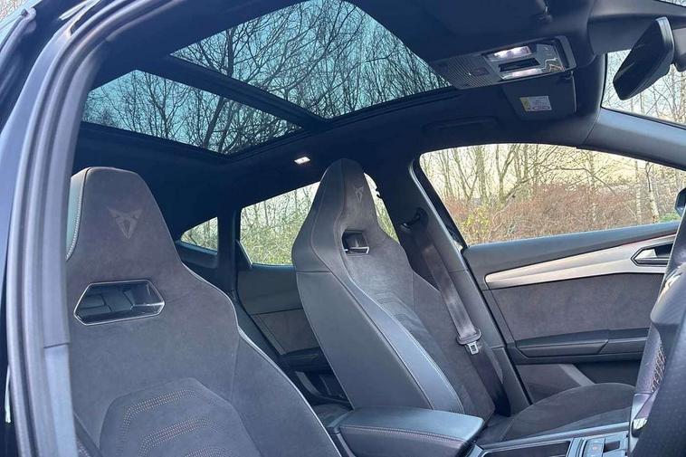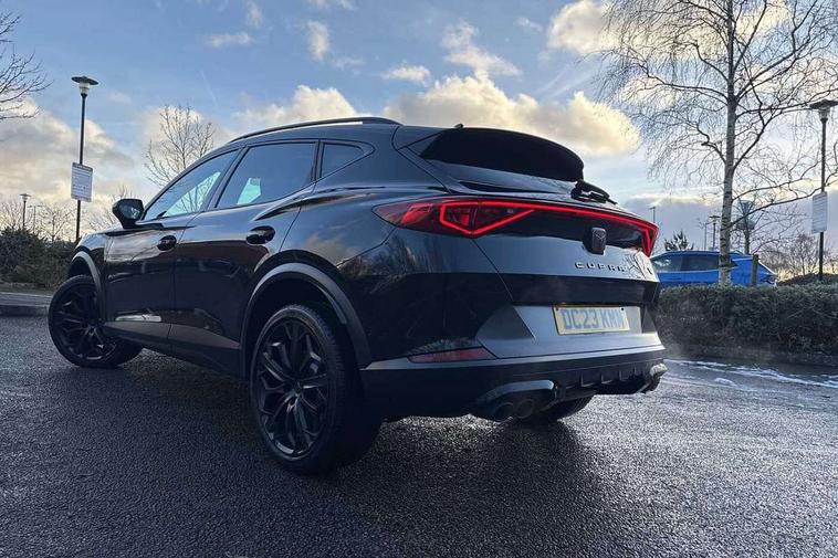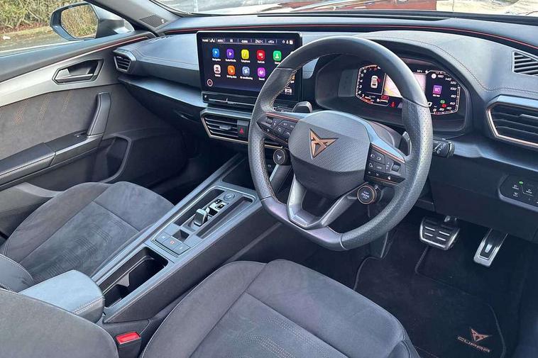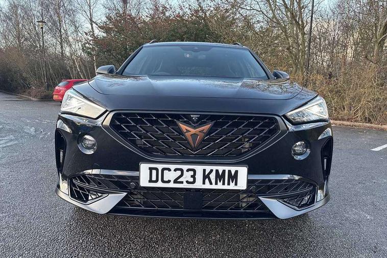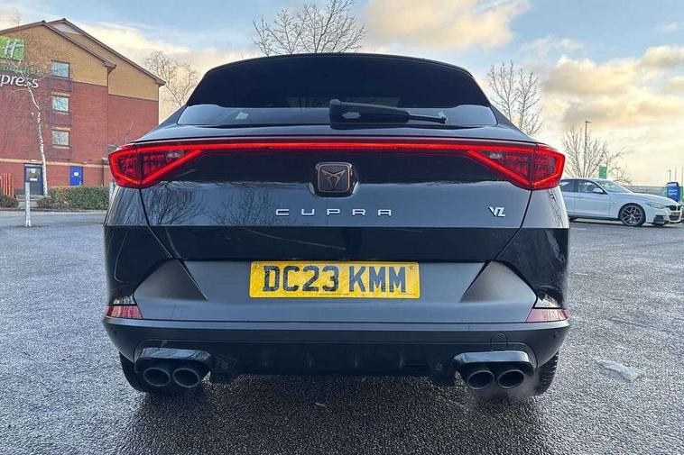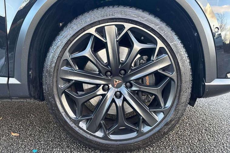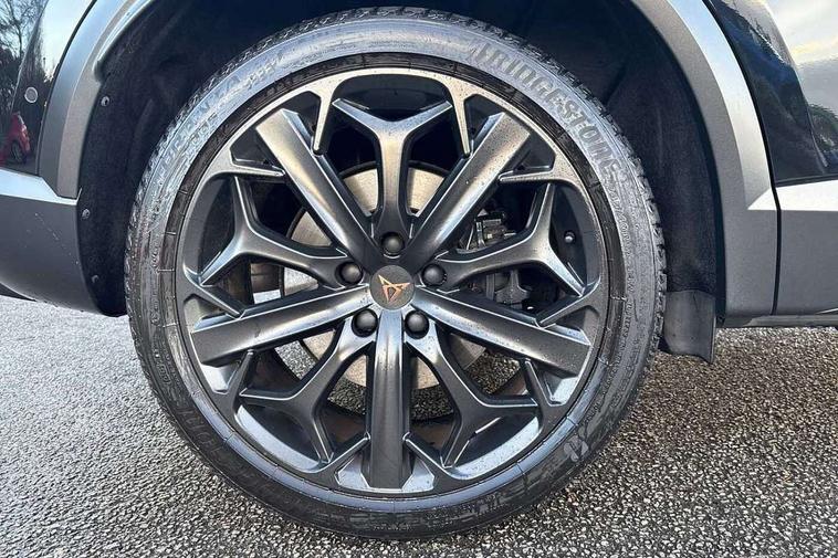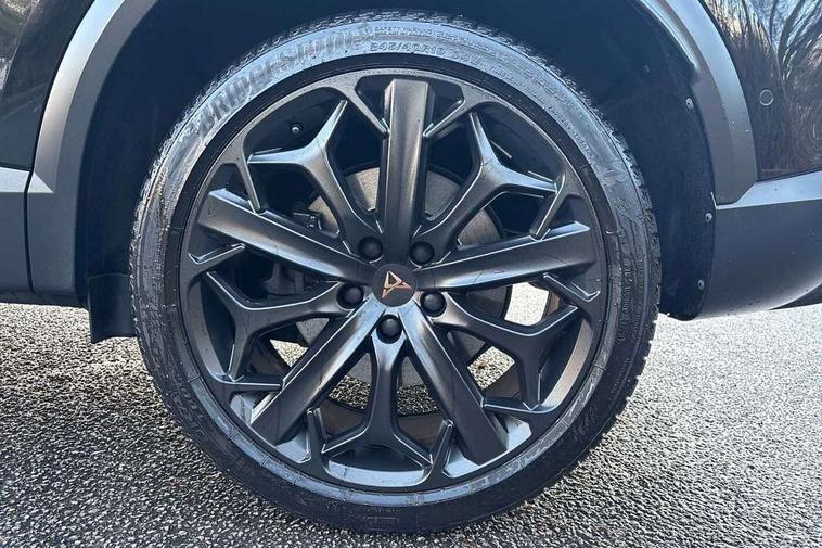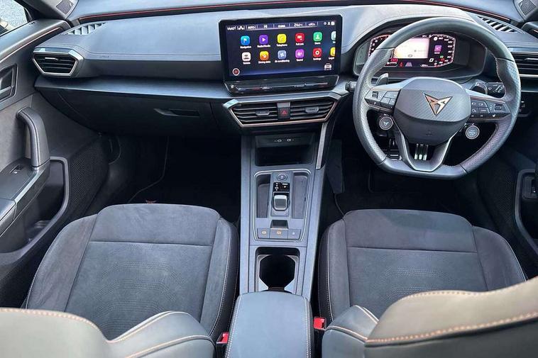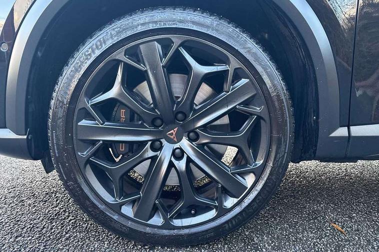 Digital cockpit and configurable dashboard, Driver alert system, Dynamic chassis control with driving profile selection (Comfort, Sport, CUPRA, Individual), Forward collision warning with automatic braking, Lane assist, Navigation system with 12'' Touchscreen Display, Park assist (inc front/rear parking sensors), Predictive adaptive cruise control with speed limiter, RPM, trip computer, outside temp gauge, instrument light brightness, low fuel warning light, lights on reminder, gearshift indicator, Service interval indicator, Speed sensitive power steering, Start/stop system with regenerative braking, Top view camera, Virtual pedal and electric tailgate, Voice control system, Wired Android Auto, Wireless apple carplay, Wireless phone charger, Electronic locking differential and dynamic traction support, Sports suspension with front shock absoption, 2 front and 2 rear USB type C sockets, Auxiliary input socket, Beats audio with 9 speakers plus subwoofer and 340W amplifier, DAB radio, Auto dimming rear view mirror, Body colour door handles, Body coloured bumpers, Cupra exterior black lettering, Daytime running light with automatic headlight control and coming home feature, Dynamic headlight range control, Electric front/rear windows, Electrically adjustable heated and folding door mirrors with memory function, Front fog lamps with cornering function, Front grill, cladding parts and exterior mirros housing painted in sport black matte, Gloss black roof rails and window surrounds, LED Taillights with dynamic indicator, Matrix LED headlights, Panoramic sunroof, Rain sensing wipers, Rear diffuser with twin exhaust pipe on each side, Rear side wing doors, Rear wash/wipe, Sports bumpers, Third brake light, Tinted rear windows, Welcome lights, 12v power supply in centre console, 12V socket, 12v socket in loadspace, 2 front and 2 rear reading lights, 230V socket, 3 seat bench in 2nd row, 60/40 split rear bench seat with armrest and mechanical seat release, Black headlining, Cupra sports pedals, Dinamica/leather upholstery + bucket seats, Dust/pollen filter, Electrically adjustable with memory function for driver seat, Front and rear head restraints, Front centre armrest, Heated front seats, Height/reach adjust steering wheel, Illuminated interior front door sills, Illuminated sunvisor with mirror, Isofix, Leather heated multi-function sports steering wheel with start stop, CUPRA mode button and gear shift paddles, Luggage tie-down hooks, Single front passenger seat, Three zone climate control with control panel in rear, Variable luggage/load compartment floor, Wraparound lighting, Safety and driving pack (XL) - Formentor, 3 point seatbelts on all rear seats, ABS, Brake control system - ESC and brake booster, Child proof door locks, Driver and front passenger airbags with front passenger airbag de-activation, Electronic parking brake, Front and rear disc brakes, Front side curtain airbags, Hill hold control, Public e-call, Seat belt reminder for front and rear seats, Tyre pressure monitoring system, Anti theft alarm system, Keyless entry and start system (KESSY), Locking wheel bolts, Copper and aluminium interior detailing, Leather dashboard, dinamic door insert and side trim panel, 19" Sport matt black alloy wheels, Tyre repair kit,