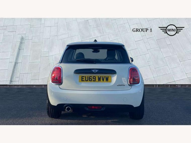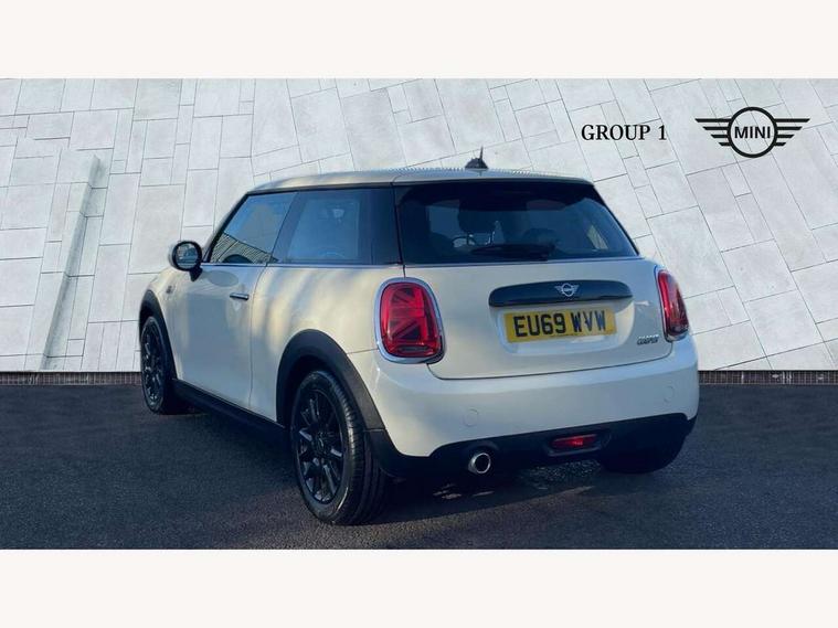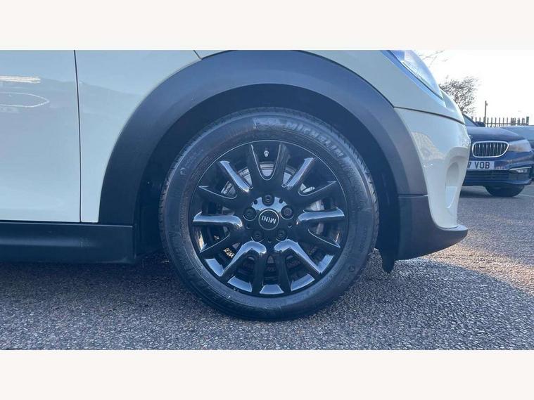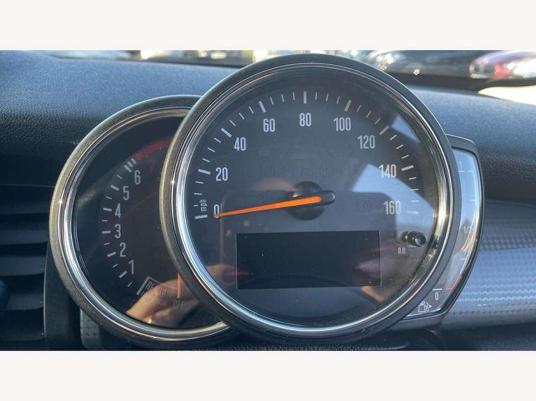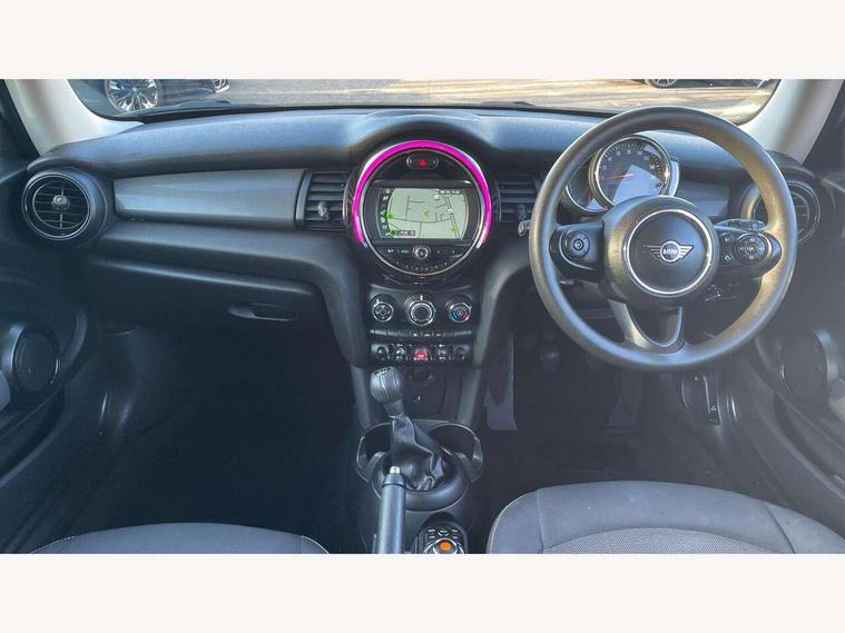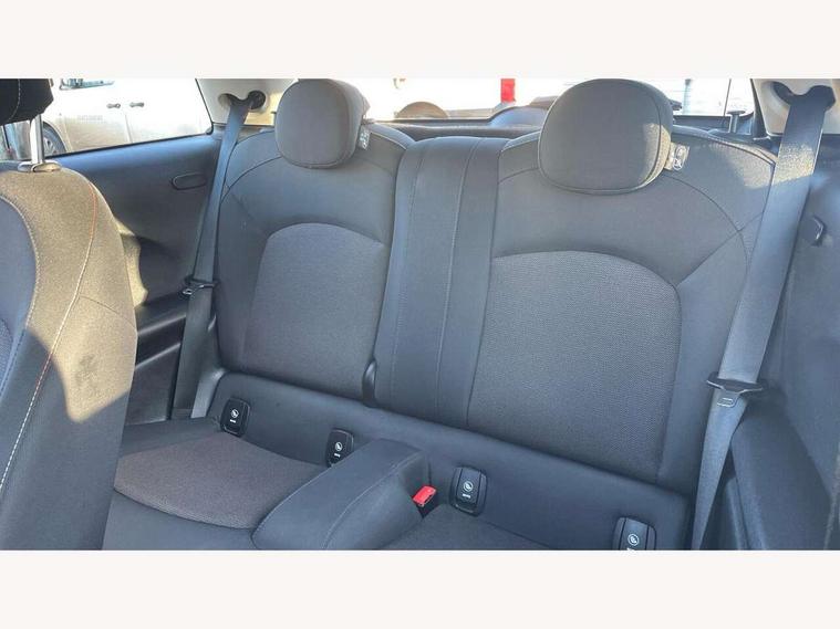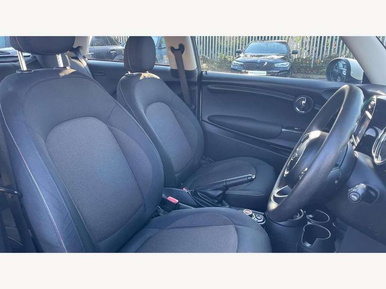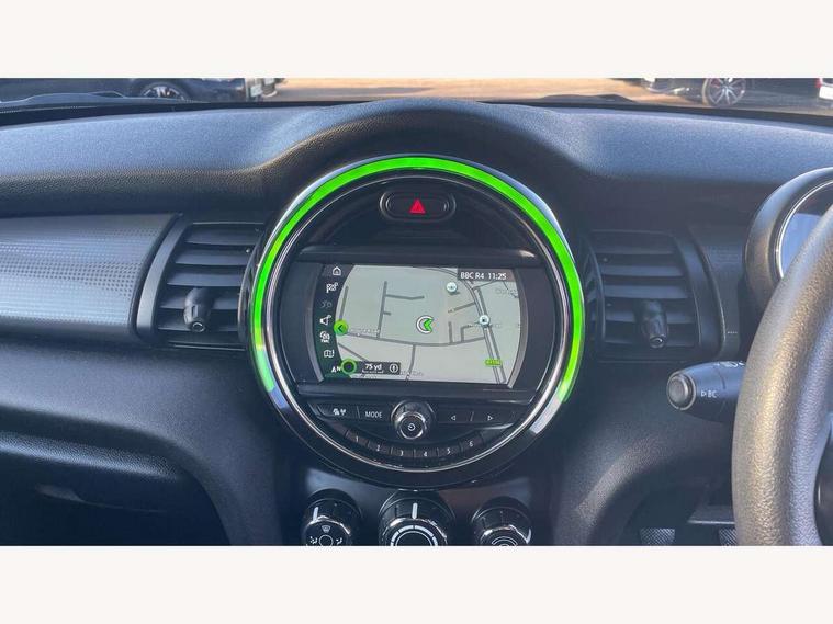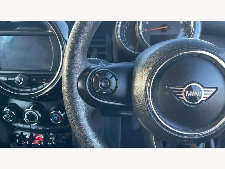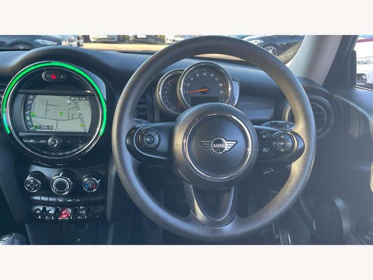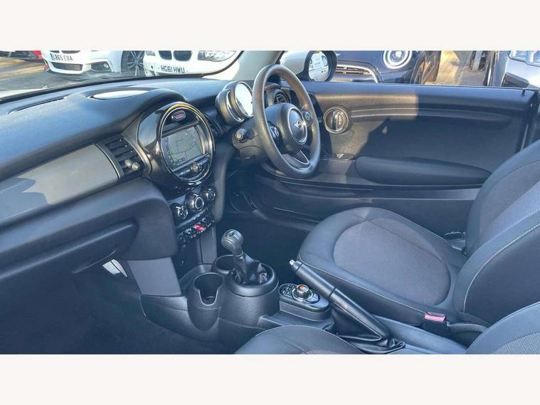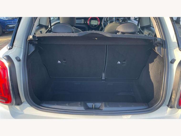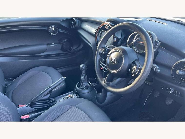 Automatic start/stop function with brake energy recuperation, Compatible mobile phone bluetooth with audio streaming, Electro-mechanical speed dependant steering assistance, Instrument cluster, Mini E-call, MINI TeleServices, On board computer, Service interval indicator, Double Vanos system, Fully variable valve control, High precision injection, 6.5" touchscreen with LED ring, FM tuner and DAB digital radio, Automatic headlight activation switch, Body colour fuel filler cap, Chrome border high gloss black slats radiator grille, Dynamic brake lights, Electric front+rear windows, Heated rear window, Heated windscreen washer jets, LED headlight with closed ring and daytime driving lights, Left exhaust tailpipe with chrome finisher, Metal door sill strips with MINI imprint, Model logo Cooper on right of tailgate, Rain sensor window wipers, Rear fog lights, Rear LED lights with union jack design, Rear window wiper, Side scuttle panel with integrated indicator, Sun/heat protection glass, White indicator lenses, 12V Accessory socket in centre console, 4 lashing eyes in luggage compartment, 60/40 split folding rear seat, Chrome interior highlights, Colour line - Carbon black, Cupholders, Front and rear head restraints, Front and rear isofix with front passenger airbag deactivation, Glove compartment, Height and length steering column adjustment, Interior lighting with 12 basic colours selectable via toggle switch in roof, Leather gearshift lever and handbrake gaiters, LED reading lights, vanity mirror lights, front foot well light and spotlight on front seats, Manual air conditioning, Mechanical seat adjustment, driver seat height adjust, forward/back and front seats backrest, Mini logo projection on floor from drivers exterior mirror, Multifunction steering wheel, Satellite grey headlining, Storage compartments in doors, Sunvisors with vanity mirrors, 3 point seatbelts on all four seats, 6 Airbags - front, side, head and seat belt tensioners, Anti-lock braking system (ABS), DSC - Dynamic Stability Control, Front and rear disc brakes, Hill start assist, Single tone fanfare horn, Tyre pressure monitoring system, Alarm system with tilt sensor, monitoring doors, bonnet interior and tailgate, Electronic vehicle immobiliser, Start/stop toggle with keyless go, Tool kit,