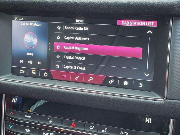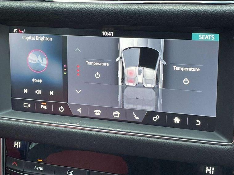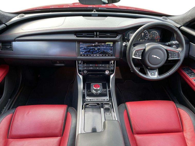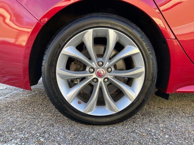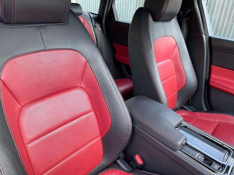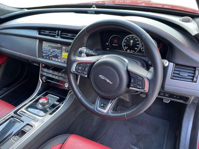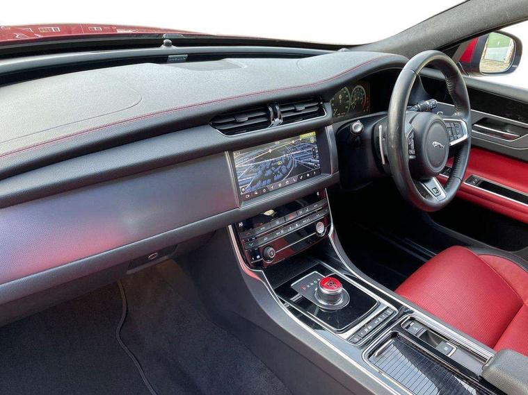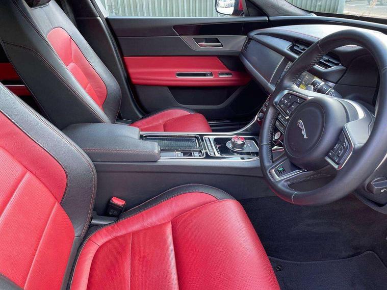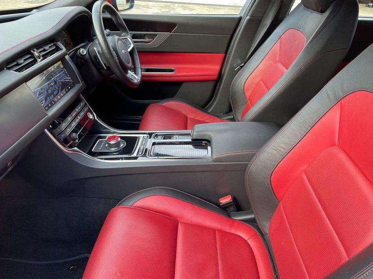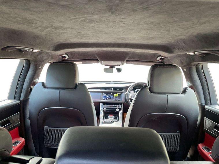 Analogue dials with 7" central TFT display, Bluetooth telephone connectivity, Electric power steering, Forward facing stereoscopic camera, Front parking aid, InControl remote premium, Instrument cluster with 5 TFT display, Jaguar Voice front, Lane departure warning system, Outside temperature gauge, Pro services and wifi hotspot, Rear parking aid, Service interval indicator, Traffic sign recognition with adaptive speed limiter, Trip computer, 8 speed automatic transmission, Self levelling rear air suspension, Bluetooth audio streaming, DAB Radio (Digital Audio Broadcasting), InControl app, InControl protect, InControl Wi-fi, USB and auxiliary socket, Acoustic windscreen, Approach lamps, Auto dimming rear view mirror, Automatic headlights, Blue tinted glass, Body colour door mirrors, Body coloured extended side sills, Boot mounted spoiler, Electric front/rear windows with one touch/auto up/down, Frameless auto dimming interior rear view mirror, Headlight power wash, Heat insulated glass, Heated rear window, LED tail lights, Metal load space scuff plates, R-sport body kit, R-Sport front bumper, Rain sensor windscreen wipers, Rear wash/wipe, Roof spoiler, Tailgate/boot lid spoiler, Trailer stability assist, 2nd row air vents, 3 rear seat head restraints, 40:20:40 split folding rear seats, Auxilliary 12V power socket, Bright metal foot pedals, Chrome seat switches, Front armrest, Front centre console storage box, Isofix child seat preparation, Jaguar sense, JaguarDrive selector, Loadspace cover, Loadspace rails, Multifunction R-sport steering wheel, Overhead console with sunglasses holder, Perforated grained leather upholstery with contrast stitching, Premium carpet mats, R-Sport branded soft grain leather steering wheel, Rear armrest with twin cupholders, Rear storage compartment, Satin chrome trunk finish, Sports seats, Sunvisors with illuminated vanity mirrors, Tie down hooks in luggage area, Twin front cupholders, ABS+EBA, Anti-whiplash front headrests, Autonomous emergency braking, Brake pad warning light, Driver/Front Passenger airbags, DSC - Dynamic Stability Control, Electronic parking brake, Emergency brake assist, Front and rear curtain airbags, Front/rear seatbelt pre-tensioners, Hill start assist, Pedestrian contact sensing, Power child locks, Seatbelt warning, Side airbags, Three 3 point rear seatbelts, Torque vectoring brake, Traction control, Tyre pressure monitoring system, Deadlocks, Drive away door locking, Immobiliser, Keyless Start, Locking wheel nuts, Perimeter alarm, Remote central locking, Dark morse code aluminium instrument panel finisher, Luxtec wrapped instrument panel,