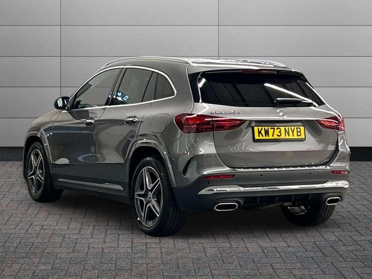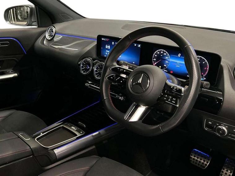 10.25 inch touchscreen central media display, 10.25" Digital instrument cluster display screen, Attention assist, Direct steering, DYNAMIC SELECT with a choice of driving modes (ECO, Comfort, Sport and Individual), ECO start/stop function, Fluid level warning indicator for fuel, oil, coolant and washer fluid, Hard-disk navigation, Hey Mercedes Voice activation, Lamp failure indicator, Lane keeping assist (LKA), Mercedes me connect including emergency call system, accident recovery, breakdown management and maintenance, Mercedes me remote services, Multi function trip computer, Outside temperature gauge, Owners manual and service booklet in English, Pre-installation of private car share, Radio aerial integrated into front and rear windshields, Service indicator (ASSYST), Smartphone integration with Apple CarPlay and Android auto, Speed limit assist, Status display for rear seat belts in instrument cluster, Wireless charging, Lowered comfort suspension, Rear axle multi-link, Bluetooth connectivity including audio streaming, DAB Digital radio, MBUX multimedia system, Media interface, Mercedes-Benz sound system - 100W, Pre installation for Mercedes Benz Link, Adaptive brake lights, Adaptive highbeam assist, Aerial for GPS, Aluminium roof rails, AMG front apron with front splitter in the colour of the vehicle with chrome trim element, AMG rear apron with visible tailpipe trim and chrome trim element, AMG specific/dual flow exhaust pipes in chrome (non-functional), Automatic headlamp activation, Beltline trim and window line trim strip in high gloss aluminium, Black grained side sill trim with chrome inlay, Body coloured door handles with chrome insert for keyless entry, Car wash function, Dark privacy glass from B-pillar backwards, Electric front windows, Electric rear windows, Electrically adjustable and heated door mirrors with integrated LED indicators, Exhaust system with 2 Visible tailpipe trim elements and rear apron with trim in chrome, Heat insulating dark tinted glass, Heated glass rear windscreen + timer control, Heated windscreen wash system, Interior mirror with black reading lamps and frameless, LED high performance headlamps with integrated LED daytime running lights, LED tail lights, LED third brake light, Radiator diamond grille with chrome pins and central Mercedes star, single louvre in matt grey with chrome inserts and black highlights, Rain sensor windscreen wipers, Rear fog lights, Rear side wing doors, Rear wiper, Roof spoiler, Wheel arch liners in the colour of the vehicle, 12V power socket in centre console, 3 seat bench in 2nd row, 3 spoke flat bottom multifunction nappa leather steering wheel, 4 way lumbar support, 40:20:40 split folding rear seats with backrest, Adjustable head restraints, Air conditioning - air vents with silver chrome surround, Air conditioning - One zone thermatic automatic climate control with automatically controlled air distribution, AMG floor mats, Auto Mercedes-Benz child seat recognition sensor, Black roof lining, Courtesy light in boot, Front centre armrest with stowage, Galvanished gear shift paddles on steering wheel in silver chrome, Heated front seats, Illuminated glovebox, Interior lighting - 64 colour Ambient lighting, Luggage net on driver/front passenger seat backrest, Manually height and reach adjustable steering column, Single front passenger seat, Sports pedals in brushed stainless steel with black rubber studs, Sports seats, Sports steering wheel, Stowage compartment in centre console, Stowage compartment with retractable cover, Sunvisors with illuminated vanity mirrors, Twin front cup holders, Two outer rear seat isofix and top tether child seat fixing points, Comfort seat pack - GLA Class, Interior lighting with light and sight pack - GLA, Keyless go comfort package - GLA, Mirror pack - GLA Class, Off road engineering pack - GLA, Parking package with reversing camera - GLA, USB package plus - GLA, 3 rear 3 point seatbelts, ABS with Brake Assist, Active bonnet pedestrain safety measure which detects an impact and raises bonnet by 65mm, Active brake assist includes forward collision warning system with autonomous braking, Adaptive brake assist with hold function and hill start assist, Black seatbelts, Bonnet with power domes, Brake pad wear warning indicator, Childproof locks manually operated for rear doors and electrically operated for rear power windows, Crash responsive emergency lighting, Driver and passenger head and side airbags, Drivers knee airbag, Dual stage driver/passenger airbags, Electronic parking brake, ESP curve dynamic assist, ESP with ASR, Front and rear seatbelt reminder, Front brake callipers with Mercedes Benz logo lettering on front, Front passenger seat occupancy sensor, Internally ventilated brakes with perforated brake discs at the front, Sports braking system, Tyre pressure monitoring system, Warning triangle and first aid kit, Window airbags, Alarm system with immobiliser and interior protection -Thatcham category 1, Guard 360 degree vehicle protection, Keyless Go starting function, Remote central locking and crash sensor with emergency opening function, Vehicle key with decorative surround in chrome, Carbon structure trim, 19" AMG 5 twin spoke light alloy wheels aerodynamically optimised and painted in tantalite grey with a high-sheen finish RTF, Summer tyres, Tirefit tyre sealant kit,