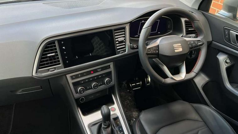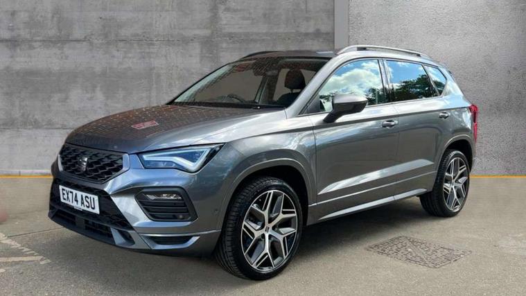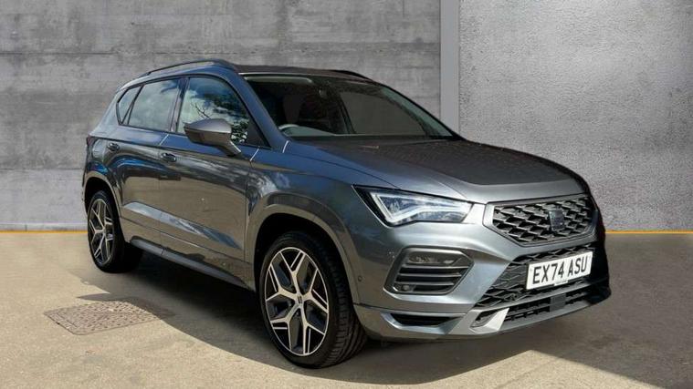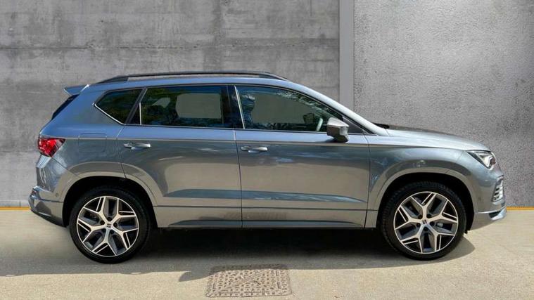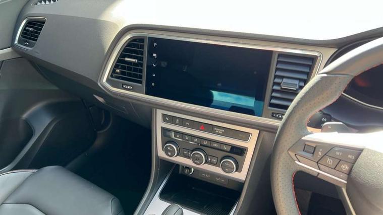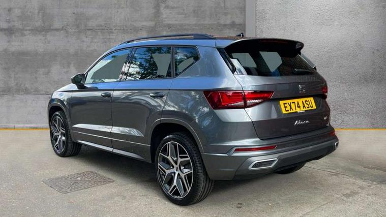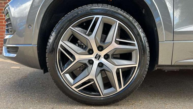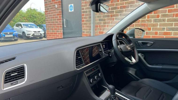 10" Digital cockpit, Cruise control system with speed limiter, E-call, Outside temperature gauge, Progressive power assisted steering, SEAT drive profile with driving experience button - Normal, Sport, Eco and Individual mode, gearshift, steering and throttle response, Self parking functionality (includes front and rear parking sensors), Start/stop system, Tailgate, Trip computer, wired and wireless full link smartphone integration, Wireless phone charger, Steering wheel mounted audio/phone controls, Black roof rails, Black side window trim, Body colour bumpers, Body coloured wheel arch surrounds, Chrome front grille frame, Dark tinted rear windows, Daytime running lights, Door mirrors with welcome light silhouette, Dynamic headlight range control with self adjusting whilst driving, Electric adjustable/heated/folding door mirrors, Front and rear electric windows, Full LED headlamps with lens and LED front fog lamps with cornering function, Illuminated aluminium front door sill, LED 3rd brake light, LED rear tail lights with dynamic indicators, Rear exhaust tailpipe, Rear fog lights, Rear side wing doors, Rear wash/wipe, Roof spoiler, Variable front intermittent wipers, 12V socket in front, 3 seat bench in 2nd row, 60/40 split folding rear seat, Aluminium pedals, Dual zone climate control, Electric adjustable driver seat with memory function, Front and rear head restraints, Front centre armrest, Front seat back storage pockets, Heated front seats, Height adjustable passenger seats with lumbar adjustment, ISOFIX points in outer rear seats with top tether anchorage points, Leather sports steering wheel and gear knob, Leather upholstery with front comfort seats, Manual lumbar support on driver seat, Rear armrest and easy back seat release mechanism from boot, Single front passenger seat, Steering wheel mounted gearshift paddles, Convenience pack - Ateca, Interior lighting pack - Ateca, Navigation system pack with DAB - Ateca, Safety and driving pack with attention and drowsiness assist - Ateca, 3x3 point rear seatbelts, ABS, Traction control system (TCS), Electronic stability control (ESC) and Electronic differential lock system (XDS), Airbags - Driver and front passenger airbag with deactivation, front side, two curtain and driver's knee airbags, Electric parking brake with auto hold function, Front and rear seatbelt reminder, Front assist with autonomous emergency braking, Hill hold control, Manual rear child locks, Single tone horn, Tiredness recognition system, Tyre pressure monitoring system, Alarm, Keyless entry, Locking wheel bolts, Remote central locking, Chrome interior detailing, 19" Exclusive machined alloy wheels with decorative inserts 36/7 in cosmo grey,