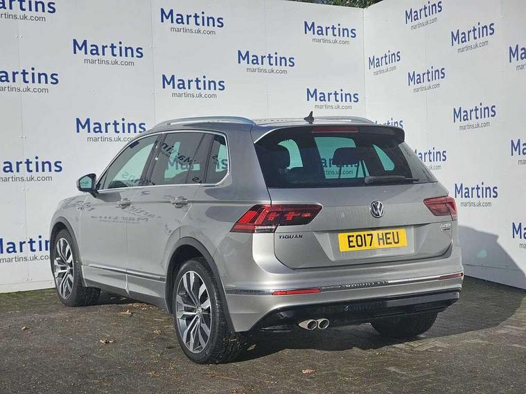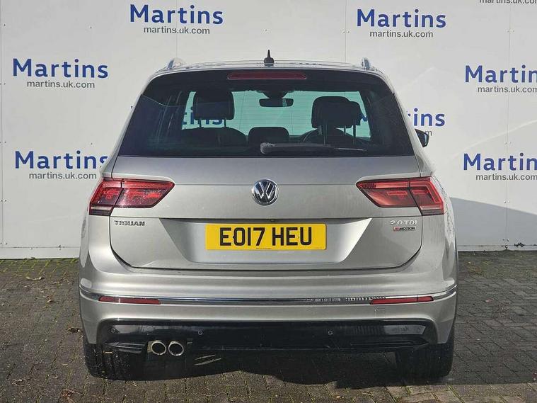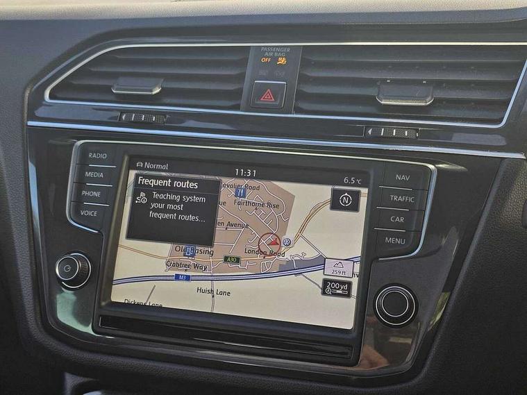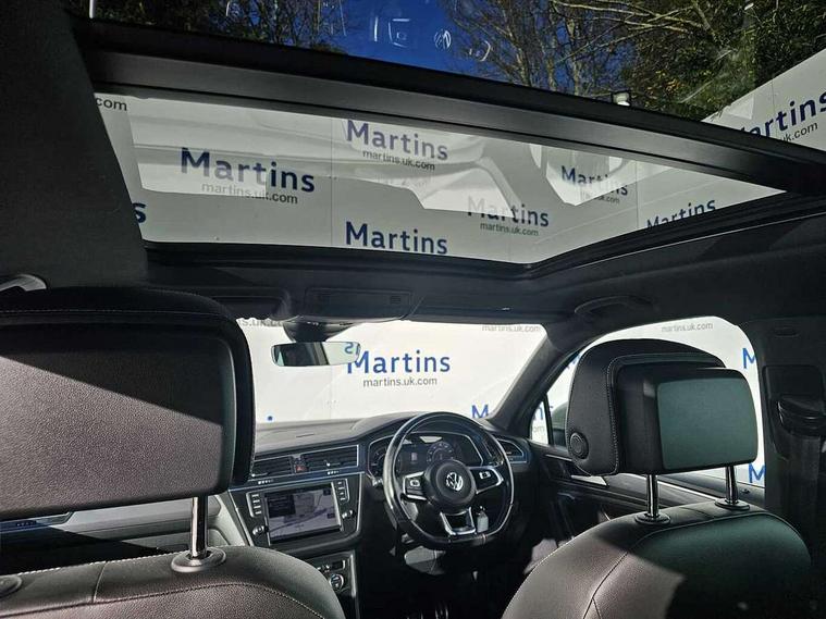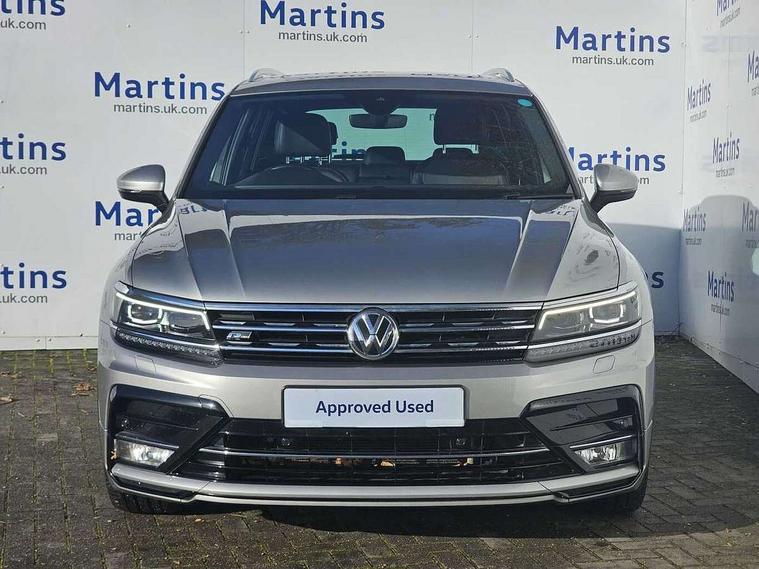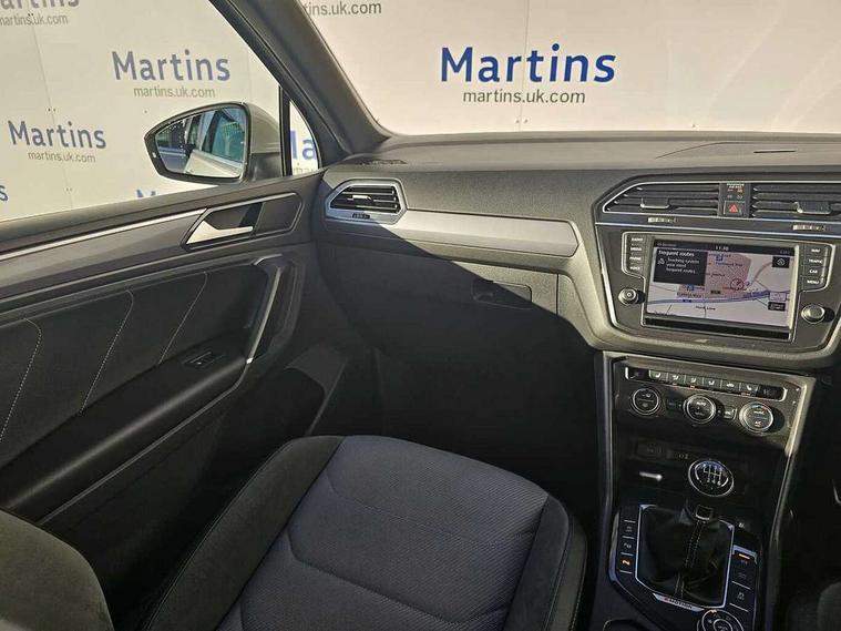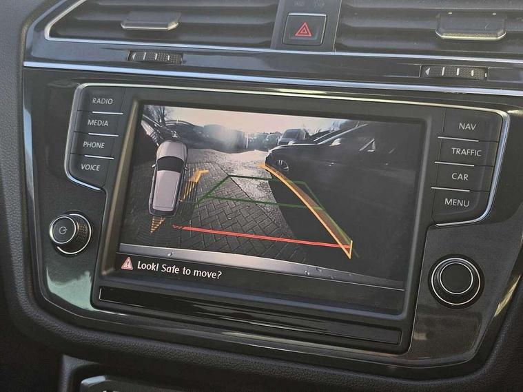 Active information display, Adaptive cruise control, App-Connect, Bluetooth phone integration system, Instrument cluster, Lane assist, Low washer fluid warning light, Outside temperature display, Service interval indicator, Warning lights, Diesel particulate filter, Sports suspension, Aux-in socket, DAB Digital radio, SD card slot, USB connection, Auto dimming interior mirror, Body colour door handles, Body colour door mirrors, Body colour rear spoiler, Body coloured bumpers, Chrome side window surrounds, Chrome trimmed radiator grille, Coming/leaving home lighting function, Dual chrome exhaust, Electric folding door mirrors, Electric heated + adjustable door mirrors, Electric panoramic sunroof with sunblind, Front and rear electric windows, LED headlights with dynamic light assist daytime running lights and cornering front fog lights, LED rear lights, Piano black rear diffuser, R Line body kit, Rain sensor windscreen wipers, Silver roof rails, Silver under body guard, Tinted windows (B pillar backwards), Twin trapezoid chrome exhaust pipes, 3 rear headrests, 3 zone climate control, 4 load lashing points, 40:20:40 split folding rear seats, Bag hook in luggage compartment, Black headlining, Driver + front passenger lumbar support, Front + rear carpet mats, Front centre armrest with 12v socket, Front centre armrest with storage + rear 2 air vents + cupholders, Front seatback folding tables, Height adjustable front seats, Height/reach adjust steering wheel, Illuminated driver/passenger vanity mirrors, Illuminated scuff plates, Interior light with delay, Isofix Preparation 2 Rear child seats, Leather gear knob, Leather multifunction steering wheel, Lockable cooled glovebox, Luggage compartment lighting, Map pockets on front seats, Rear cupholders, Removable luggage cover, Sliding/reclining rear seats, Stainless steel pedals, Storage compartment in driver's door, Storage compartment in passenger's door, Storage drawers under front seats, Storage tray on dashboard, Sunglasses storage, Variable boot floor, Ambient lighting pack - Tiguan, 3 rear 3 point seatbelts, ABS+EBD+Brake assist, Active bonnet, Active pedestrian safety system, Curtain airbags, Driver/Front Passenger airbags, Driver/Passenger whiplash optimised head restraints, Drivers knee airbag, Electronic parking brake with auto hold, ESP with EDL + ASR, First aid kit, Front assist including city emergency braking, Front side airbags, Head airbag system, Height adjustable front 3 point seatbelts + pretensioners, Hill hold control, Passenger airbag deactivate switch, Passenger knee airbag, Pre crash system, Rear side airbags, Seatbelt warning lamp and buzzer, Warning triangle, Alarm with interior protection, Electronic engine immobiliser, Chrome door trim inserts, Piano black interior trim, 20" Suzuka alloy wheels + anti theft wheel bolts, Steel space saver spare wheel,