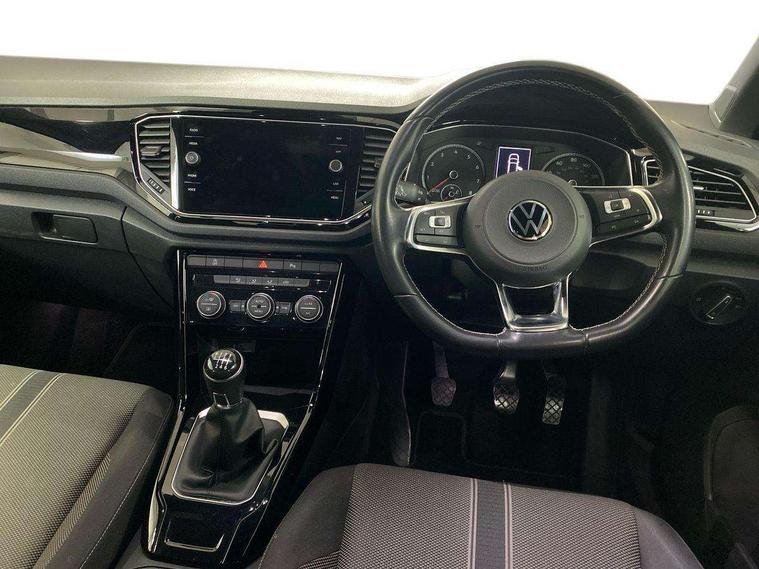 'Lights On' Reminder warning buzzer, Adaptive cruise control, Bluetooth telephone and audio connection for compatible devices, Car information display, Driver tips and journey analysis, Emergency call service, Lane assist with warning text instrument cluster, Modified key software - reduce switch off time for key status change to Long no motion, Multifunction camera, Multifunction computer with visual gear change recommendation for fuel consumption, Service interval indicator, Think blue trainer driver tips and journey analysis, Warning sound and light for doors and tailgate open, Warning sound and light for front seatbelts unfastened, Wireless app connect for apple carPlay, Battery regeneration during braking, Start/stop function with battery regeneration, DAB Digital radio, Diversity antenna for FM reception, Multi device interface (MDI) with USB connection, Music playback - MP3, WMA and AAC files, Premium USB cable in choice of either Apple or Android smartphone compatibility, SD card slot, Simultaneous pairing of 2 compatible mobile devices, Single CD player, glovebox mounted, SMS functionality - read, compose and send SMS messages using touch-screen display, Storage compartment with longitudinal and height adjustable in armrest and two rear air vents, Title and cover art display, USB-C Interface and USB charging socket, Auto dimming interior rear view mirror, Automatic coming/leaving home lighting function and daytime running lights, Automatic hazard lights activation under emergency braking, Black grained lower door protectors, Black grained wheel arches, Black roof rails, Body colour door handles, Body colour sports bumpers with silver metallic underbody fascia, Body coloured bumpers and radiator grille with chrome trim and front fog lamps with chrome bezel, Chrome trim on upper and lower radiator grille, Dusk sensor, Electrically foldable, adjustable and heated door mirrors with puddle lights and reverse activated kerb-view adjustment on passenger's door mirror, Exhaust tailpipes in black, External USB type C socket and charging sockets, Front and rear electric windows, Front windscreen wiper with intermittent wipe and 4 position delay, Fully galvanised body, Heated rear window, High level 3rd brake light, LED headlamps with automatic range adjustment and unique signature LED separate daytime running lights, LED rear number plate lights, LED tail lamp rear comination lamps, Privacy glass, Rain sensor, Rear tinted glass from B-pillar backwards approx 65% tinted, Rear wash/wipe with intermittent wipe setting, Trim strips on grille and vehicle side, Volkswagen roundel, 12V socket in centre console storage area, 3 rear head restraints, 4 load lashing points in luggage compartment, Black roof lining, Climate control - 2 zone electronic air conditioning with automatic air recirculation and allergy filter, Door and side trim panel, Drawer under drivers seat, Front centre armrest, Front cupholders x 2, Front seat back storage pockets, Glovebox, Height adjustable front seats, Height/reach adjust steering wheel, Instrument lighting, white adjustable panel illumination, Interior light in footwell, Isofix easy fit child seat preparation for 2 outer rear seats, LED interior light with switch off delay/dimmer and 2 front/rear LED reading lights, Load through provision with single cup holder when folded down, Luggage compartment cover, removable, Luggage compartment lighting, Split folding rear seat backrests with centre armrest, Storage compartment in left and right luggage area, Storage compartment in rear doors, Storage compartments in driver and front passenger doors, Sunvisors with illuminated vanity mirrors, Three spoke multi-function leather trimmed steering wheel and gearknob, White ambient lighting, Black decal on C-pillar pack - T-Roc, 3 rear three point seatbelts, ABS, Curtain airbags, Driver and front passenger safety-optimised head restraints, Drivers and front passengers airbags with passengers deactivation switch, Drivers seatbelt reminder, Electronic parking brake with auto hold, Electronic stability control (ESC) includes ASR, EDL, EDTC and trailer stabilisation function, Front assist with city emergency braking and pedestrian monitoring, Front seat side impact airbags, Predictive pedestrian protection, Rigid safety cell with front and rear crumple zones, Single tone horn, Three point height adjust front seatbelts + pretensioners, Tyre pressure loss indicator, Ventilated front and rear disc brakes, Volkswagen roadside assistance, Alarm with remote central locking and interior protection, Electronic engine immobiliser, Remote central locking with SAFELOCK, radio remote control with 2 remote control folding keys, Black decorative trims, Piano black decorative inserts in dash, centre console and door panel, 18" Arlo black diamond turned surface alloy wheels with low rolling resistance tyres and anti theft wheel bolts,