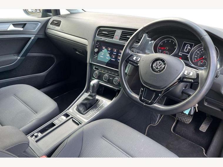 'Lights On' Reminder warning buzzer, ACC - Adaptive cruise control with front assist, forward collision warning, distance monitoring, city emergency brake and speed limiter, Bluetooth telephone and audio connection for compatible devices, Brake pad wear indicator warning light, Driver alert system, Driver profile selection, Driving Mode Selection with four preset modes - Eco, normal, sport or individual modes, Instrument cluster in white, Multifunction computer with visual gear change recommendation for fuel consumption, Power assisted speed sensitive electro-mechanical steering, Push tank flap, Speed limit display, Speedo, rev counter, electronic odometer, trip, service interval display, exterior temperature and fuel gauge, Stop/start system, Warning buzzer and light for front seatbelts unfastened, Battery regeneration during braking, XDS electronic differential lock, Composition media system, DAB Digital radio receiver, Driver Personalisation profile selection, MP3/WMA compatability, Multi device interface (MDI) with USB connection, Personalisation 1.1 profile for media, Premium USB cable in choice of either Apple or Android smartphone compatibility, SD card slot, SMS Functionality, USB and SD card connectivity, Black front air intake and radiator grille with chrome insert, Black rear diffuser, Body colour bumpers, Body colour door handles, Body colour door mirrors with integrated indicators, Dusk sensor + automatic driving lights, Electric front windows, Electric rear windows, Electrically adjustable and heated door mirrors, Fully galvanised body, Heated rear windscreen, Hidden exhaust pipe, High level 3rd brake light incorporating LED Technology, LED daytime running lights, LED front fog lights with static cornering light function, Rear fog lamp, Rear tinted glass 65% light absorbing from B pillar backwards, Rear window aerial, Rear window wash/wipe with intermittent wipe, Reflectors in all doors, Tailgate with integrated rear roof spoiler, Windscreen wipers/ intermittent wipe + 4 position delay, 12V socket in luggage compartment, 3 rear headrests, 4 load lashing points in luggage compartment, 60/40 split folding rear seat backrest, Auto fold down lever in rear seat backrest, Bag hook in luggage compartment x 2, Cooled glovebox, Cupholder cover, Dust/pollen filter, Front and rear reading lights incorporating LED technology, Front centre armrest with storage compartment and two rear air vents, Front seat back storage pockets, Grab handles front x 2, rear x 2 with integrated coat hooks, Height and reach adjustable steering wheel, Illuminated vanity mirrors, Instrument lighting white adjustable panel illumination, Interior light delay, Isofix preparation for 2 rear child seats, Load through provision with rear centre armrest and cupholders x2, Luggage compartment lighting, Overhead storage box, Passenger underseat drawer, Pearl grey headlining, Storage box in luggage compartment, Storage compartment in roof console with cover, Storage compartments in centre console, Storage compartments in front doors, Storage compartments in rear doors, Stowable luggage compartment cover, Sun visors, Variable boot floor, height adjustable and removable, Convenience Pack - Golf, Light and Sight pack - Golf, Mirror pack - Golf, 3 rear three point seatbelts, Airbags - Driver's and front passenger's, curtain airbag, Driver's knee, front side impact and passenger's airbag deactivation switch, Anti-lock Braking System (ABS) with Hydraulic Brake Assist (HBA), Automatic post collision braking system, Child locks on rear doors, Driver/Passenger optimised head restraints, Electronic parking brake with auto hold, Electronic stability control (ESC) including Electronic differential lock (EDL) and ASR (Traction control) with deactivation via infotainment system, Front ventilated disc brakes and rear disc brakes, Pre crash preventive occupant protection, Three point height adjustable front seatbelts with tensioners, Tyre pressure loss indicator, Alarm with interior protection and deactivation via infotainment system, Electronic engine immobiliser, Remote central locking with 2 remote folding keys, Brushed dark silver decorative inserts in dash and door panels, Chrome plated air vent surround, Chrome plated electric mirror adjustment light switch surround, Polar night black centre console, Steel space saver spare wheel,