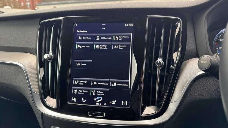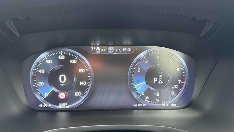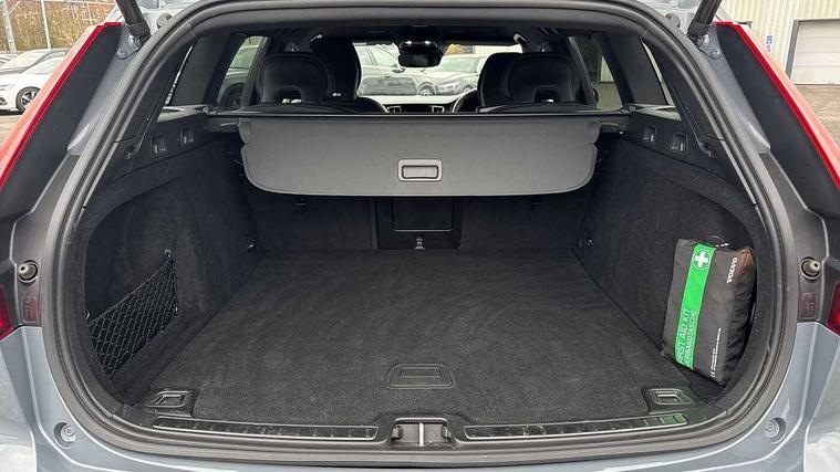 12.3" Active TFT crystal driver's instrument display, 9" centre console touch screen, Adjustable steering wheel force, Bluetooth handsfree system, Drive mode settings, Driver alert control with lane keeping aid, E-call, Front and rear park assist, Information centre, Oncoming Lane Mitigation, Sensus navigation with European mapping and traffic information, Service interval indicator, Speed limiter, Speed sensitive steering, Trip computer, Voice activated control for key functions, Volvo on call app, Lowered sports chassis, DAB Digital radio, Adaptive brake lights with high level LED brake lights, Auto dimming interior mirror, Automatic headlight levelling system, Automatic LED Headlights + Active high beam incorporating daytime running lights, Body colour bumpers, Colour coordinated auto folding and heated power door mirrors, Dark tinted windows for rear side windows and cargo area, Dual integrated exhaust pipes with high gloss black surround, High gloss black door mirrors and window surround, High gloss black mesh front grille with high gloss black surround, Home safe and approach lighting, Integrated roof rails in high gloss black, Power front and rear windows, Rain sensor with automatic windscreen wiper activation, Rear side wing doors, Rear wiper, Roof antenna, Roof spoiler, Visible VIN plate, 12V socket in front + tunnel console and cargo area, 3 seat bench in 2nd row, A-pillar parking ticket holder, B Pillar ventilation, Bright metal luggage compartment threshold, Cargo load hooks, Centre console cupholders, Charcoal headlining, Contour sports seats with nappa leather/textile upholstery, Extended front seat cushions, Floor mats, Front footwell illumination, Front head restraints, Front reading lights + Theatre lighting and centre armrest storage illumination, Front/rear door pockets and front cupholder illumination, Glovebox compartment with illumination, Heated front seats, Height/reach adjustable steering column, High gloss black steering wheel remote infotainment controls, Illuminated vanity mirrors + ticket holder, ISOFIX attachment on outer rear seats, Load cover, Load protection net, Luggage compartment illumination, Multi directional lumbar support, Multicolour theatre lighting and puddle lights, Rear armrest with storage + cupholders, Rear footwell and side step illumination, Single front passenger seat, Sport leather gear knob, Sports pedals, Tailgate illumination and ambient door lighting, Tailored sports steering wheel, Underfloor cargo storage, Versatile split folding rear seat - 60/40, WHIPS - Whiplash Protection System, 5 x 3 point seatbelts, City safety with steering support with Pedestrian + cyclist + large animal detection + front collision warning with full auto brake, Dual stage driver/passenger airbags, First aid kit, Hill start assist, IC (Inflatable Curtains) - Full Length, Passenger airbag cut-off switch, Power parking brake with auto hold function, Road sign information display, Run off Road Mitigation, Run off Road Protection, Seatbelt reminder and pretensioners for all seats, SIPS (Side Impact Protection System), SIPS airbags, Slippery road and hazard light alert, Stability and Traction Control with Spin control, Engine Drag Control and Corner Traction Control, Tyre pressure monitoring system, Vehicle deceleration control with Anti-lock Brake System, Electronic Brake Distribution and Emergency Brake Assist, Warning triangle, Anti-theft alarm including immobiliser/volume sensor + level sensor, Care key with user defined top speed, Key integrated remote control central locking + fuel flap with deadlocking system and auto open/close power windows, Keyless drive (incudes keyless entry and start) with remote tag and handsfree tailgate open/close, Locking wheel nuts, Private locking for tailgate, Metal mesh inlays,