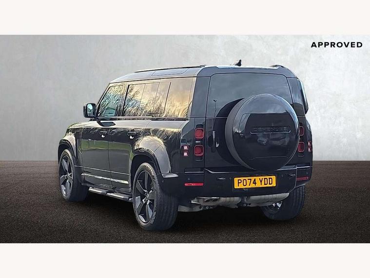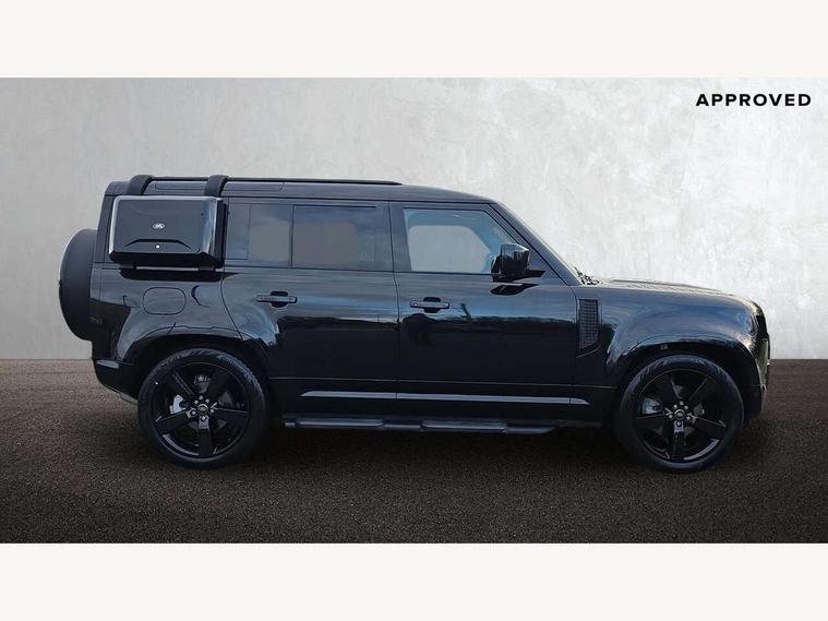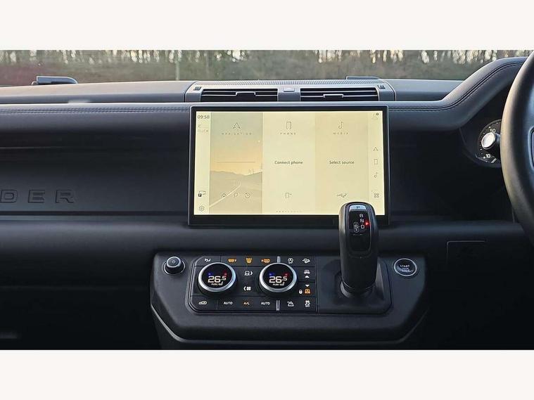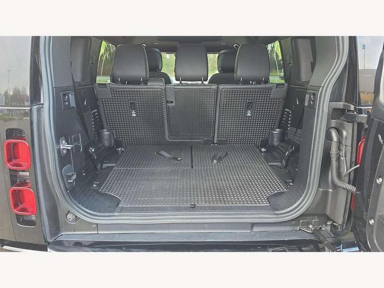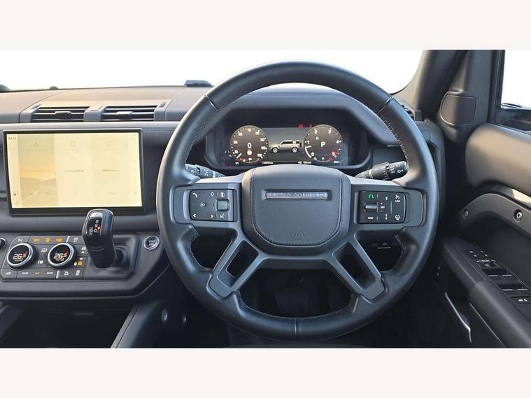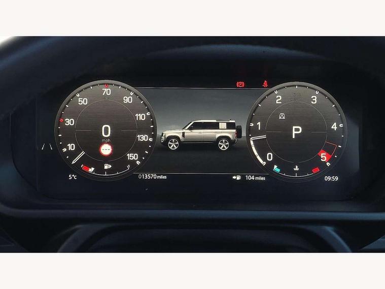 1 x USB-C (power only) & 1 x USB-C (power & data) in Row 1, 2 x USB-C in Row 2, 11.4" touchscreen, 2 x USB-C in Row 3, 360 degree parking aid, 3D Surround Camera with 360 View, 180 Rear View, Front Traffic Detection, Forward Vehicle Guidance, Tow Hitch Assist and clear sight Ground View, Adaptive cruise control, Android Auto, Apple CarPlay, Blind spot assist, Bluetooth system, Brake pad wear indicator, Clear exit monitor, Connected navigation pro, Driver condition monitor, Electric power assisted steering (EPAS), Interactive driver display, Lane keep assist, Push button start, Rear collision monitor, Rear traffic monitor, Traffic sign recognition with adaptive speed limiter, Trip computer, Wireless device charging, 8 speed automatic transmission, All wheel drive system, Twin speed transfer box, DAB Radio (Digital Audio Broadcasting), Meridian 700w surround sound audio system with 15 speakers, Pivi pro connected, Automatic headlight levelling, Automatic headlights, Black exposed rear recovery eyes, Body coloured bonnet, Centre high mounted stop light, Electric heated/power fold door mirrors with approach lights and auto dimming driver side, Electric windows with one touch open/close and anti-trap, Follow me home lighting, Front fog lights, Heated rear window with timer, Heated windscreen, Illuminated metal treadplates with brand name script, LED tail lights, Matrix LED headlights with signature DRL, Privacy glass, Puddle lights, Rain sensing windscreen wipers, Rear fog lights, Rear side wing doors, Rear wiper, Side hinged tailgate, Sliding panoramic roof, Standard tail door, Trailer stability assist, X-Dynamic badge, 12V power socket in loadspace, 2 seat bench in 3rd row, 3 seat bench in 2nd row, Alpine lights, Configurable cabin lighting, Durable rubber cabin flooring, Durable rubber loadspace flooring, Electric reach + rake adjustable steering column, Electrically adjustable steering column, Extended leather upgrade, Footwell lights, Front head restraints, Front passenger isofix child seat attachment, Heated steering wheel, Loadspace cover, Loadspace Hook, Multifunction steering wheel, No flat load floor storage, Overhead stowage for sunglasses, Rear headrests, Rear ISOFIX, Rear reading lights, Single front passenger seat, Soft close tail door, Storage glovebox, Sunvisors with illuminated vanity mirrors, Twin front cupholders, Air suspension pack - Defender SE/HSE/X-Dynamic SE/X-Dynamic HSE, Non-smoker package, Online pack with data plan - Defender, 7 three point seatbelts, ABS, Brake hold function, Cornering brake control (CBC), Customer configurable autolock, Driver and passenger airbags, DSC - Dynamic Stability Control, EBD - Electronic brakeforce distribution, Electric parking brake (EPB), Emergency brake assist, Emergency braking, ESP + traction control, Front airbags with passenger seat occupant detector, HDC - Hill descent control, Hill launch assist, Low traction launch, Power operated child locks, Remote for (e-Call, Optimised assistance call, InControl app, Climate, beep and flash and door), RSC - Roll stability control, Seat belt reminder, TPMS (Tyre pressure monitoring system), Alarm, Immobiliser, Intrusion sensor, Keyless entry, Locking wheel nuts, Secure tracker pro,