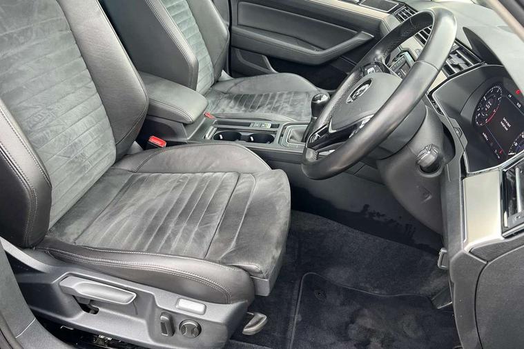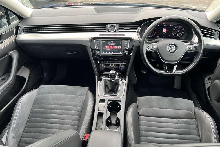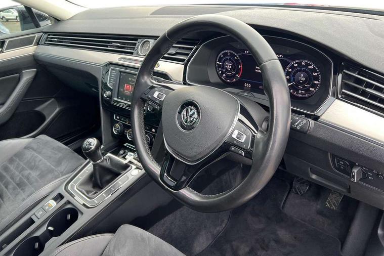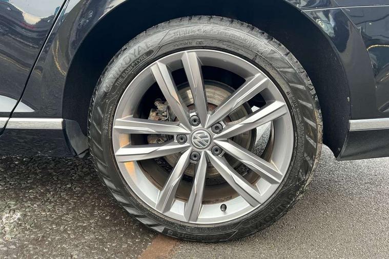 Adaptive cruise control, Analogue clock, Door/tailgate open warning lights, Driver alert system, Driver profile selection, Exterior temperature gauge with frost alarm, Information display, Low washer fluid warning light, Multifunction computer, Remote fuel flap release, Remote tailgate release, Rev counter with fuel gauge, Service interval indicator, Speed limiter, Warning buzzer and light for front seatbelts unfastened, Auxiliary socket for external device, Composition media system with Radio/CD/MP3, DAB Digital radio, MDI with USB/iPod connection cables, SD card slot, Auto dimming driver's door mirror, Auto dimming rear view mirror, Automatic activation of hazard warning lights, Automatic headlights with dusk sensor, Body colour bumpers, Body colour door handles, Body coloured door mirrors, Chrome fog light surround, Chrome louvres in grille, Chrome side sills, Chrome side window surrounds, Chrome surround for air intake, Coming/leaving home lighting function, Electric front windows, Electric panoramic sunroof with sunblind, Electric rear windows, Electrically adjustable and heated door mirrors, Front fog lights with static cornering function, Gloss black finish on B pillar, Headlight range control, Heated rear window, LED rear lights, Load sill protection, Rain sensor, Rear wiper, Remote folding door mirrors and puddle lights, Reverse activated kerb-view adjustment on passenger's door mirror, Silver roof rails, Trailer stability assist, Windscreen wipers/ intermittent wipe + 4 position delay, 12V socket in luggage compartment, 3 rear head restraints, 3 spoke multi-function leather steering wheel, 3 Zone electronic climate control with automatic air recirculation, 4 boot load lashing points, 40:20:40 split folding rear bench seat, Driver's cushion tilt adjust, Entry lights on doors, Front + rear carpet mats, Front and rear interior lighting with delay and dimming function, Front centre armrest with storage compartment, Front comfort seats, Front cupholders x2 with covers, Front door pocket bottle holders, Height adjustable head restraints, Height/reach adjust steering wheel, Leather gearknob, Load through provision, Lockable, illuminated, cooled glovebox, Luggage compartment cover, removable, Luggage compartment lighting, Rear centre armrest with cupholder and storage, Storage compartment in driver's door, Storage compartment in passenger's door, Storage compartment in rear doors, Storage compartment in roof console, Storage pockets in backrests of front seats, Sunvisors with illuminated vanity mirrors, Variable boot floor, Ambient lighting pack - Passat, Winter pack - Passat - heated front seats, 3 rear 3 point seatbelts, ABS, brake assist and EBD, Automatic post collision braking, Curtain airbags, Door open warning reflectors, Driver/Front Passenger airbags, Driver/Front passenger WOKS head restraints, Drivers knee airbag, Electronic parking brake with auto hold, ESP with EDL + ASR, First aid kit, Front assist including city emergency braking, Front side airbags, Height adjustable front 3 point seatbelts + pretensioners, Hill hold function, Manual passenger airbag deactivation function, Pre crash system, Rear seatbelt warning indicator, Rear side airbags, Warning triangle, Alarm with interior protection, Electronic engine immobiliser, Keyless Start, Remote central locking with 2 remote folding keys, Chrome air vent and instrument surround, White instrument dials,