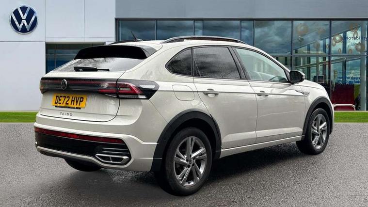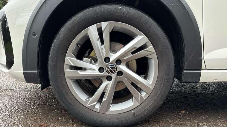 Adaptive cruise control, App-Connect including App-Connect Wireless, Digital cockpit pro - 10.25" high resolution TFT dash display screen with customizable menus and information, Driver alert system, Driving profile selection, e-Call (emergency call), Power Steering, Travel assist including emergency assist, Washer fluid level indicator, Wireless Charging including Bluetooth, Start-stop system with battery regeneration (recuperation - energy recovery during braking), XDS electronic differential lock for improved traction and handling, Digital radio reception (DAB+), Diversity antenna for FM reception, WeConnect plus, Ambient lighting with logo projection, Aspherical driver's exterior mirror, Auto headlights, Body coloured bumpers, Body coloured exterior mirror housings and door handles, Bumpers in R-Line style, Electric windows, External USB type C socket and charging sockets, Front fog lamps with cornering function, Front scuff plates with R-Line logo, Headlight range control, LED headlamps, LED rear combination lamp, LED third brake light, Left convex exterior mirror, Power folding adjustable/heated exterior mirrors and front passenger exterior mirror lowering function, Rear fog light on one side, reversing light on both sides, Rear side wing doors, Rear wash/wipe with intermittent wipe setting, 12V socket in centre console, 2 front reading lights, 3 rear head restraints, 3 seat bench in 2nd row, Air care climatronic air conditoning system with active combination filter and 2-zone temperature control, Black carpets, Black roof lining, Child seat anchor for child seat system i-Size, 2x top tether and child seat anchor in front on front passenger side, Chrome bezel for instrument cluster, vents, door handles + gear shift, Driver and front passenger seat height adjustment, Front + rear carpet mats, Front centre armrest, Front footwell illumination, Front sports comfort seats, Height and reach adjustable steering wheel, Interior ambient lighting and surround lighting, Karoso artvelours cloth upholstery, Leather trimmed gear knob, Leather wrapped multifunction steering wheel, Luggage compartment floor, Luggage compartment light, Lumbar support for driver's and front passengers seat, Seat covers in grey + titanium black, Single front passenger seat, Split folding backrest with centre armrest and unsplit rear seat bench, Stainless steel pedals, Storage compartment under front seats, Sun visors with illuminated vanity mirrors, Chrome Package - Taigo, Drivers assistance pack - Taigo, Light and Sight pack including High beam assist - Taigo, 2 x 3-point seatbelts/outer rear seats with ECE label, 3-point seat belts in front with pretensioner and height adjustment, 3-point seatbelt for centre rear seat, Driver and front passenger airbags with front passenger airbag de-activation, front side and curtain airbags, Driver and front passenger safety-optimised head restraints, Electronic stability control, Extended and predictive pedestrian/ cyclist protection, Front and rear disc brakes, Front curtain and side airbags with center airbag, Hill start assist, Manual rear child locks, Single tone horn, Tyre pressure loss indicator, Anti-theft alarm system with interior monitoring, backup horn, and towing protection, Anti-theft wheel bolts, Grey anodised matte decorative inserts in dash and front door panels, Low rolling resistance tyres,