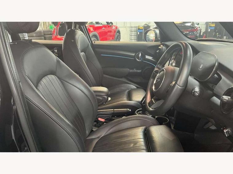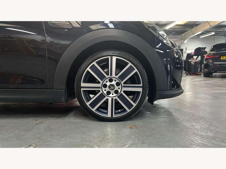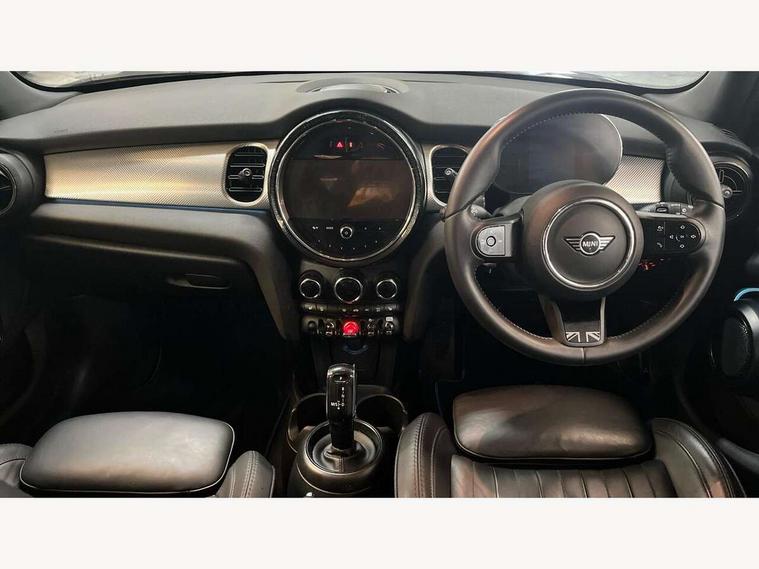 Apple CarPlay, Automatic start/stop function with brake energy recuperation, Compatible mobile phone bluetooth with audio streaming, Electro-mechanical speed dependant steering assistance, Flexible car sharing preparation, MINI Driving Modes - centre toggle switch to control driving setting (sport, mid and green), Mini E-call, MINI TeleServices, On board computer, Rear park distance control, Service interval indicator, Double Vanos system, Fully variable valve control, Gear change indicator display, High precision injection, Performance Control, Steptronic transmission with double clutch, 8.8" touchscreen with LED ring, FM tuner and DAB digital radio, 3rd brake light, Automatic headlight activation switch, Body colour fuel filler cap, Chrome line exterior - radiator grille bars, tailgate handle, lower front grille grating and rear central fog-light, Dynamic brake lights, Electric front+rear windows, Heated rear window, Heated windscreen washer jets, Metal door sill strips with MINI imprint, Model logo Cooper on right of tailgate, Rain sensor window wipers, Rear fog lights, Rear LED lights with union jack design, Rear side wing doors, Rear window wiper, Side scuttle panel with integrated indicator, Sun/heat protection glass, White indicator lenses, 12V Accessory socket in centre console, 3 seat bench in 2nd row, 4 lashing eyes in luggage compartment, 60/40 split folding rear seat, Anthracite headliner including grab handles and clothes hooks, Carbon black colour line - Knee roll and door armrest, Chrome interior highlights, Chrome line interior - air vents, gear lever base, door handles and speakers in doors, Cupholders, Front and rear head restraints, Front and rear isofix with front passenger airbag deactivation, Front and rear velour floor mats, Glove compartment, Height and length steering column adjustment, Interior lighting with 12 different colours across the dashboard, underneath door bezel with illuminated laser-engraved design on central display, Leatherette gearshift lever and handbrake gaiters, LED reading lights, vanity mirror lights, front foot well light and spotlight on front seats, Mechanical seat adjustment - forward/back & backrest for front seats and driver seat height adjust, MINI yours badge on exterior pillar, Multifunction steering wheel, Single front passenger seat, Storage compartments in doors, Sunvisors with vanity mirrors, Walknappa leather steering wheel with grey seam and MINI Yours badge on Piano Black lower steering wheel spoke, 3 point seatbelts on all five seats, 6 Airbags - front, side, head and seat belt tensioners, Anti-lock braking system (ABS), Child locks on rear doors, DSC - Dynamic Stability Control, Front and rear disc brakes, Hill start assist, Single tone fanfare horn, Tyre pressure monitoring system, Alarm system with tilt sensor, monitoring doors, bonnet interior and tailgate, Electronic vehicle immobiliser, Start/stop toggle with keyless go, Tool kit,